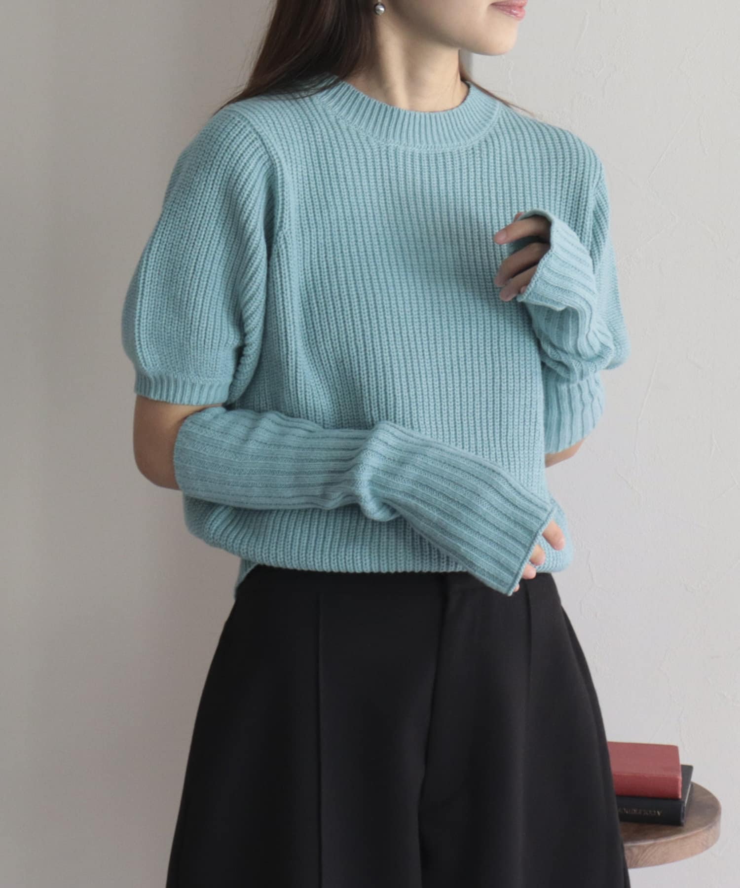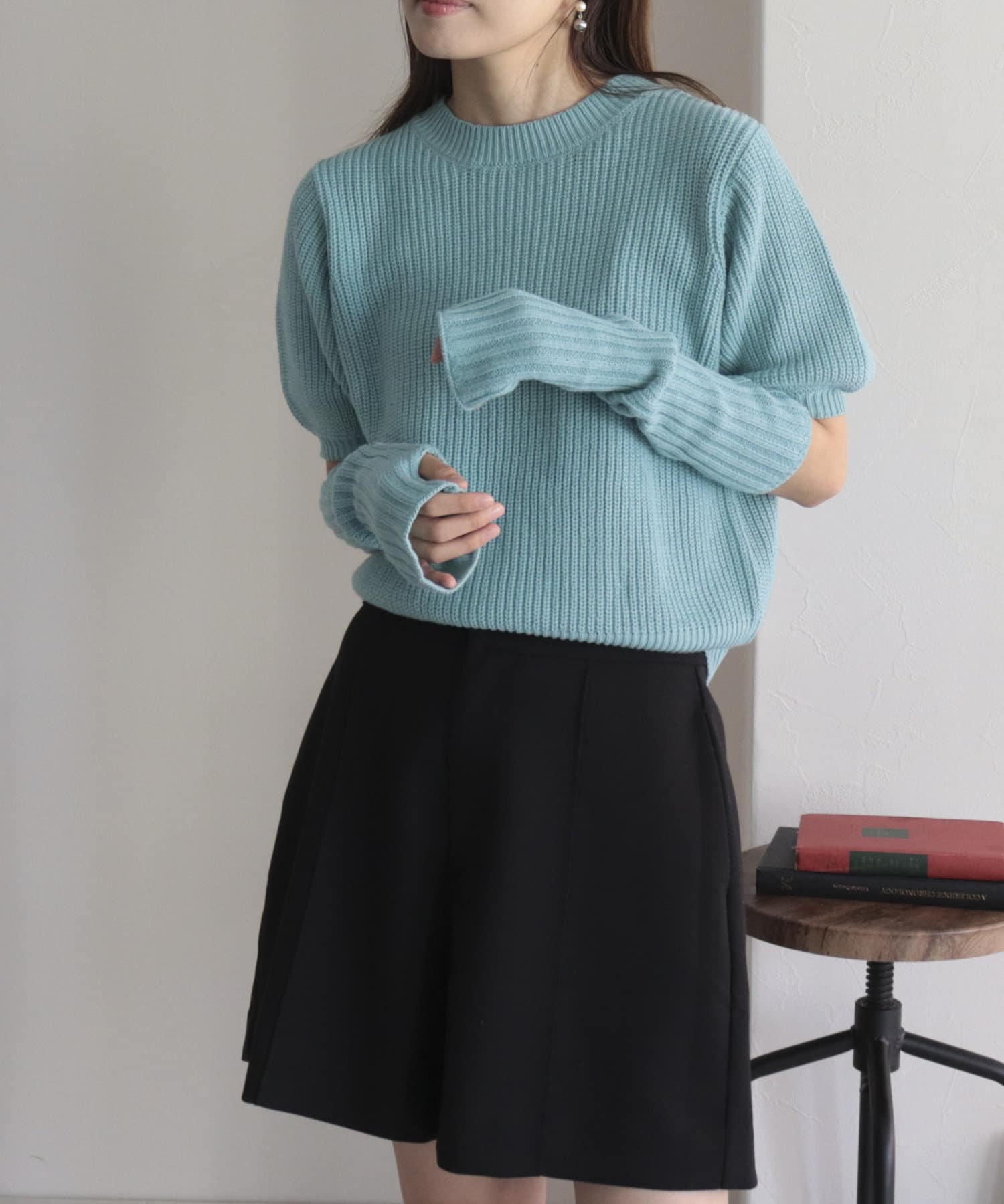 ・ニットは程よいパフスリーブで可愛いらしい雰囲気に