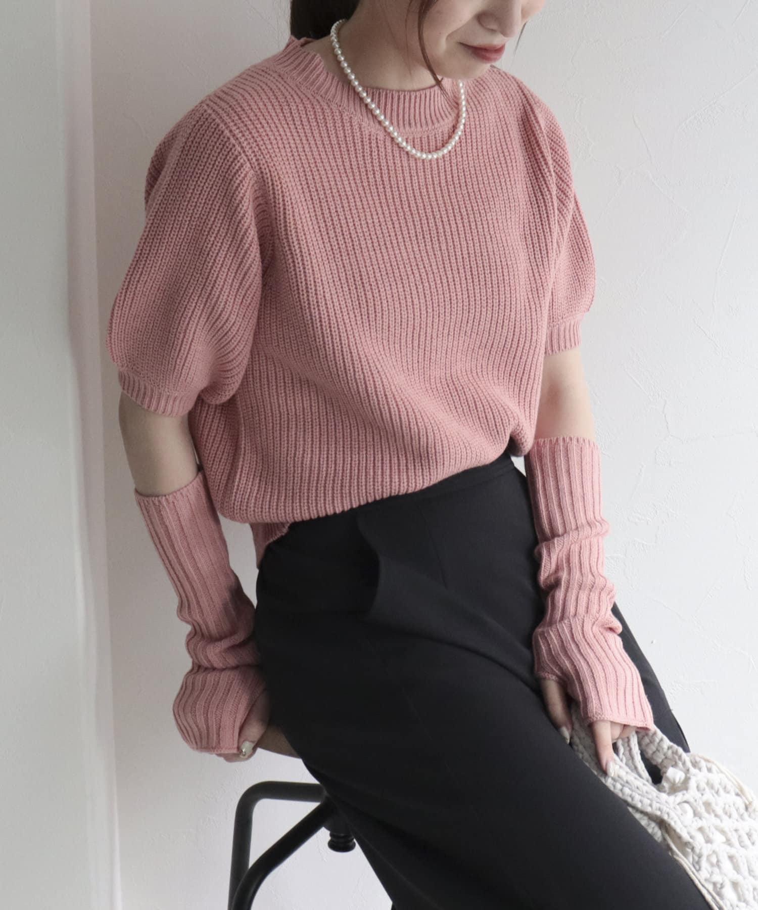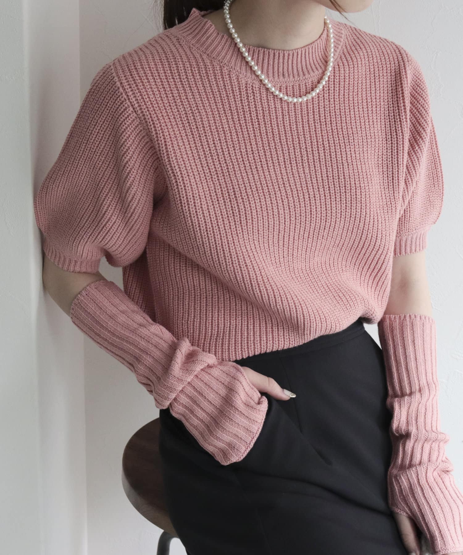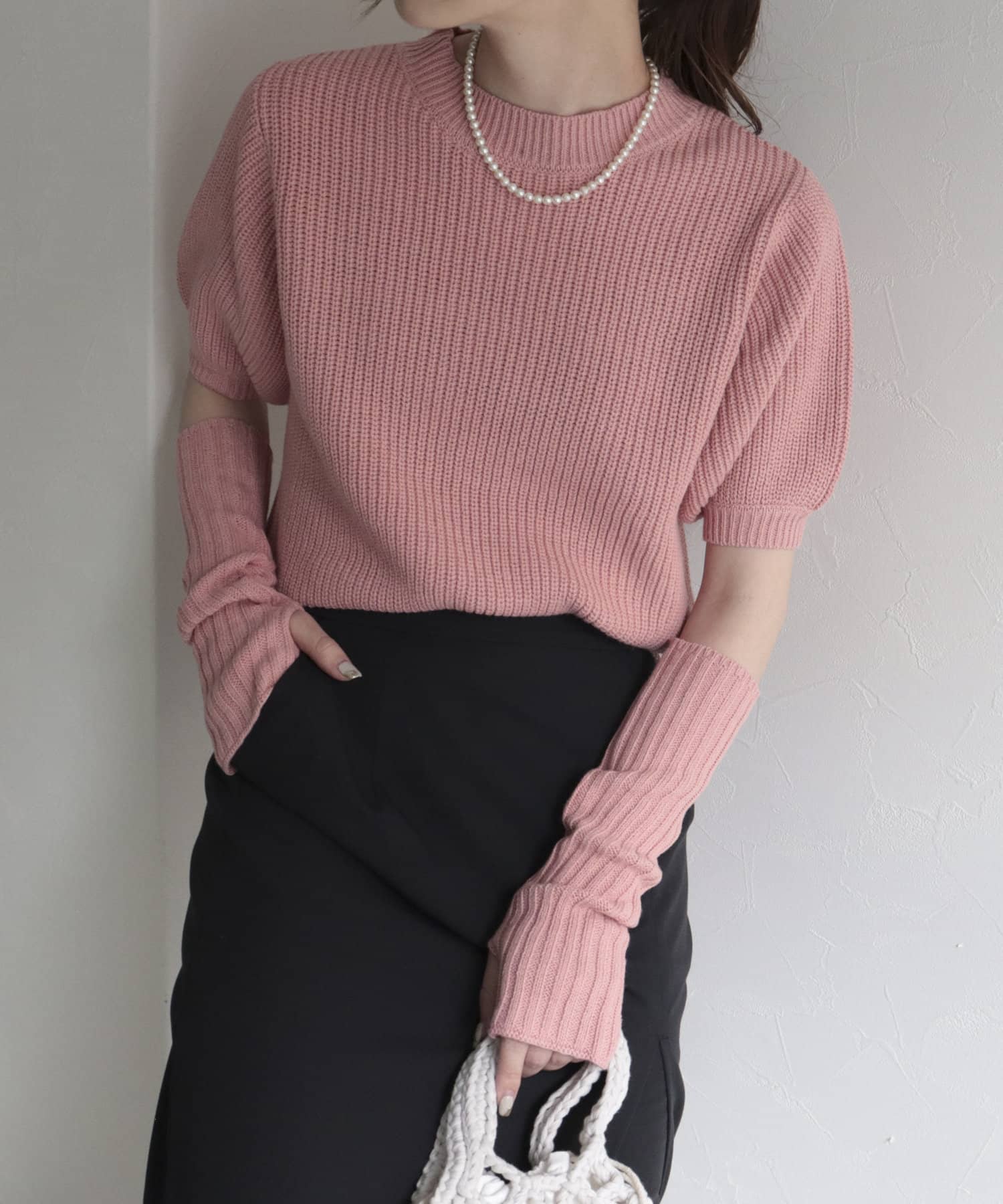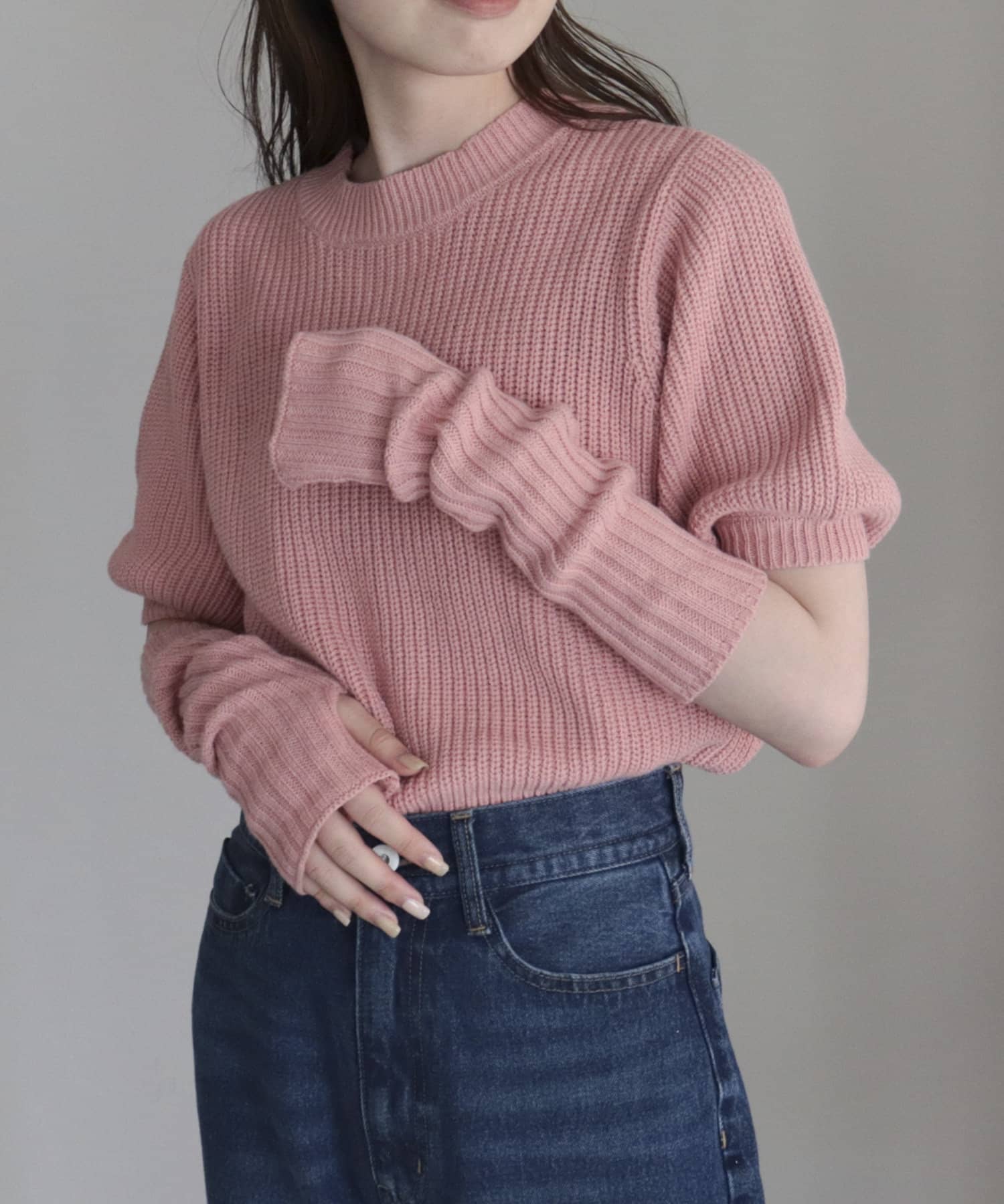 トレンド感をプラスしてくれるアームウォーマー付きニットトップス