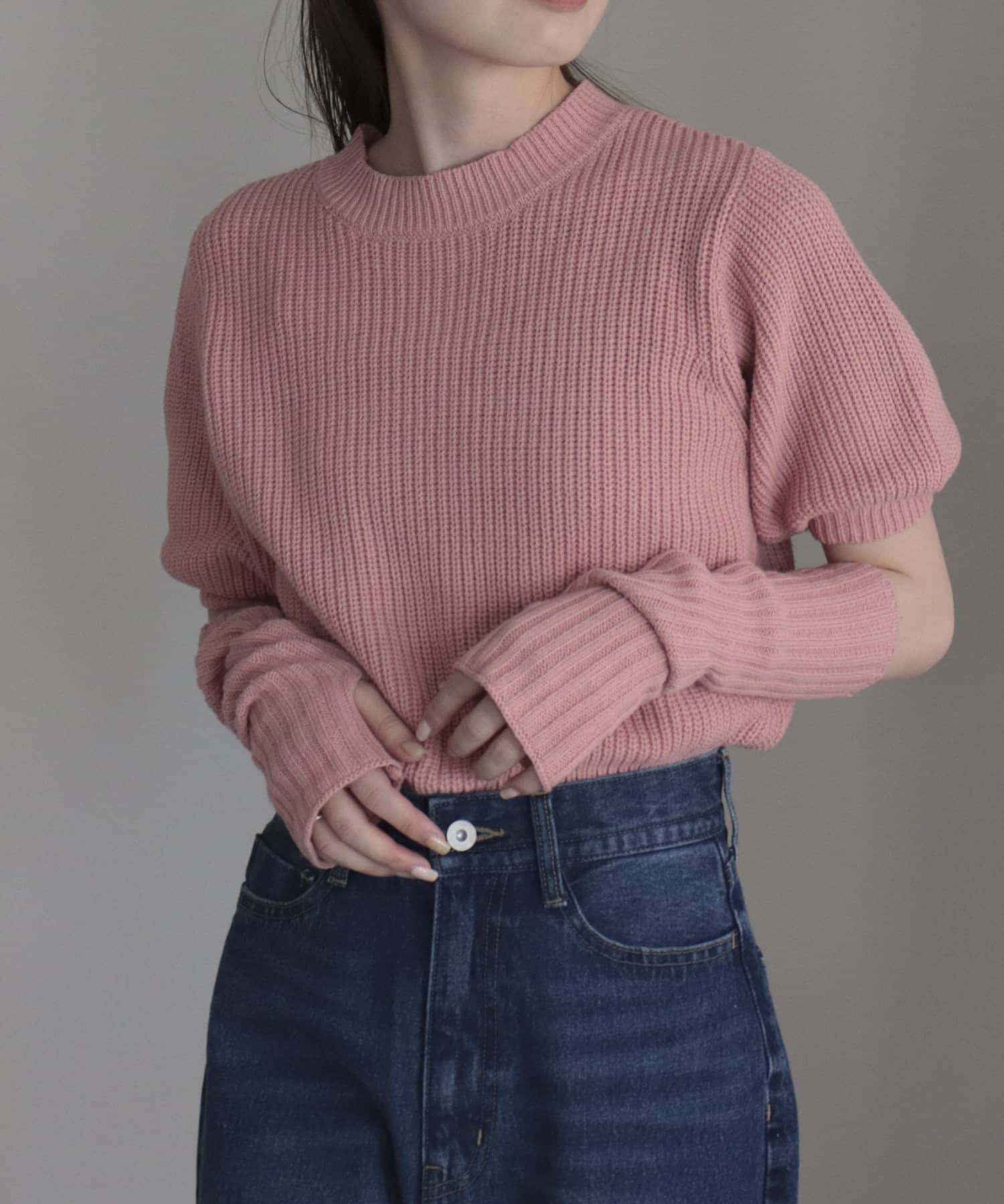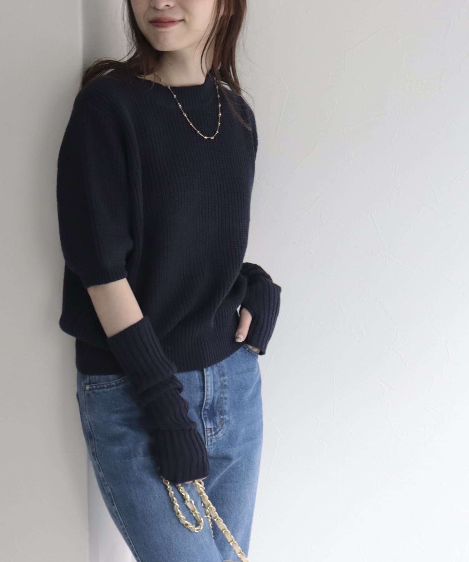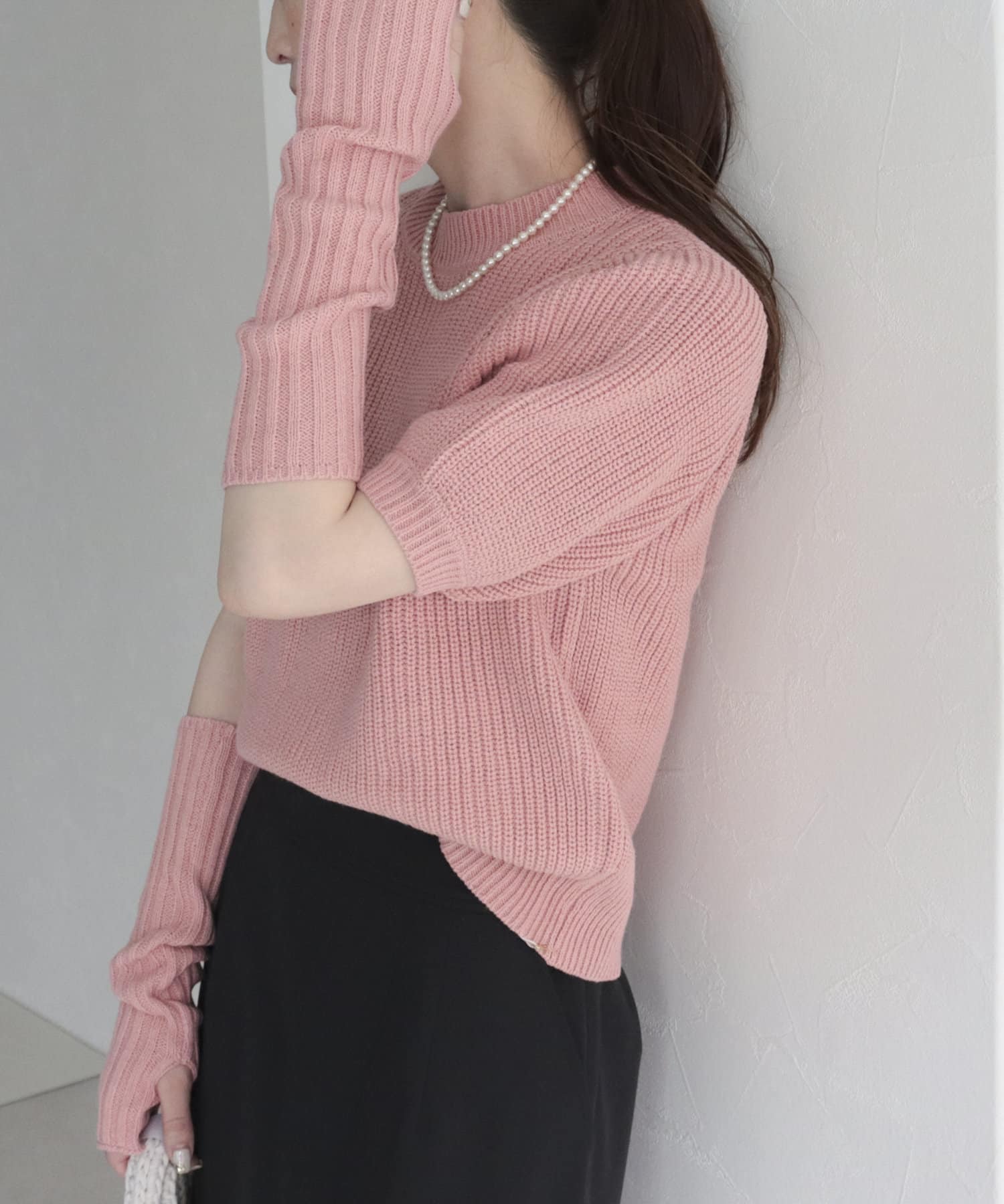トレンド感をプラスしてくれるアームウォーマー付きニットトップス
