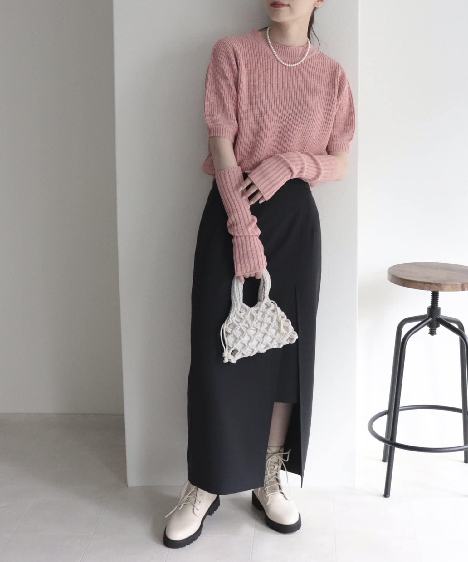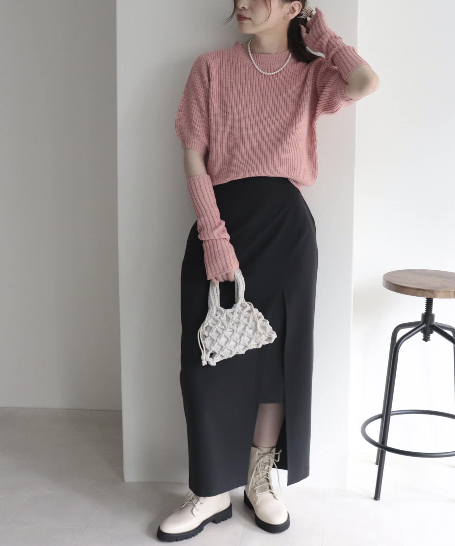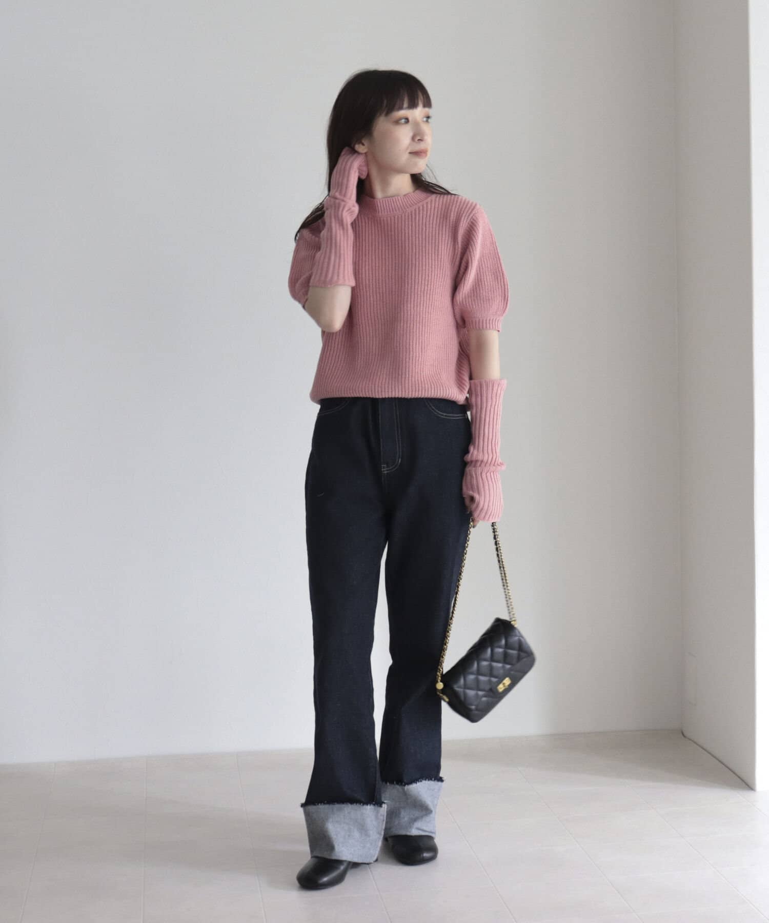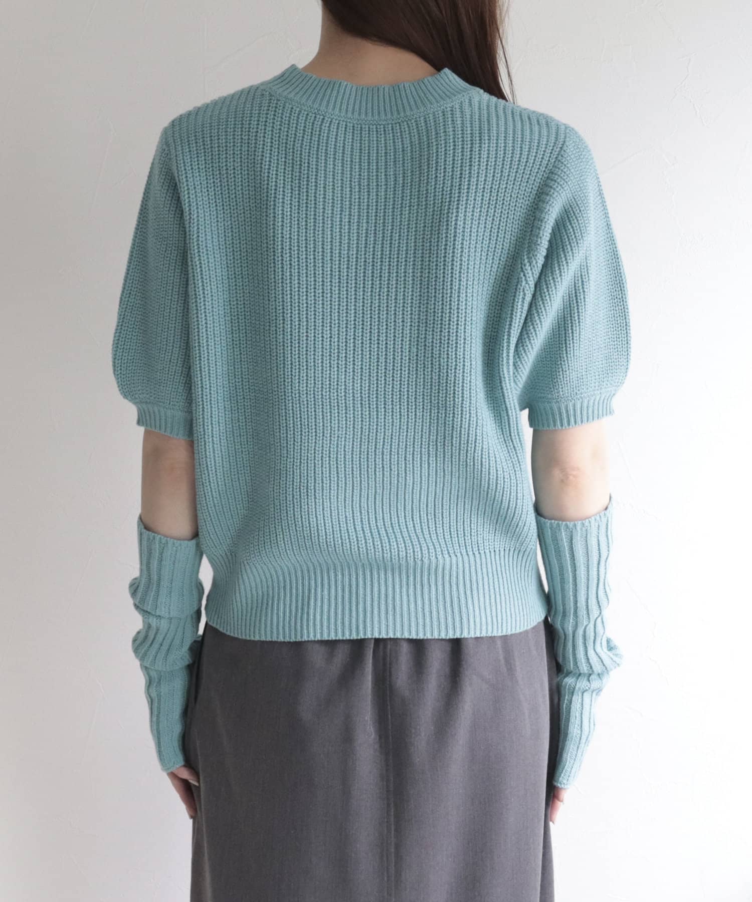 トレンド感をプラスしてくれるアームウォーマー付きニットトップス