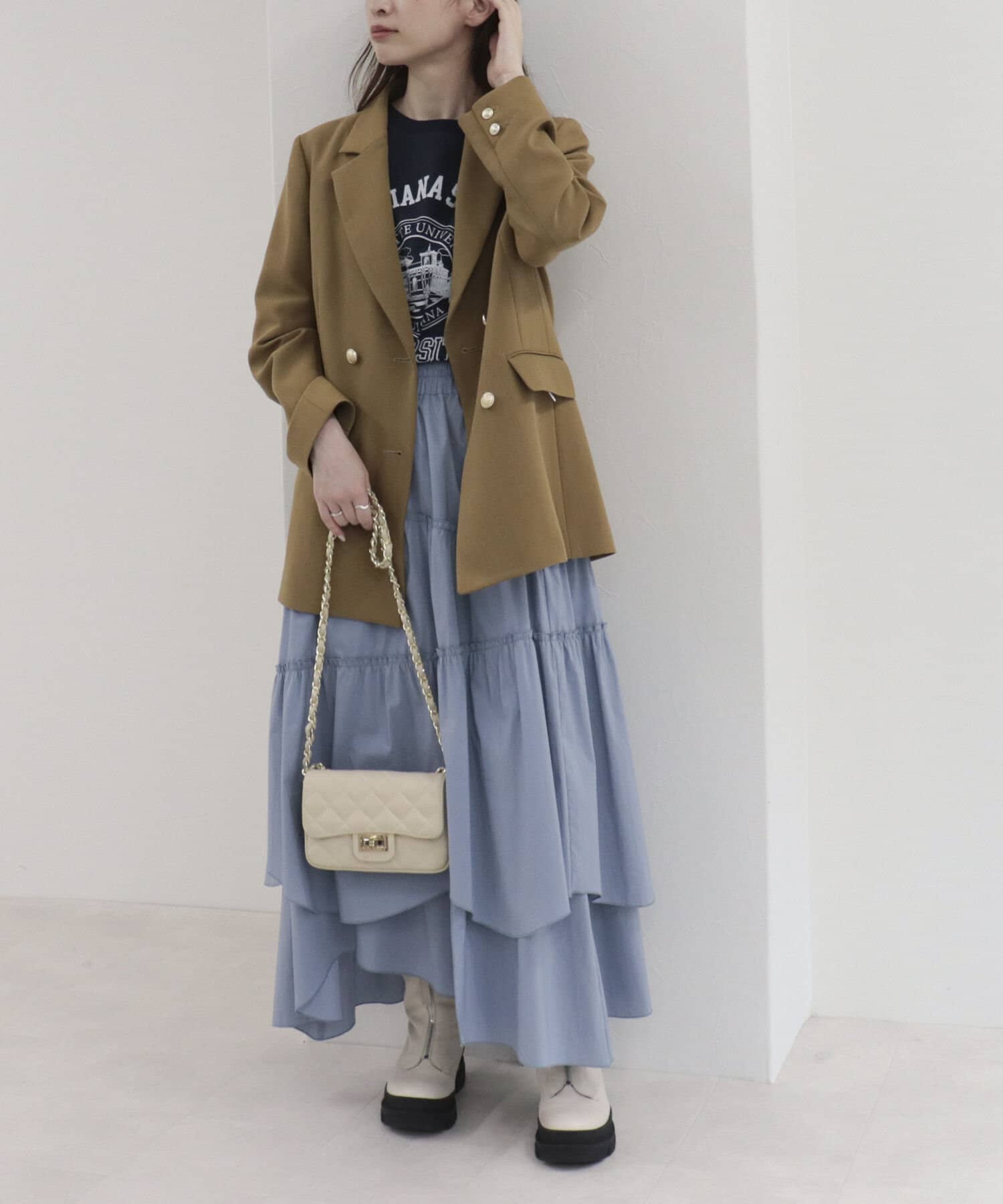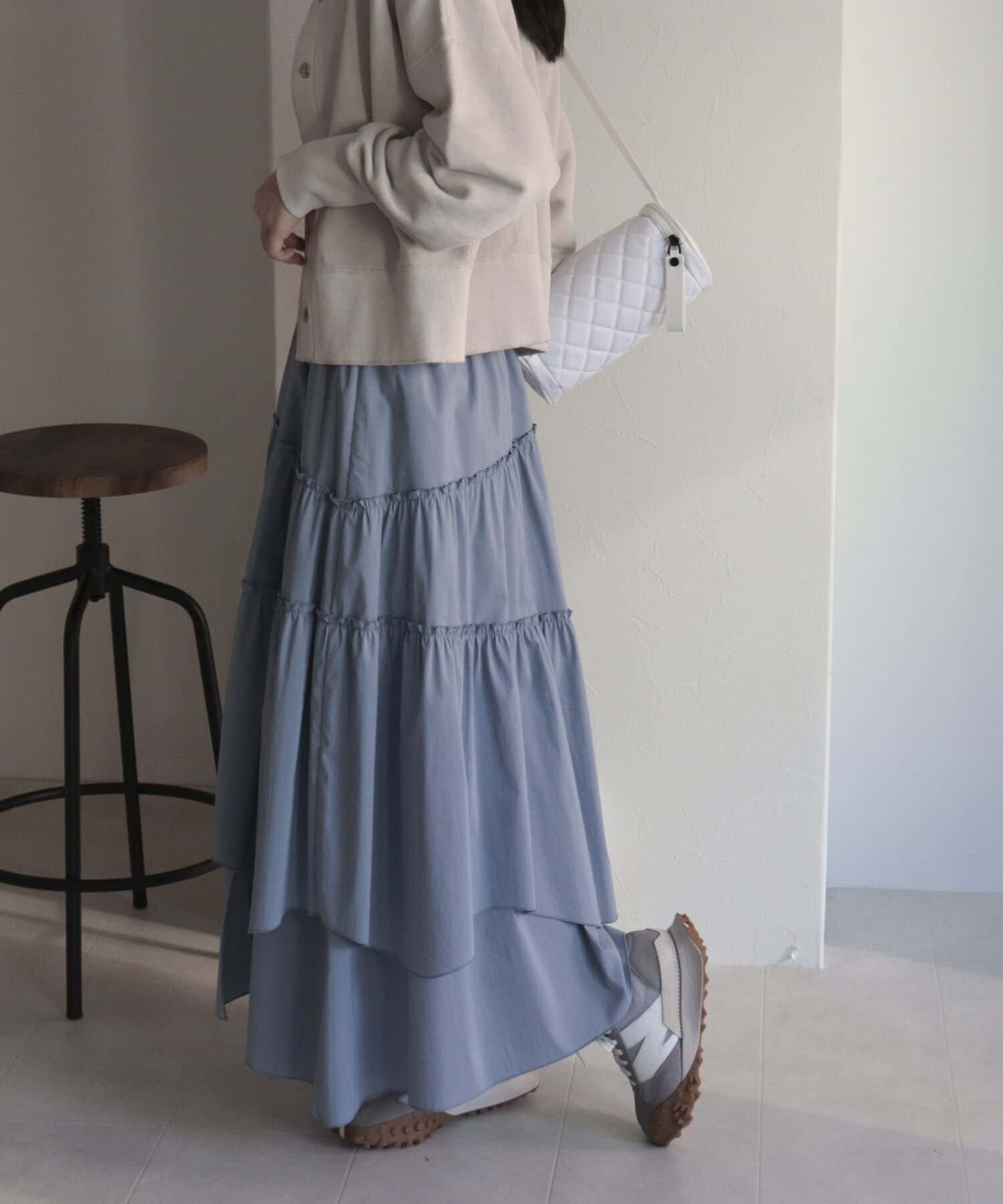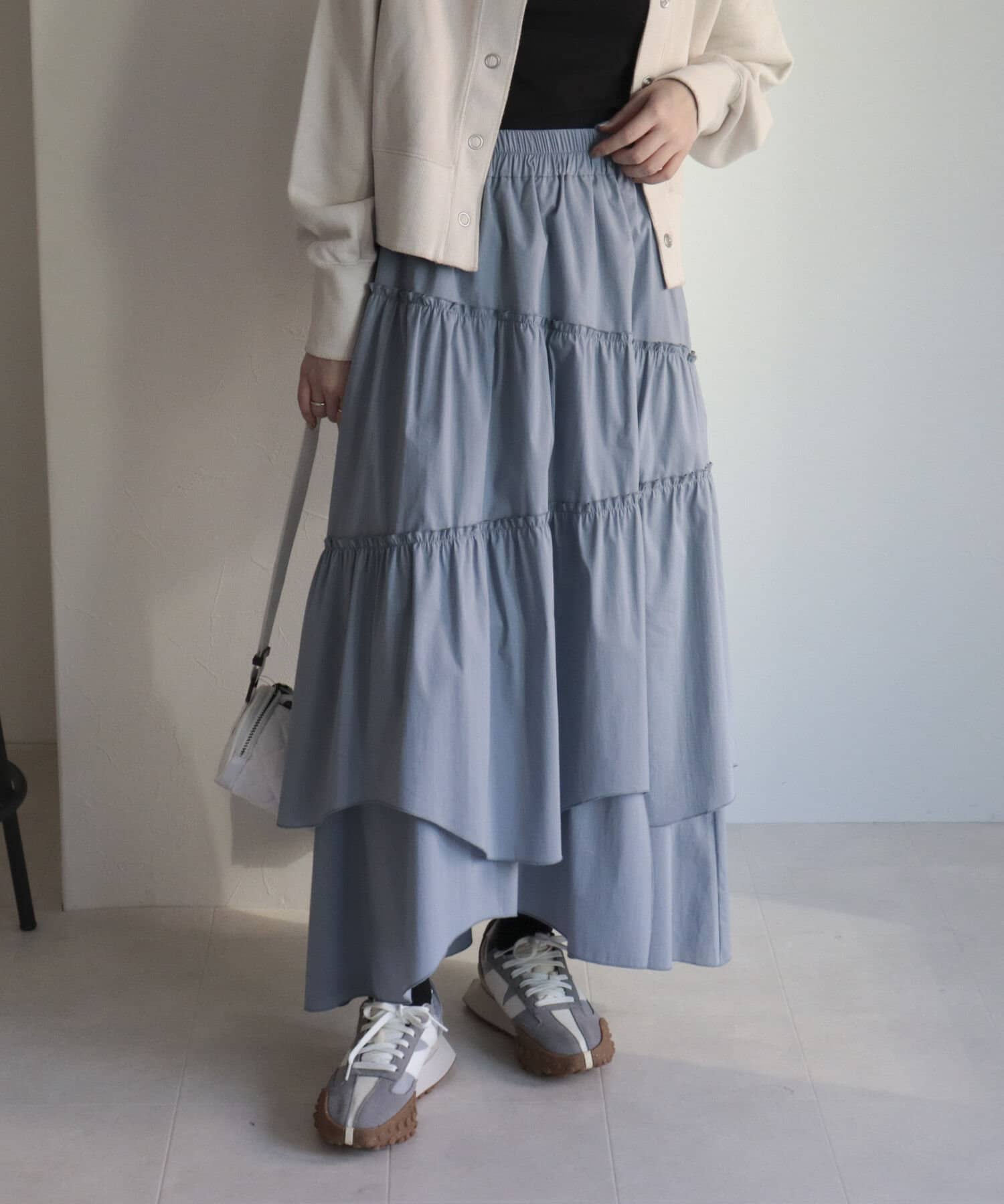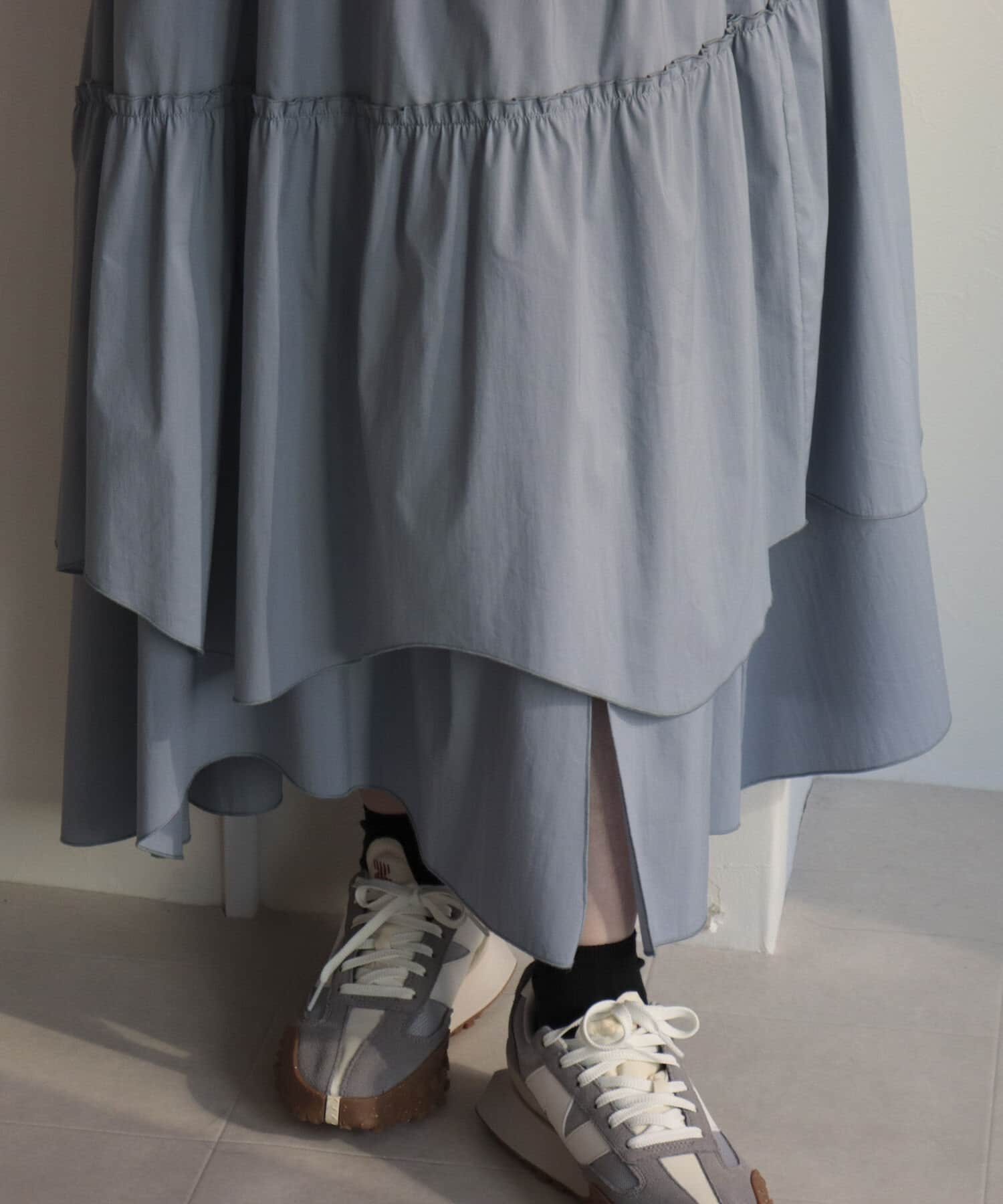 ・ティアードの切り替えと甘すぎないフリルデザインが女性らしいシルエットに