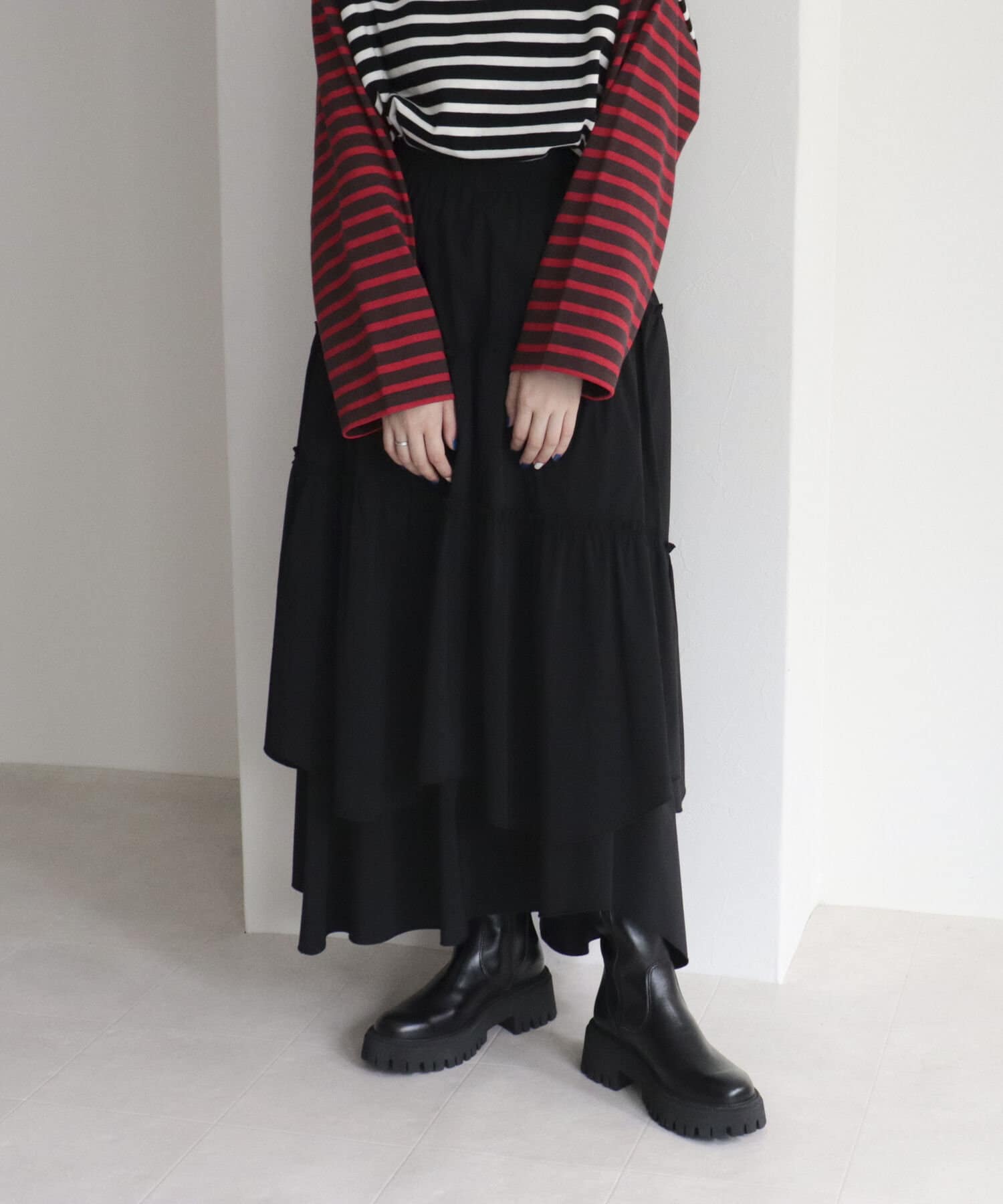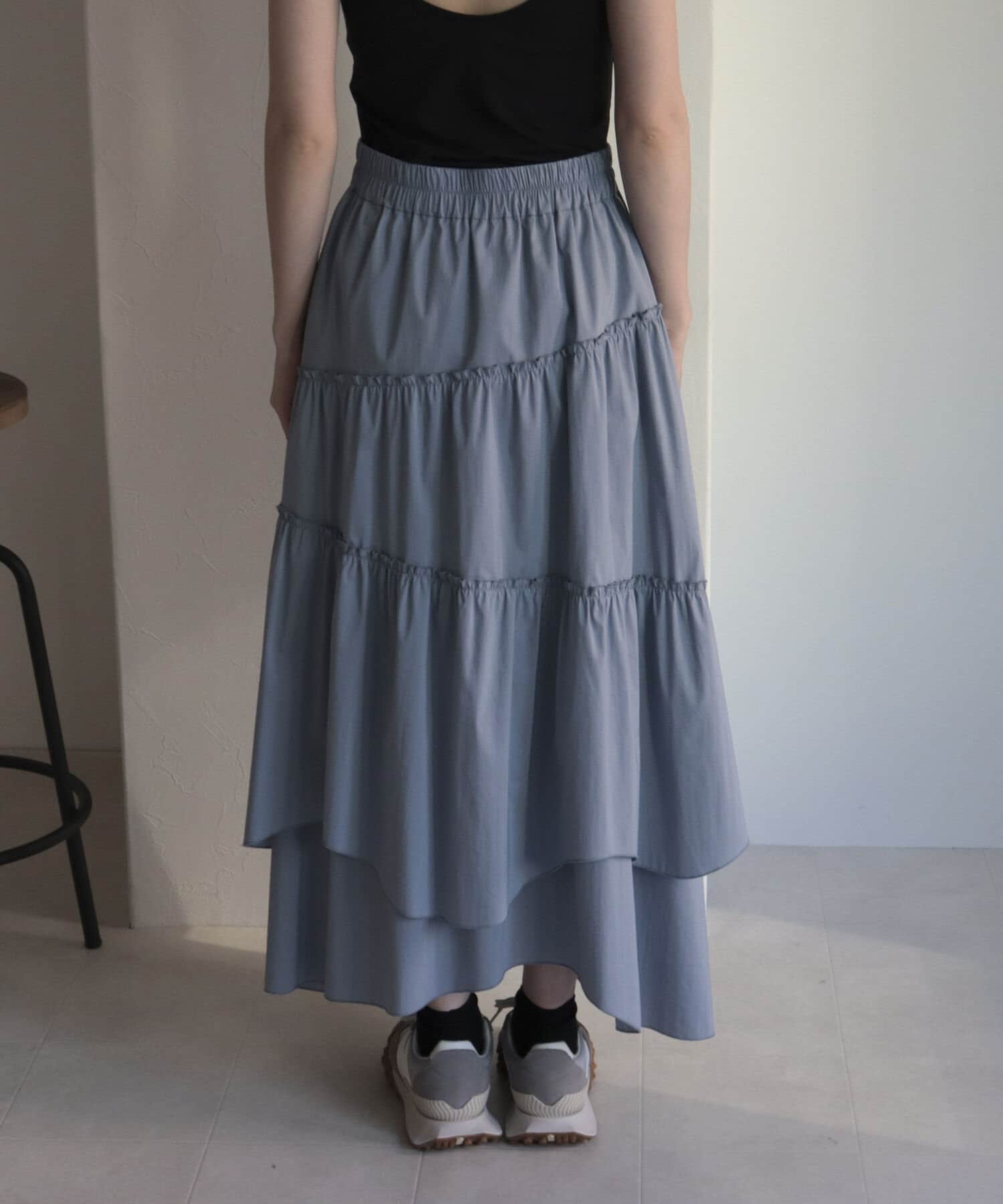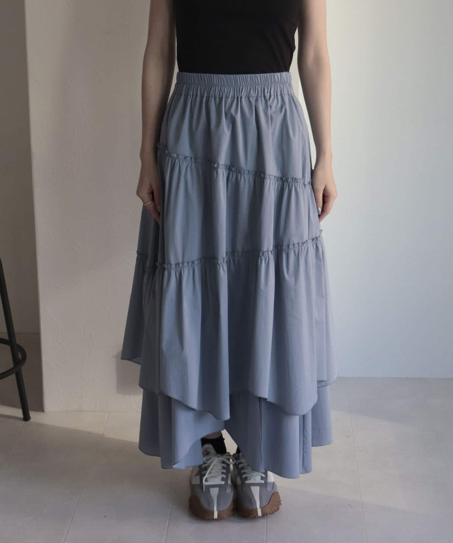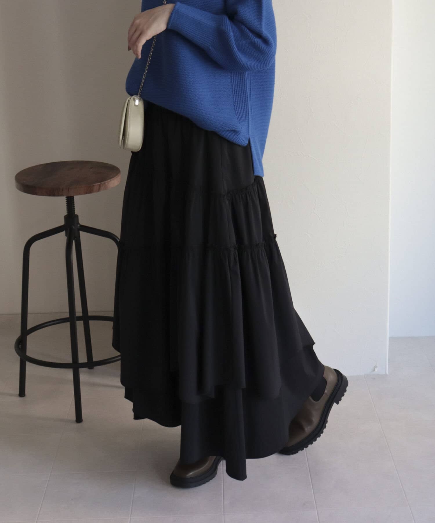 ・ティアードの切り替えと甘すぎないフリルデザインが女性らしいシルエットに
