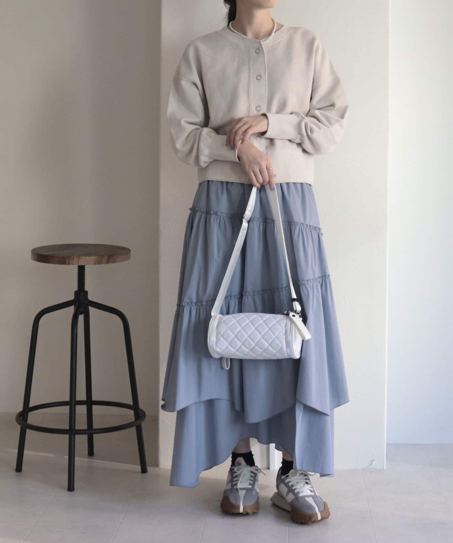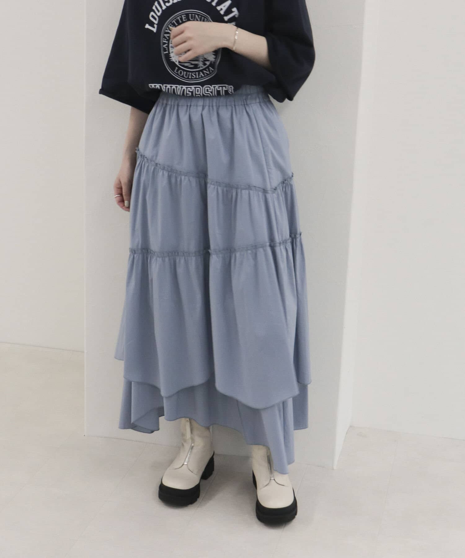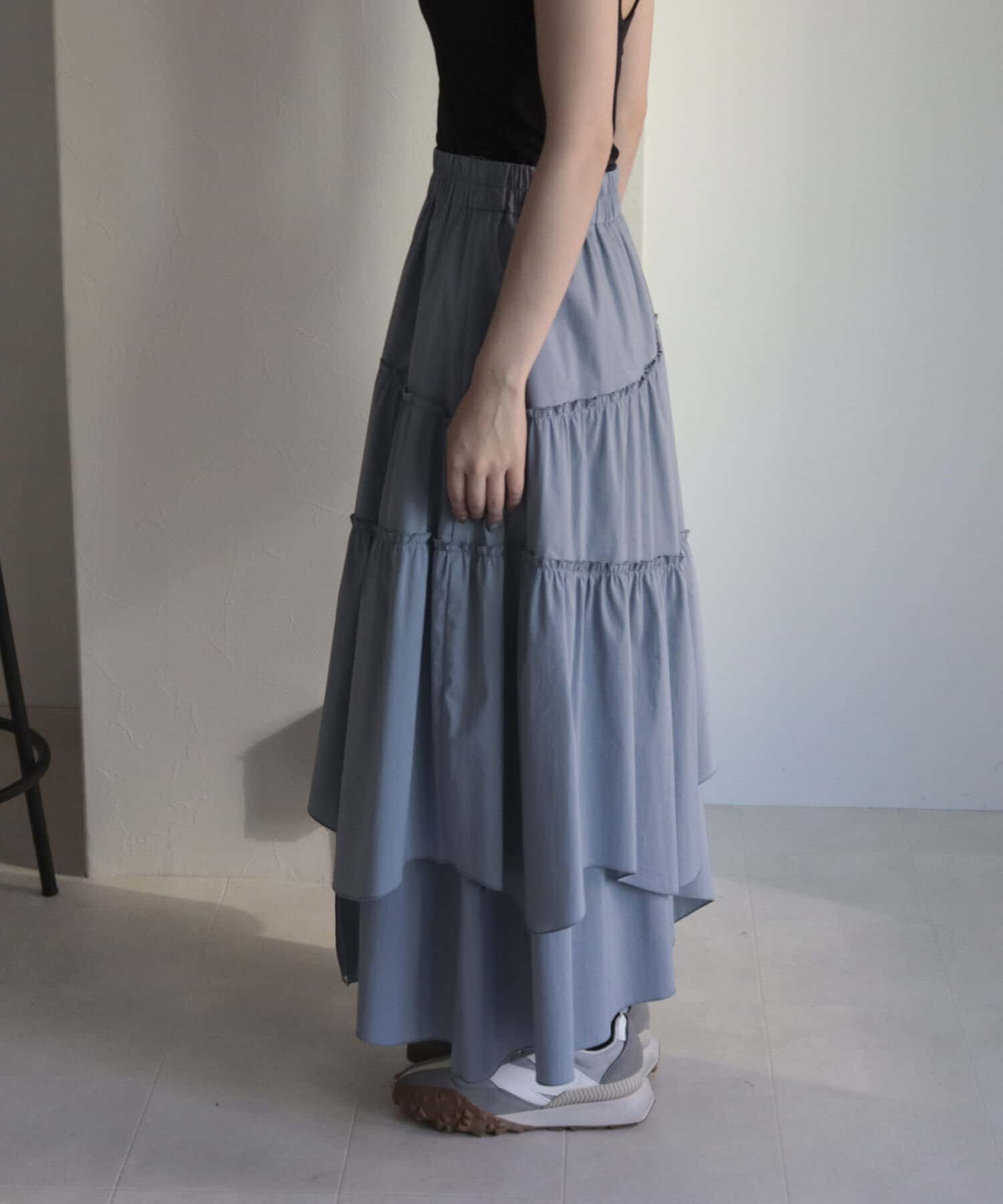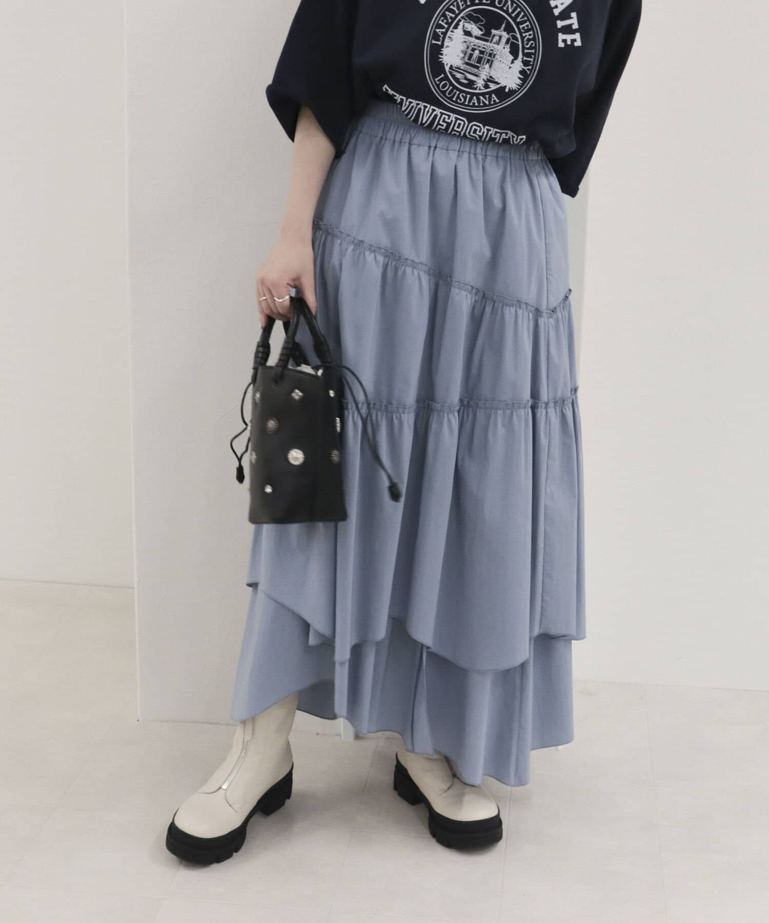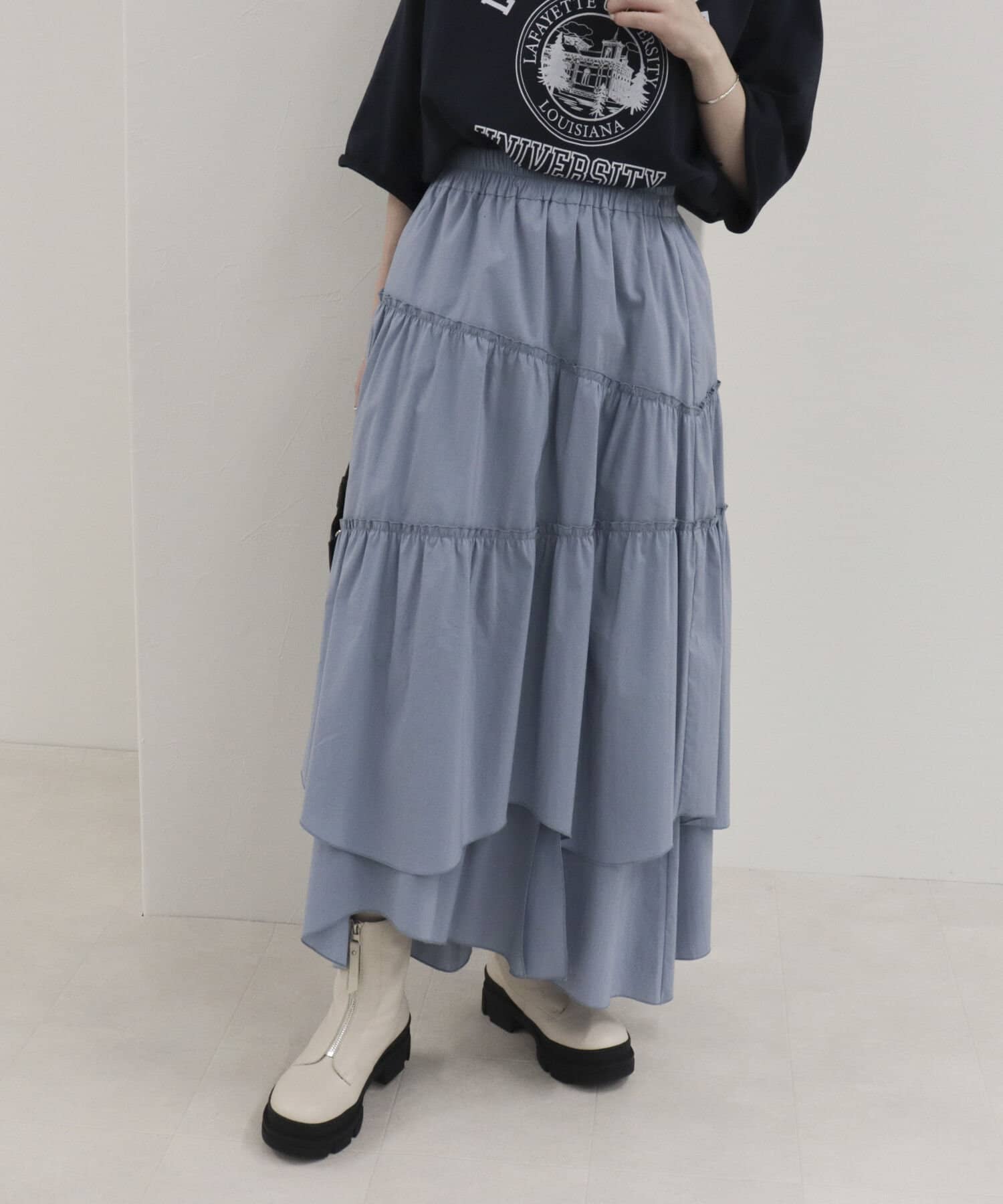 ・ティアードの切り替えと甘すぎないフリルデザインが女性らしいシルエットに