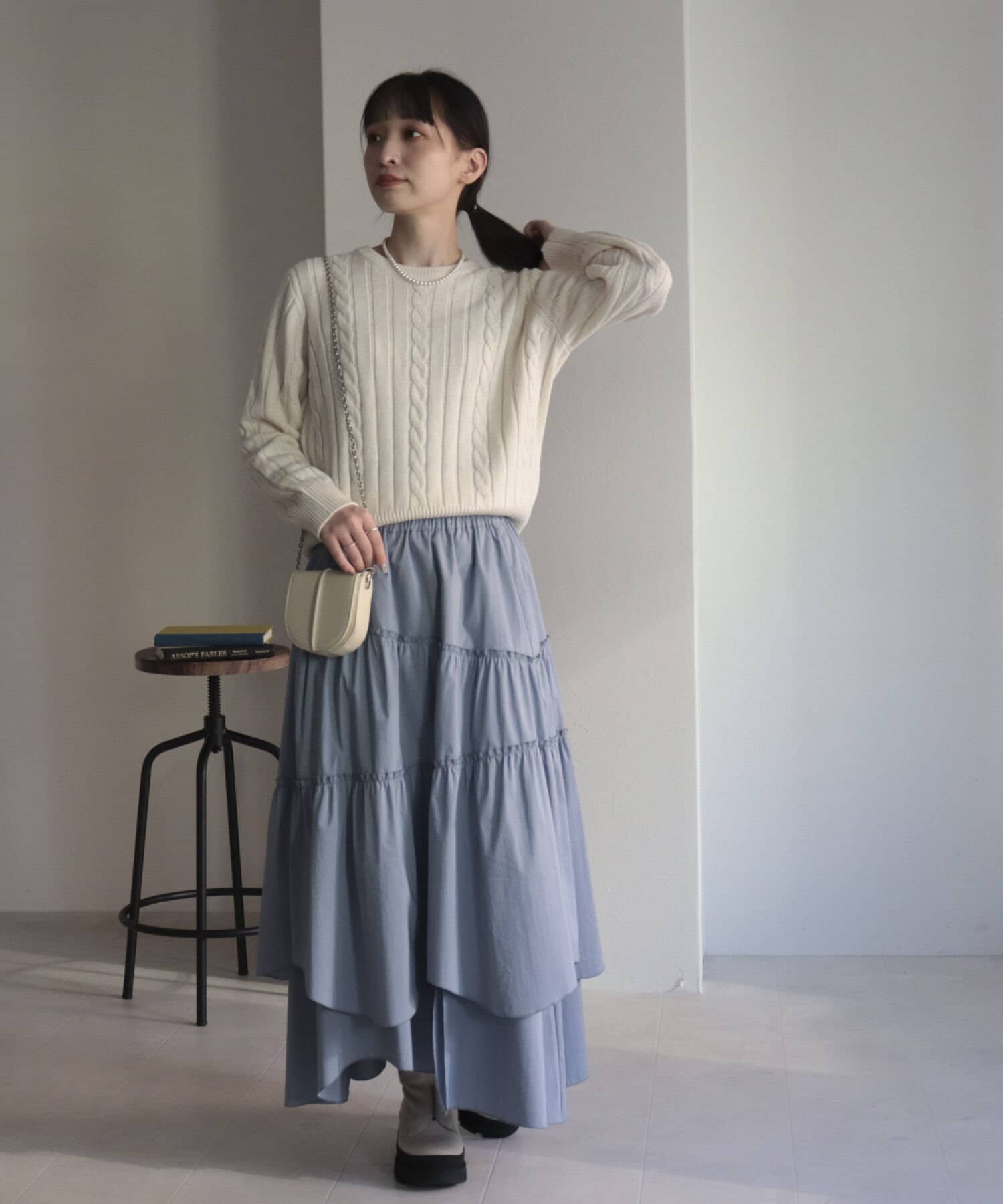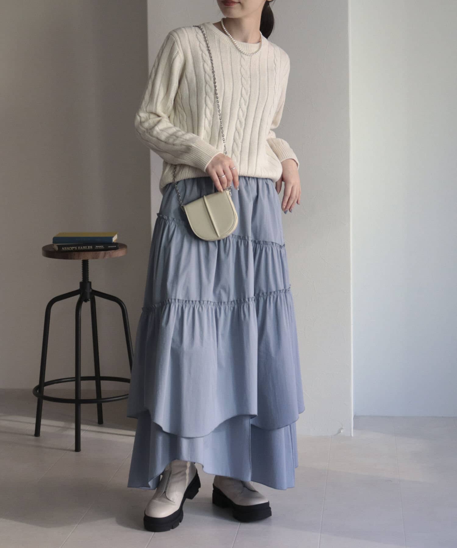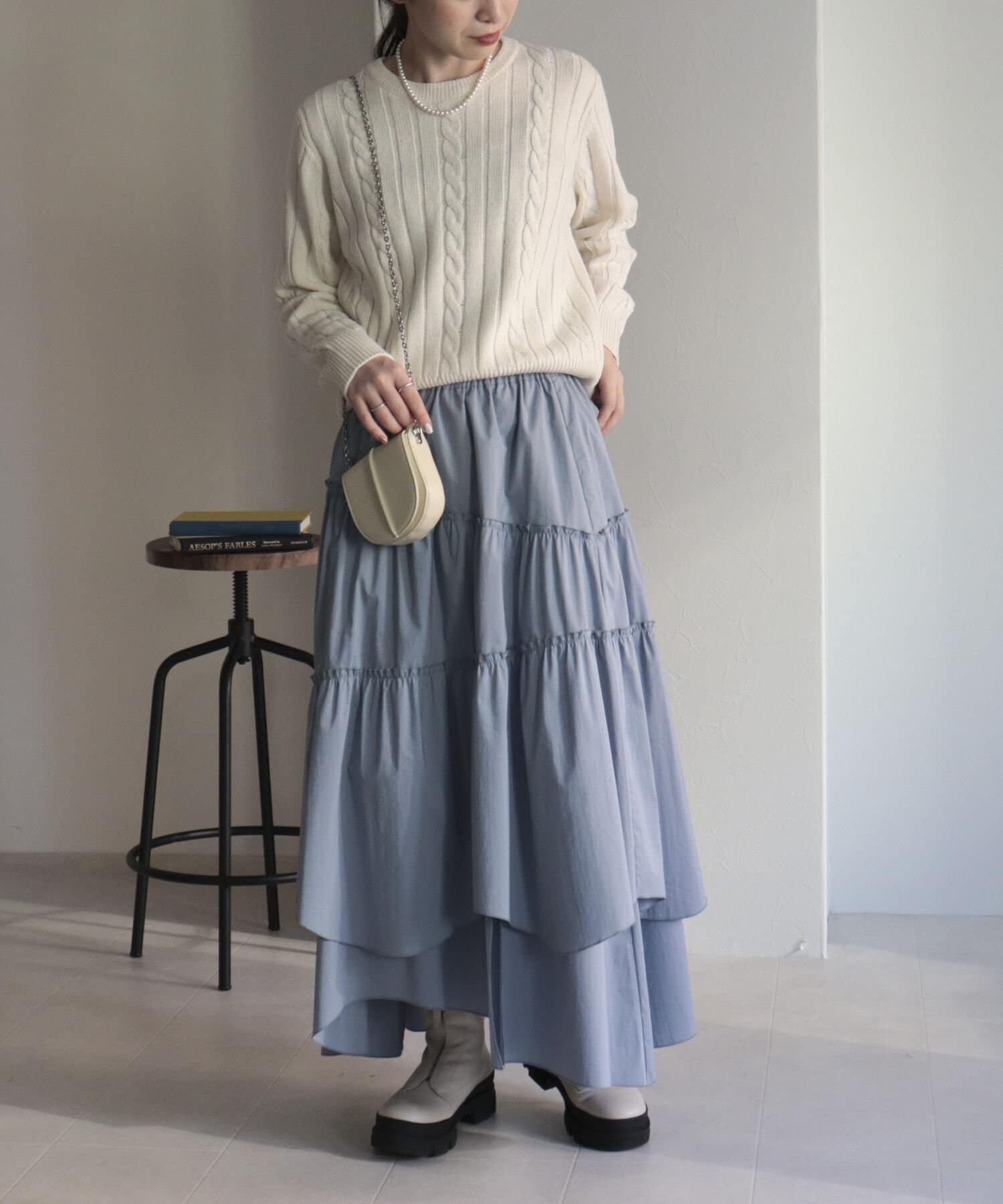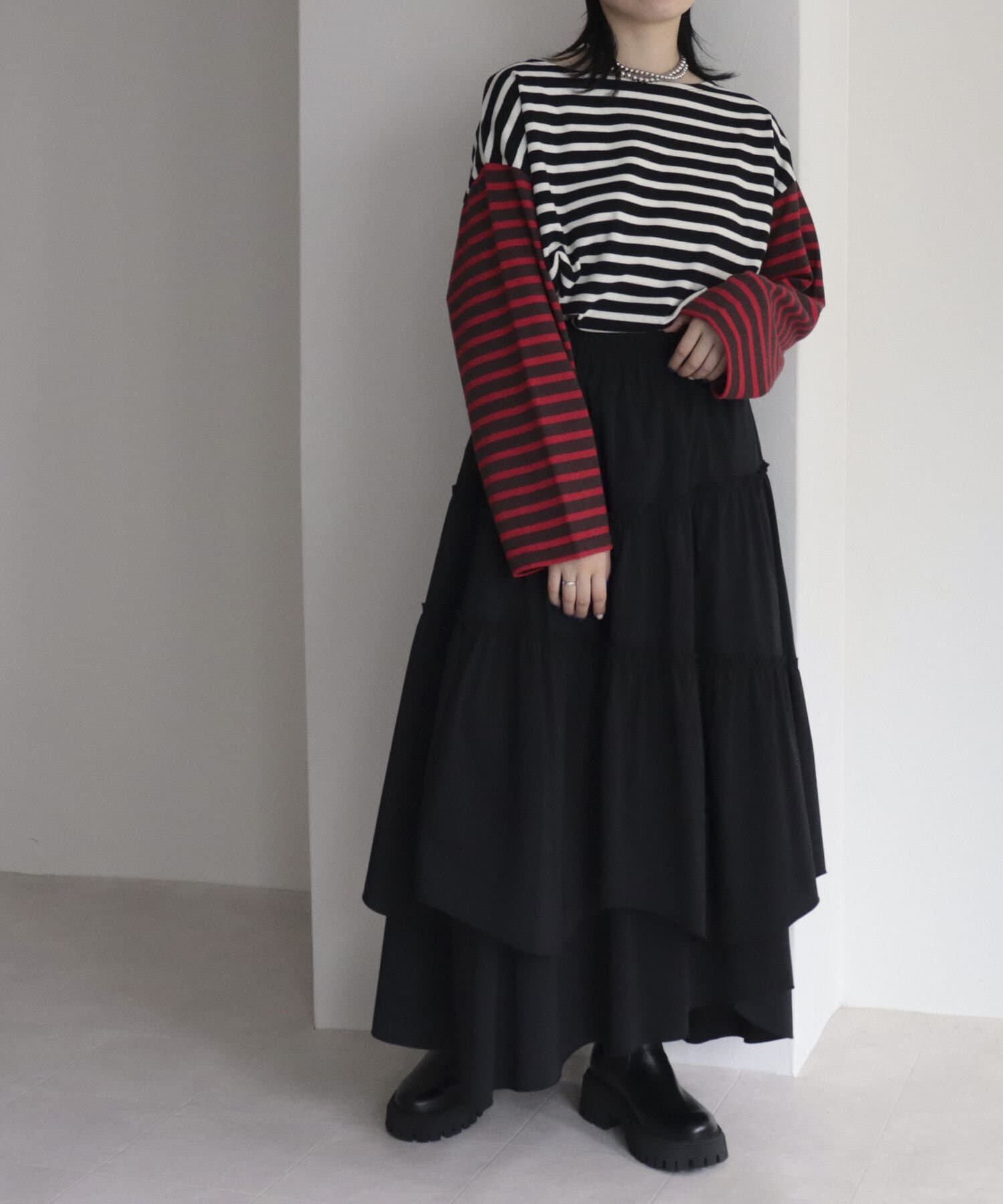 ・ティアードの切り替えと甘すぎないフリルデザインが女性らしいシルエットに