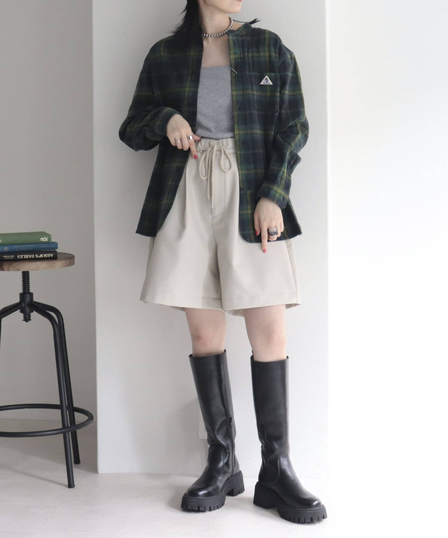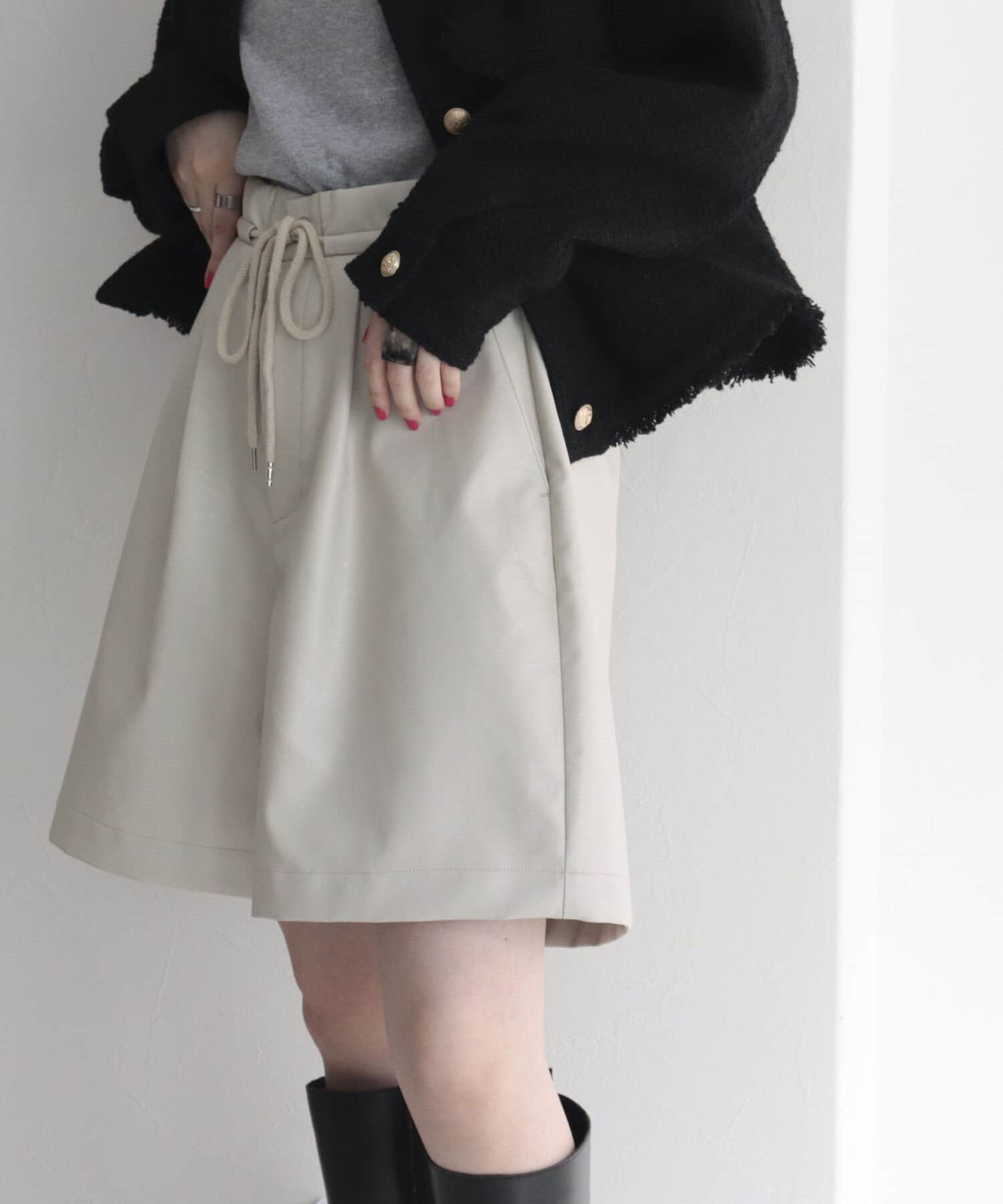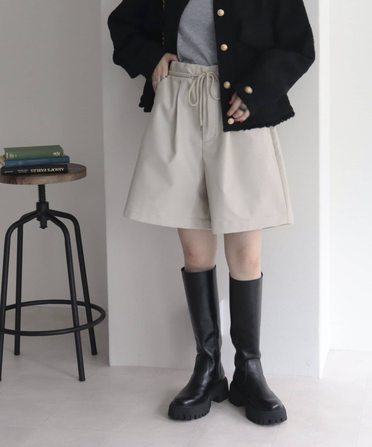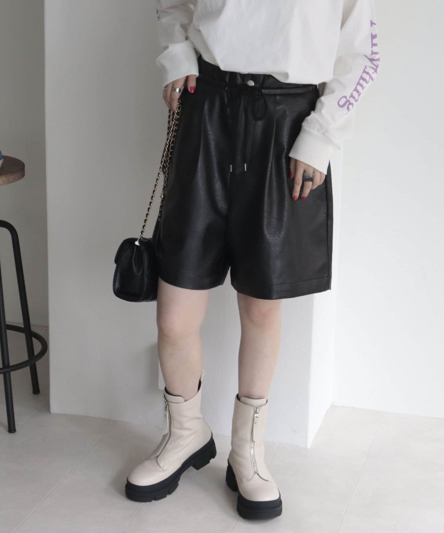 秋冬に欠かせないレザー調アイテムをショーパンで取り入れる