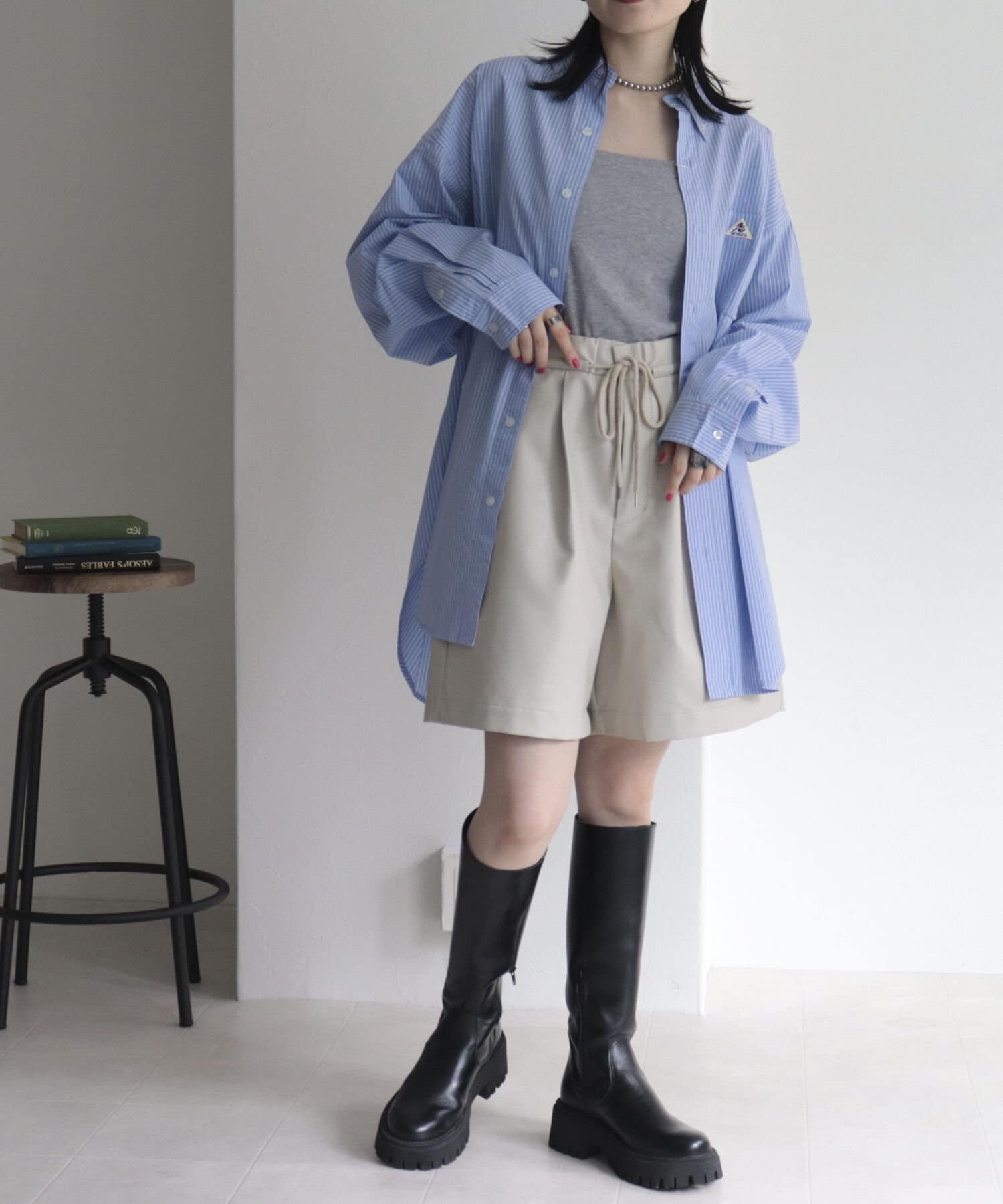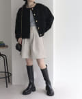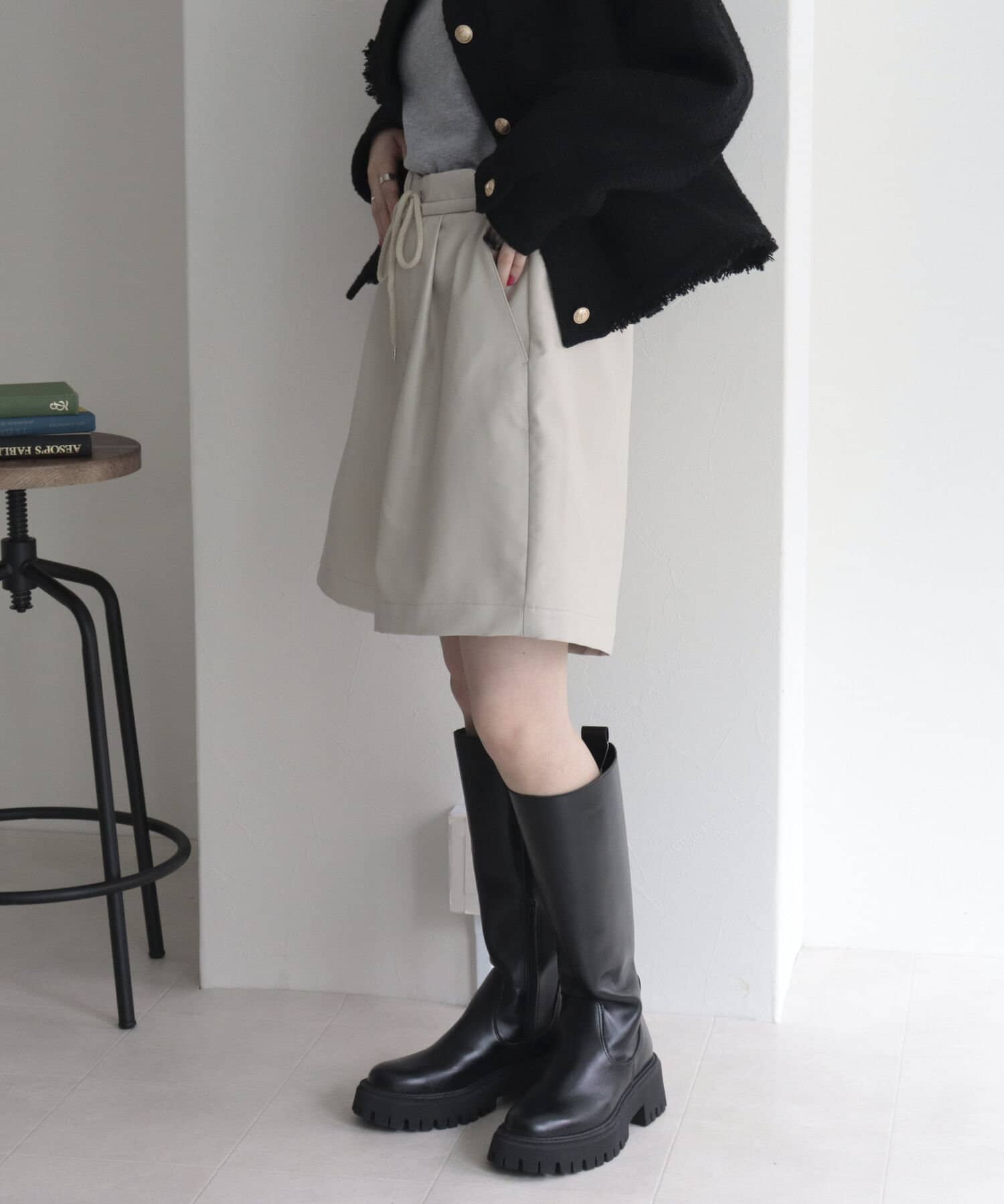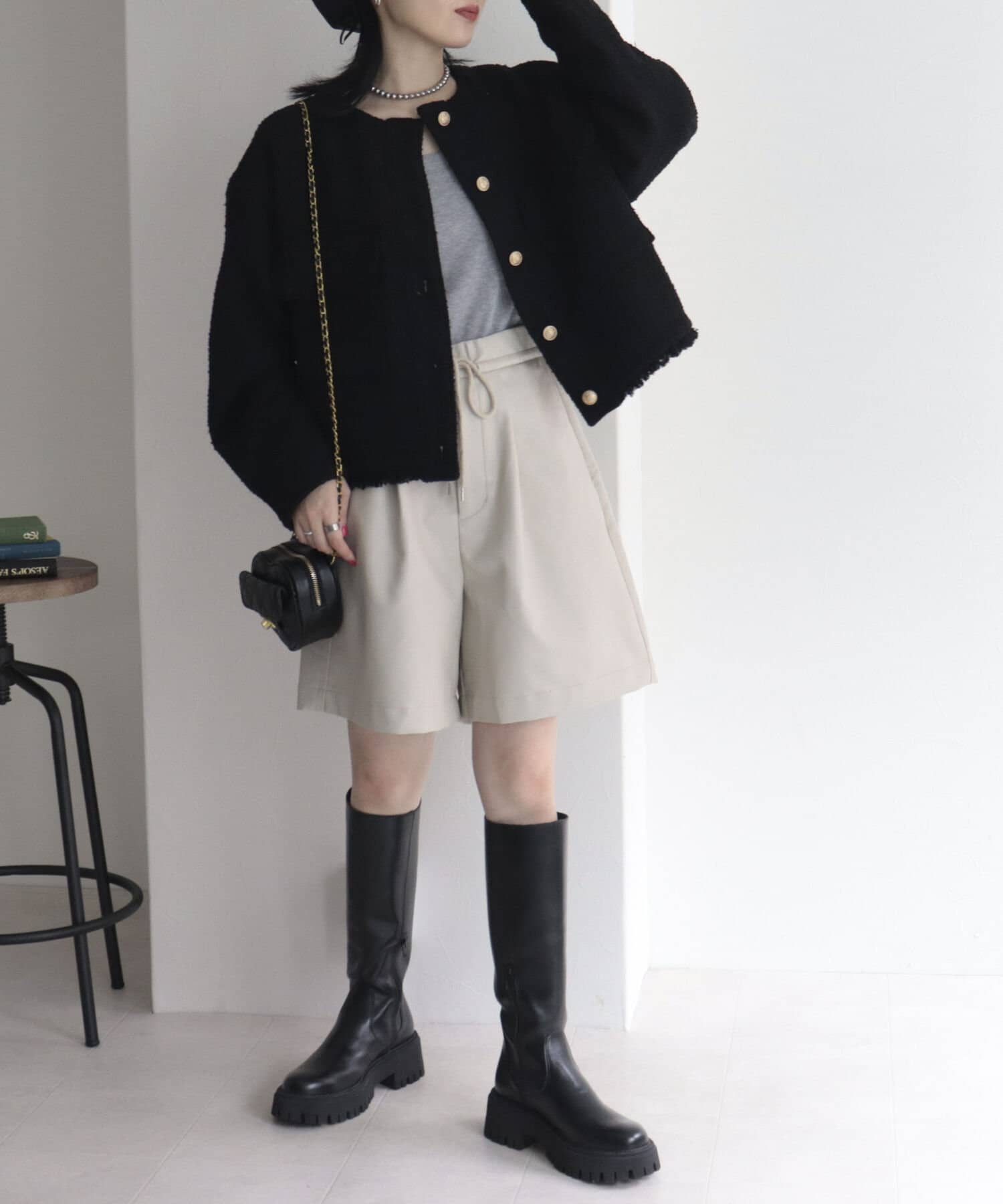 秋冬に欠かせないレザー調アイテムをショーパンで取り入れる