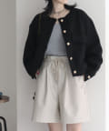 ハリのある生地が身体のラインを拾わず、メリハリのあるスタイルが完成するハーフパンツ。