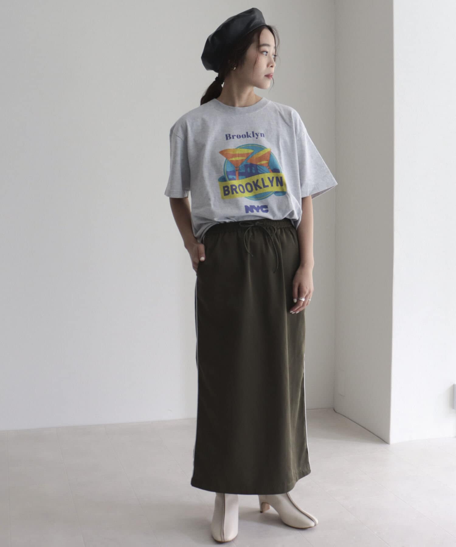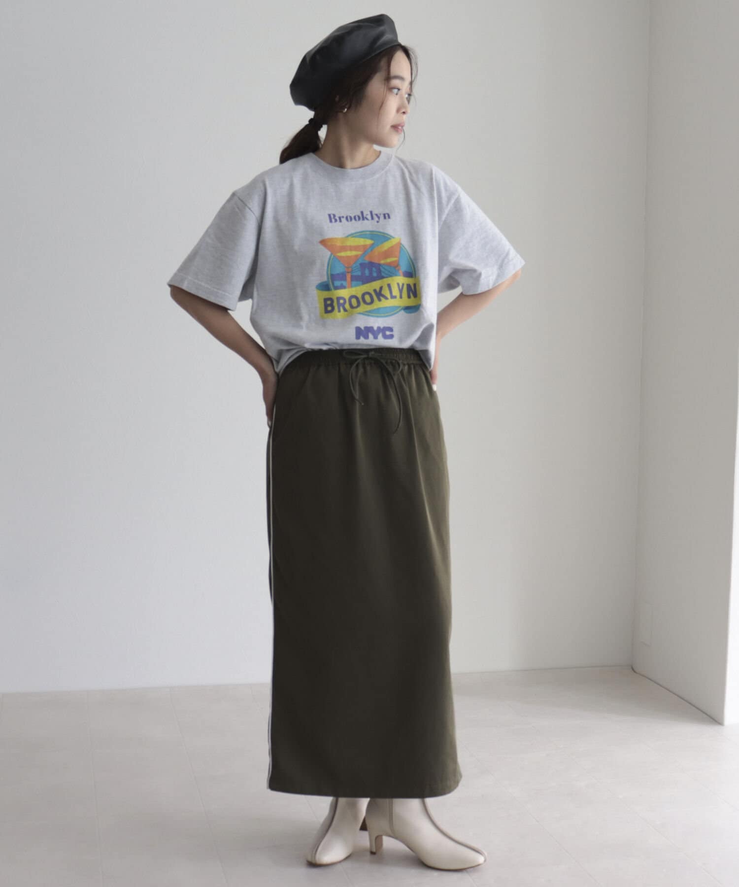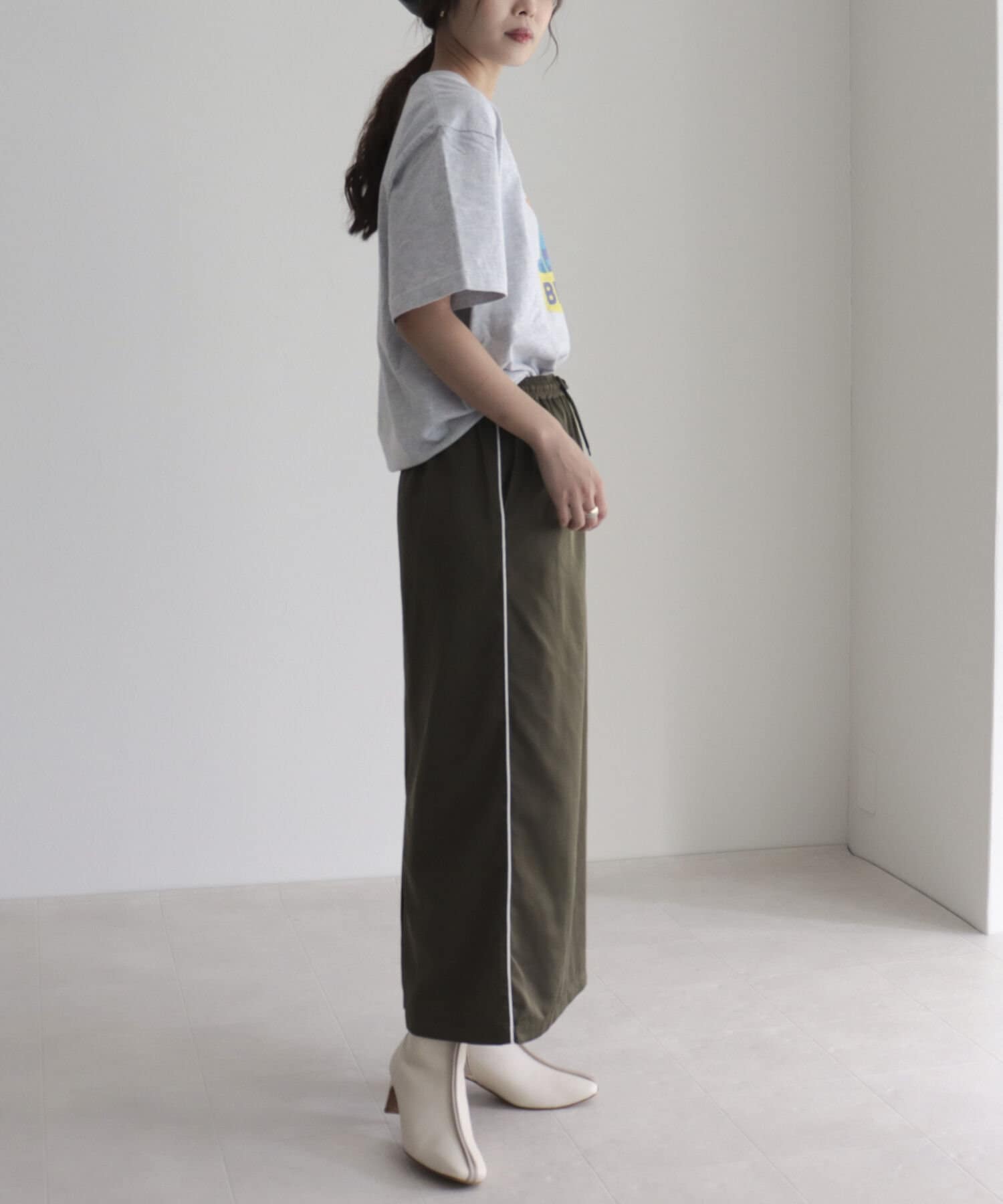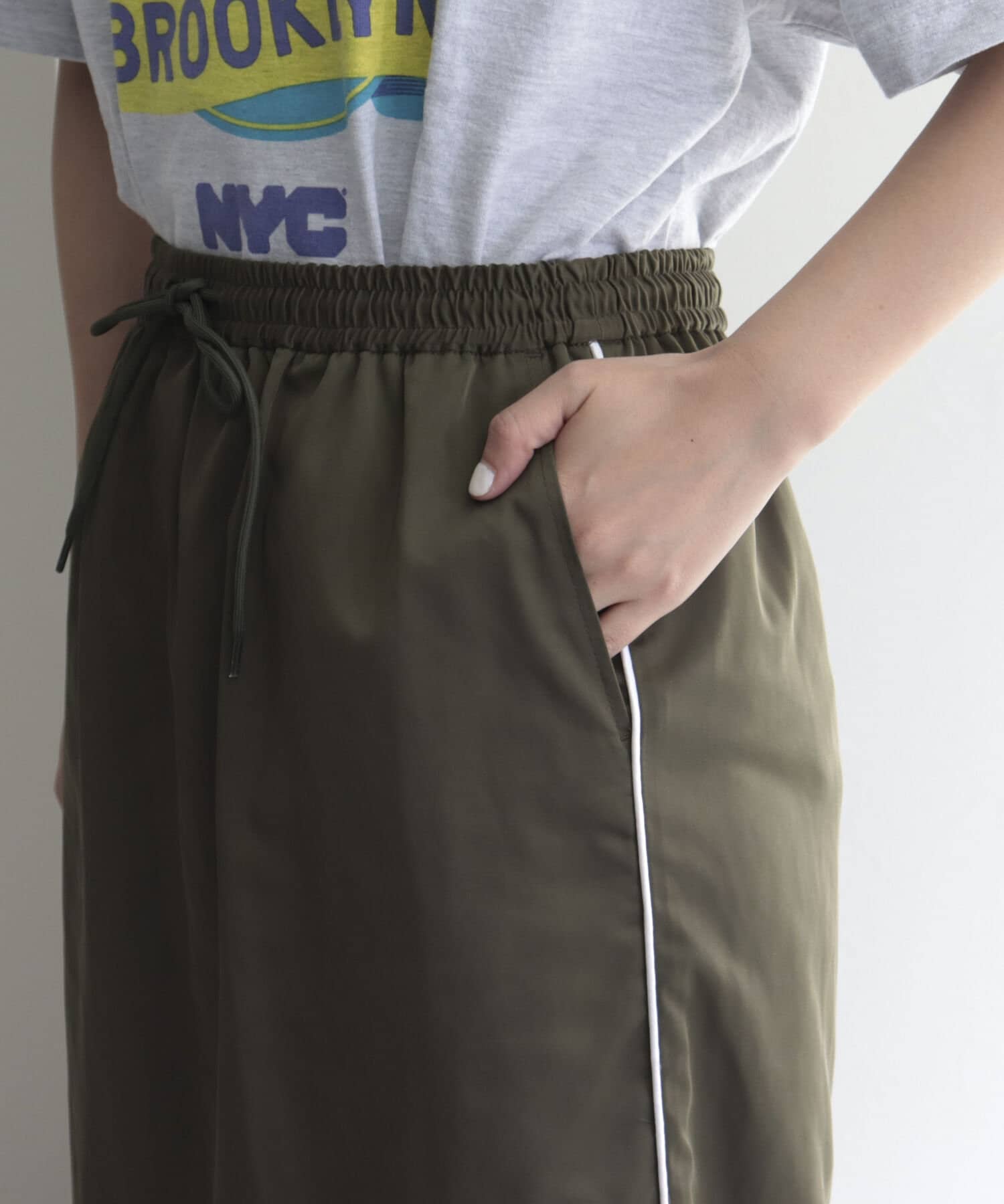 細めのサイドラインがカジュアルすぎないスカート