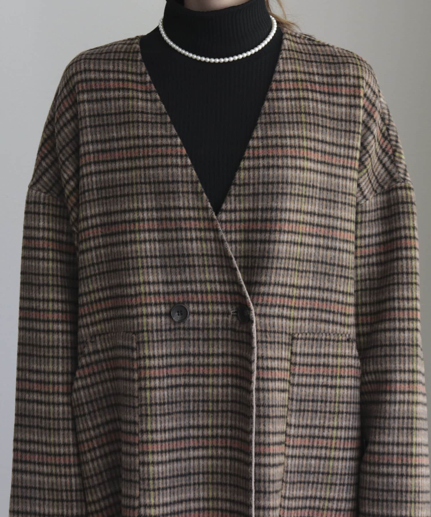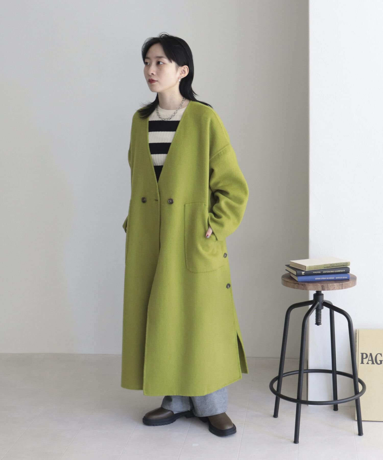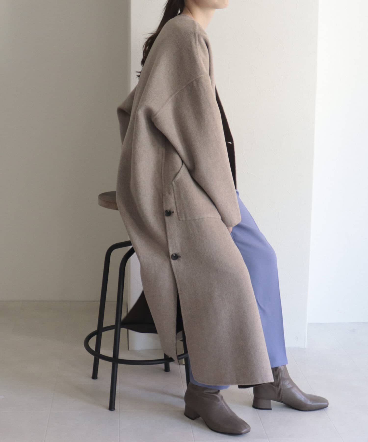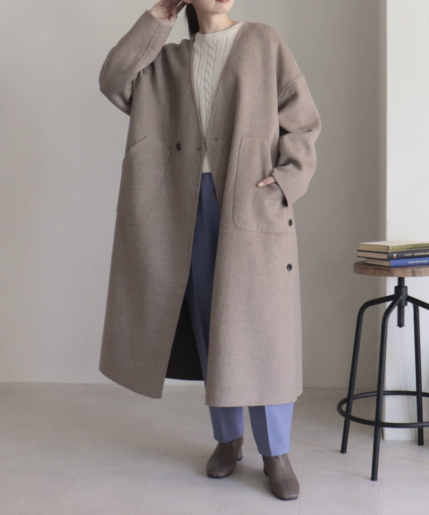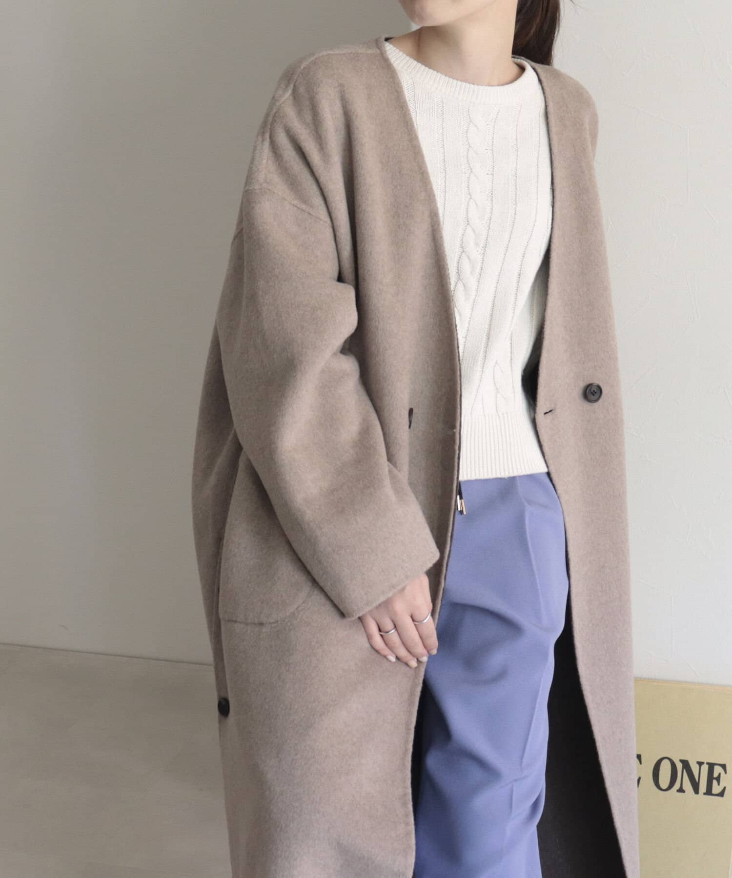 • FREDY & GLOSTER(フレディ アンド グロスター) リバー仕立てノーカラーVネックコート