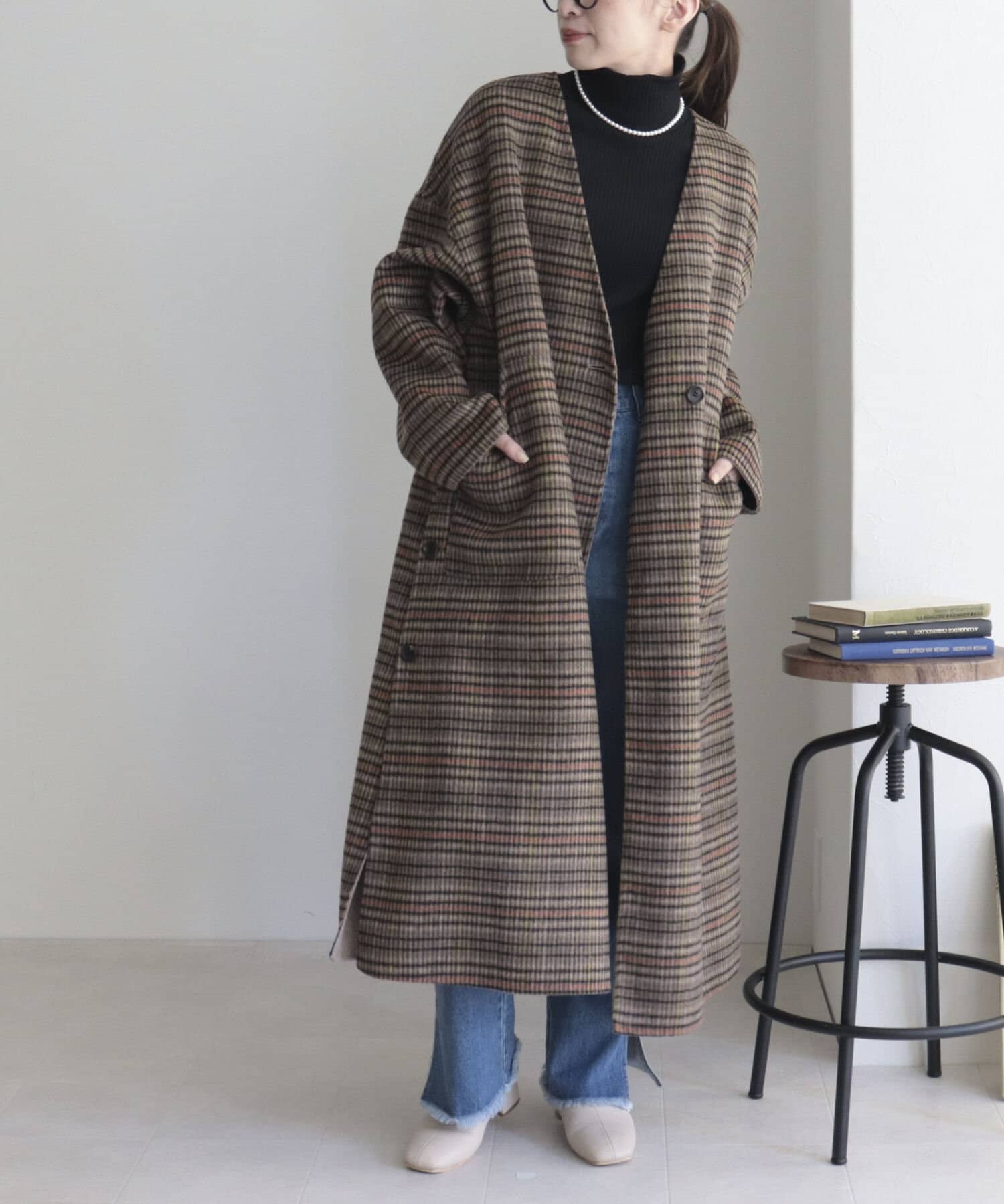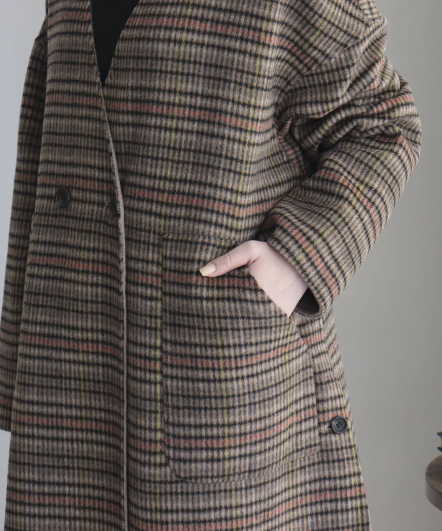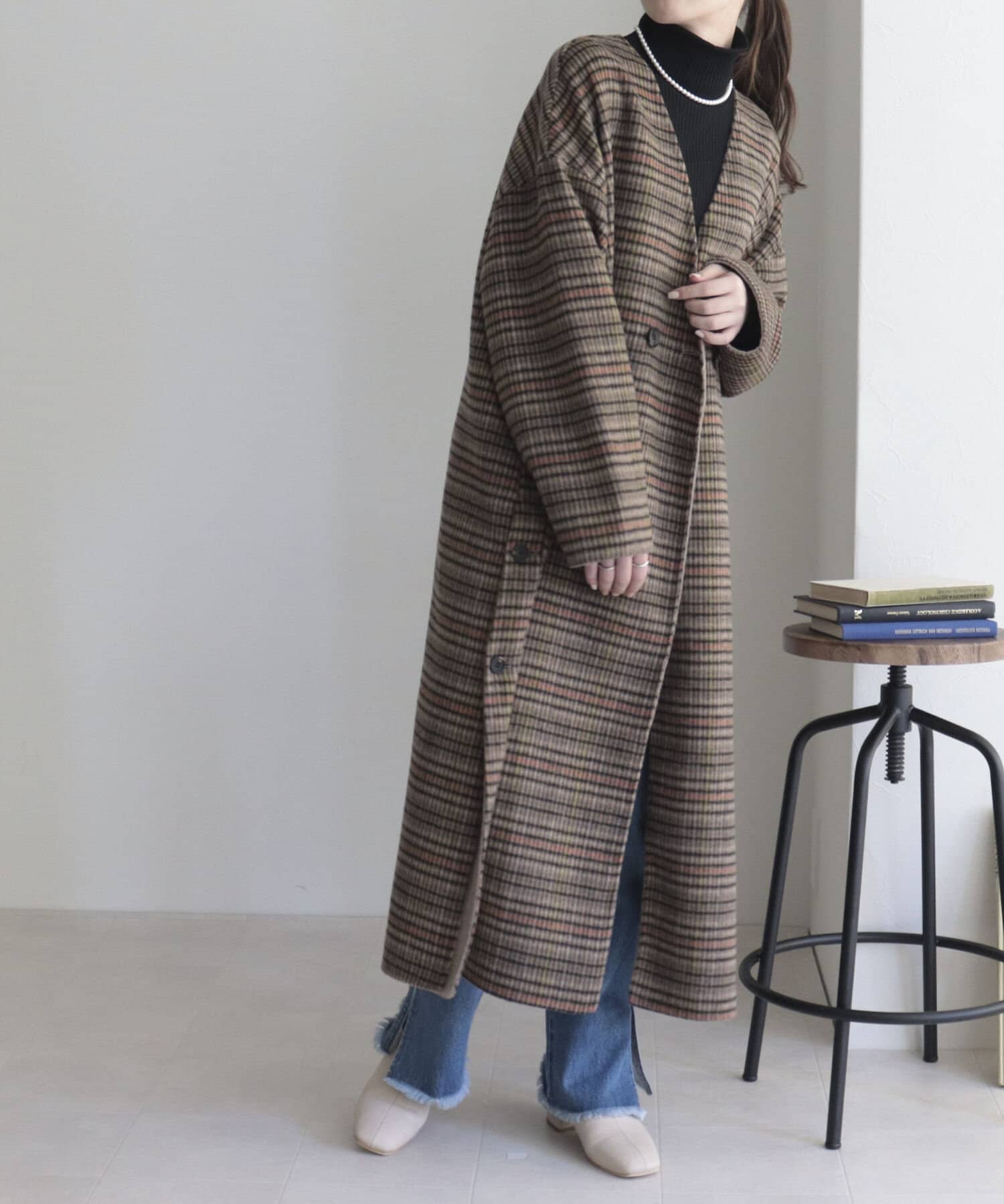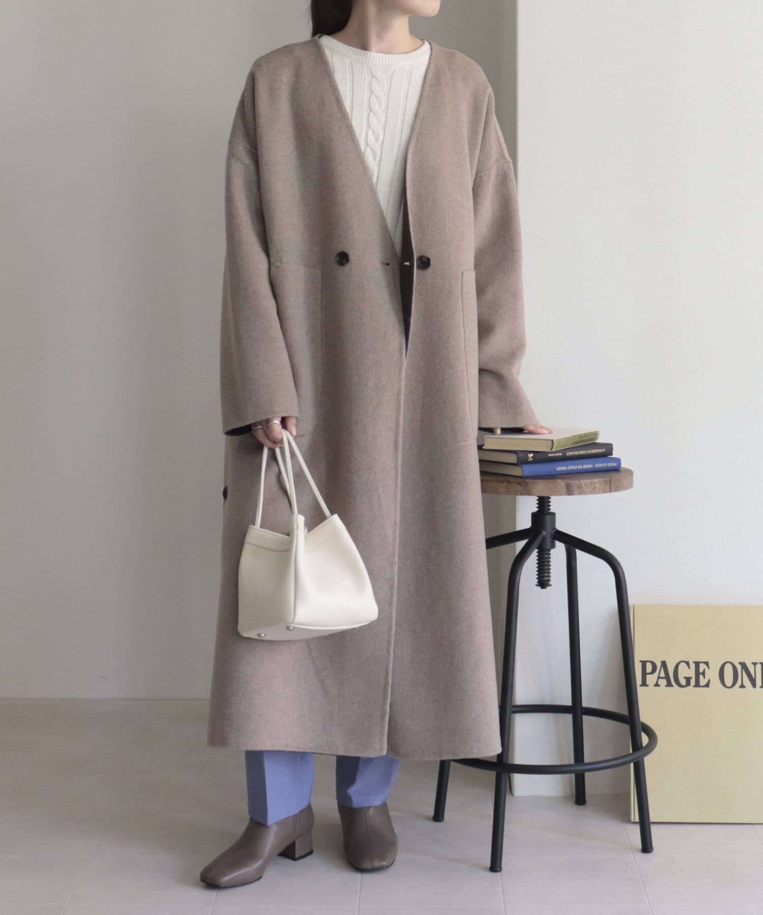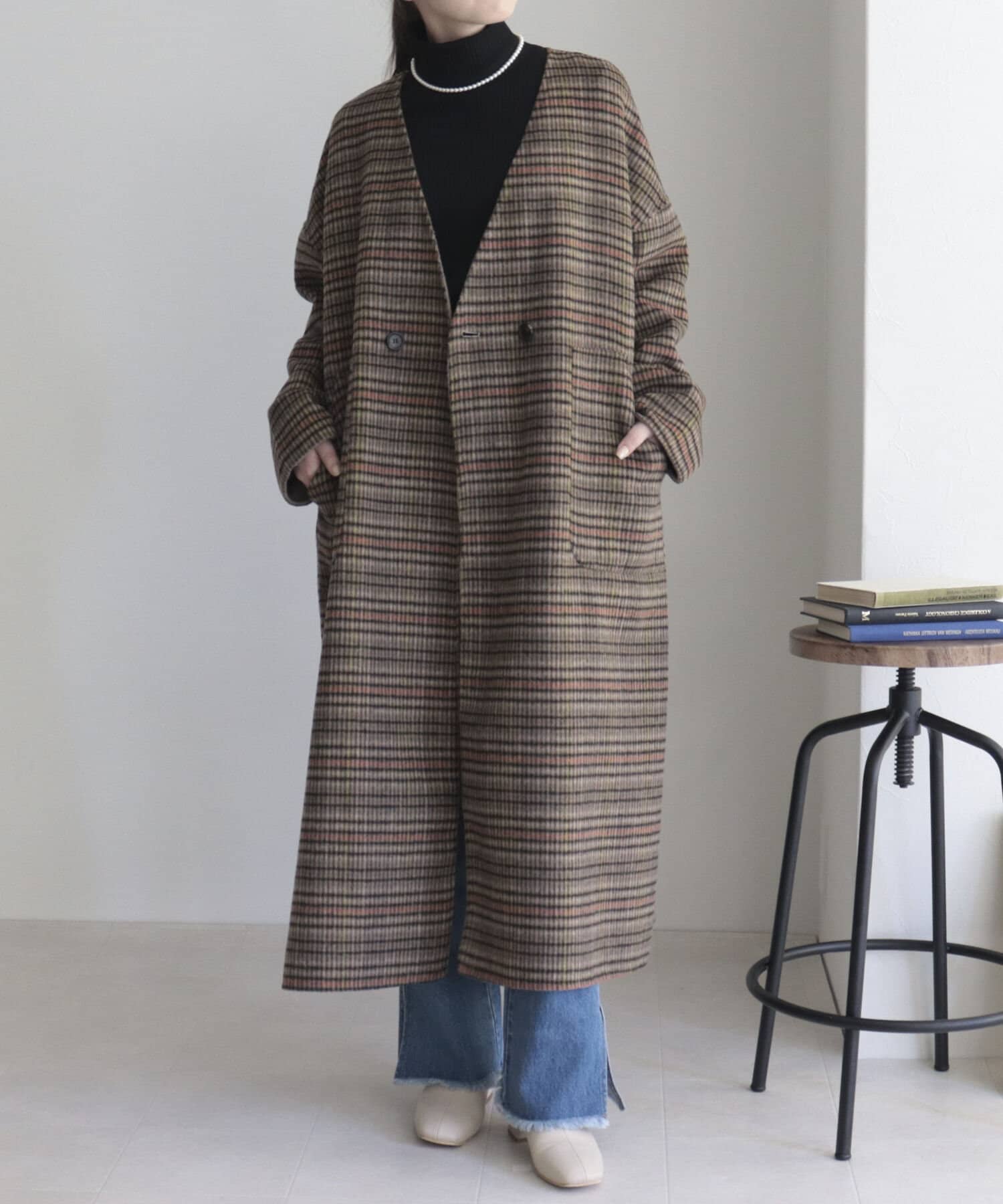 • FREDY & GLOSTER(フレディ アンド グロスター) リバー仕立てノーカラーVネックコート