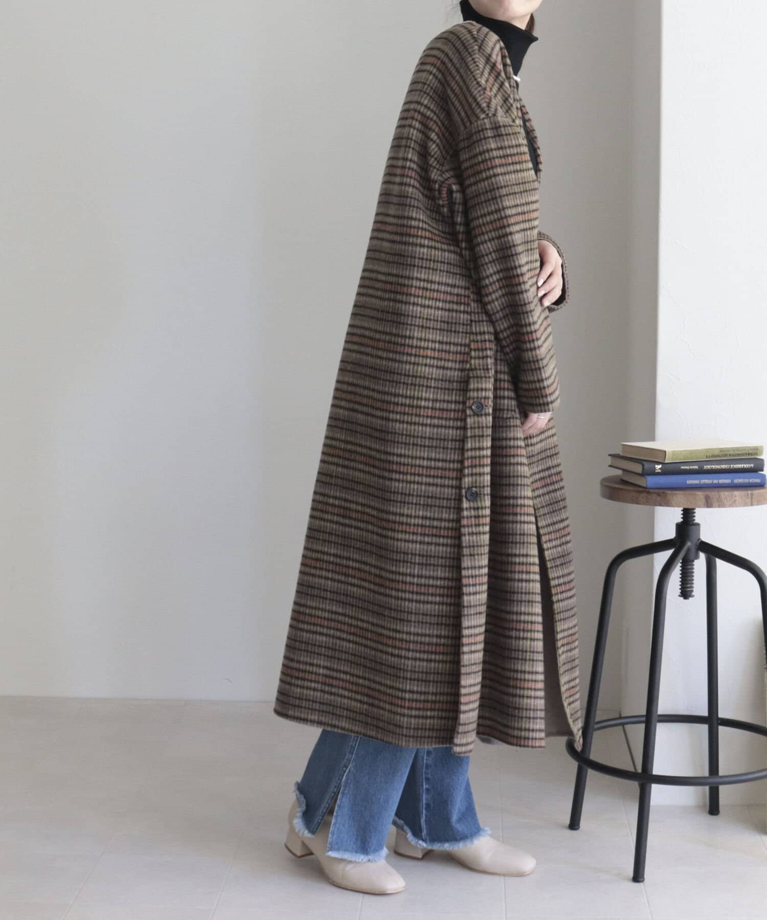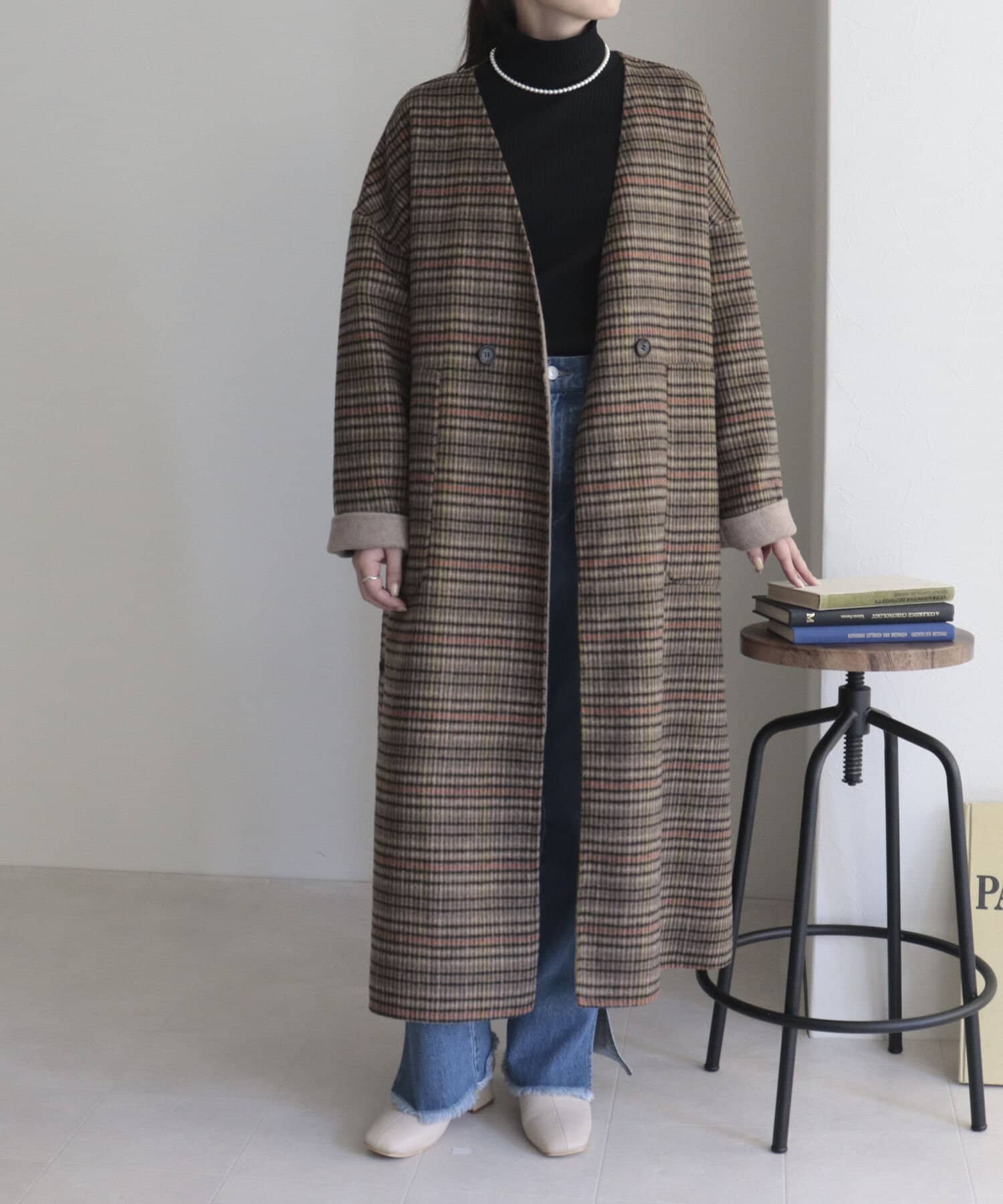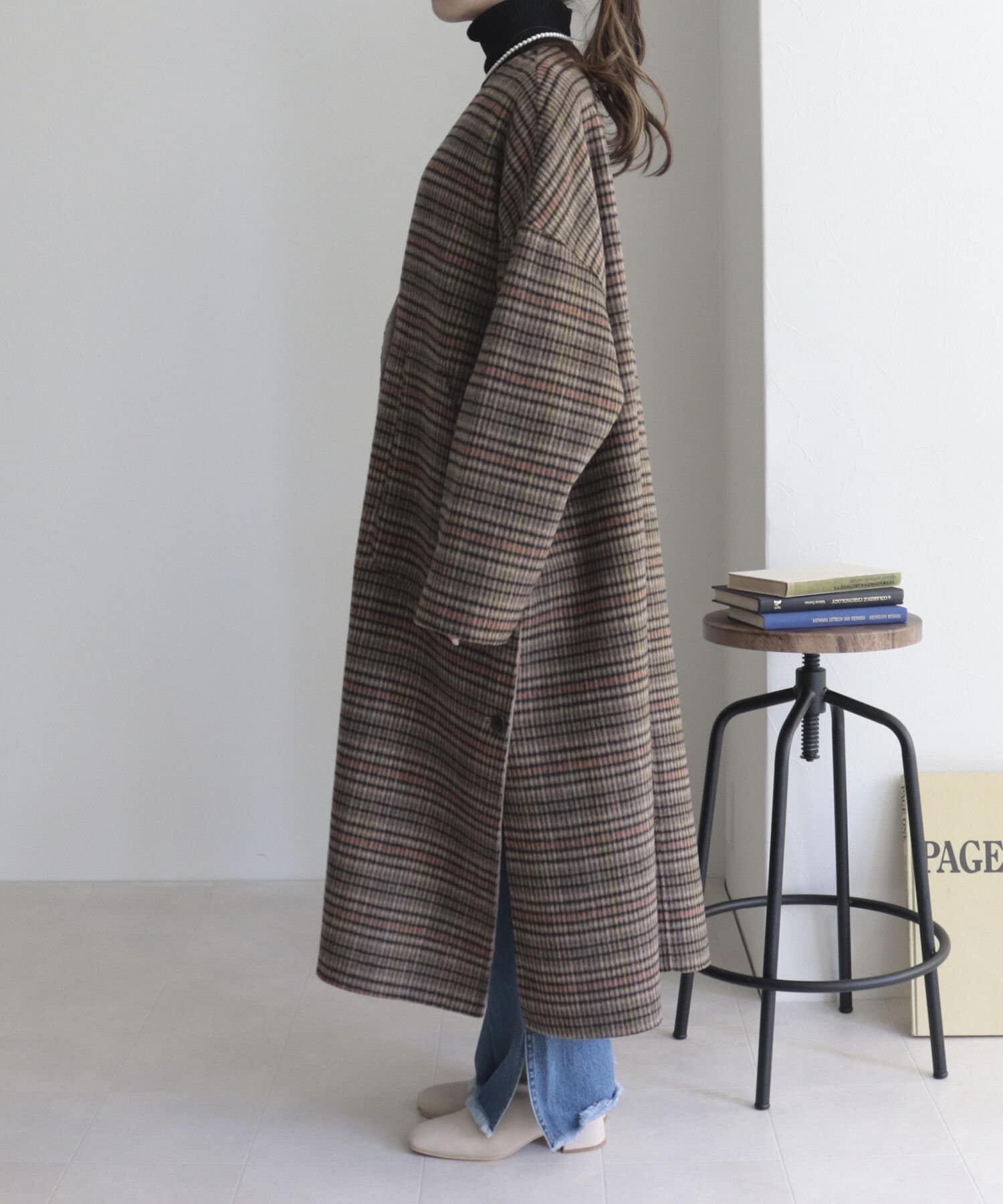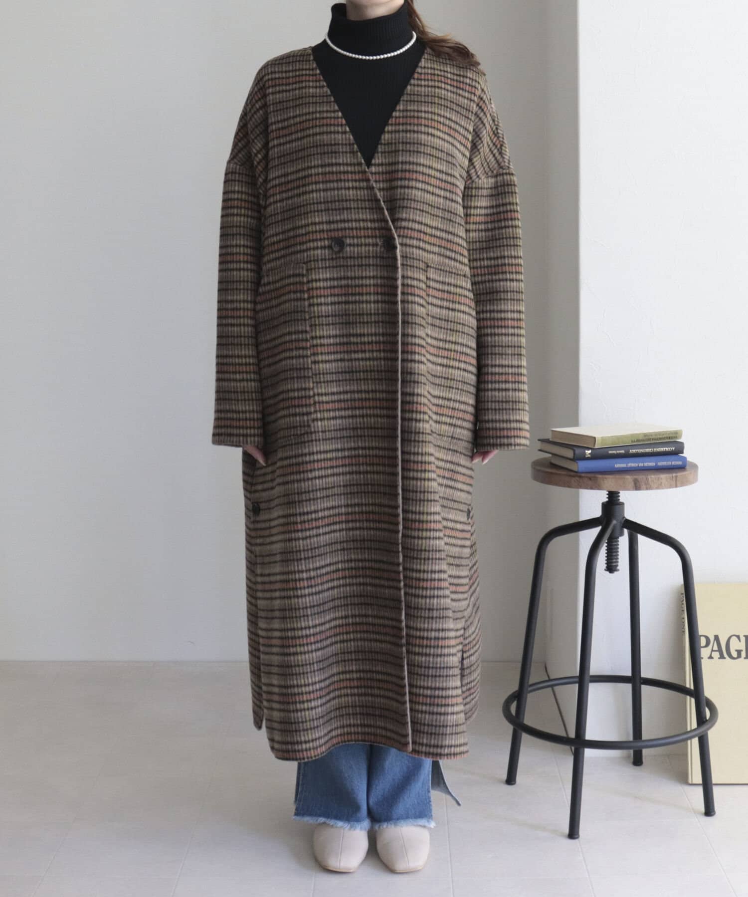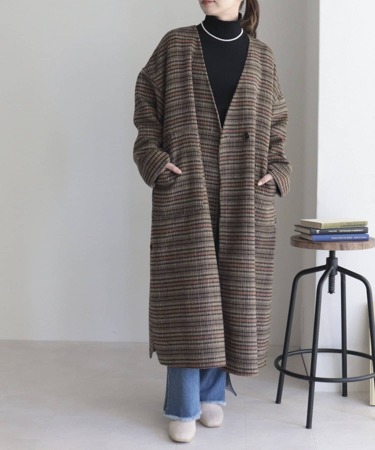 • FREDY & GLOSTER(フレディ アンド グロスター) リバー仕立てノーカラーVネックコート