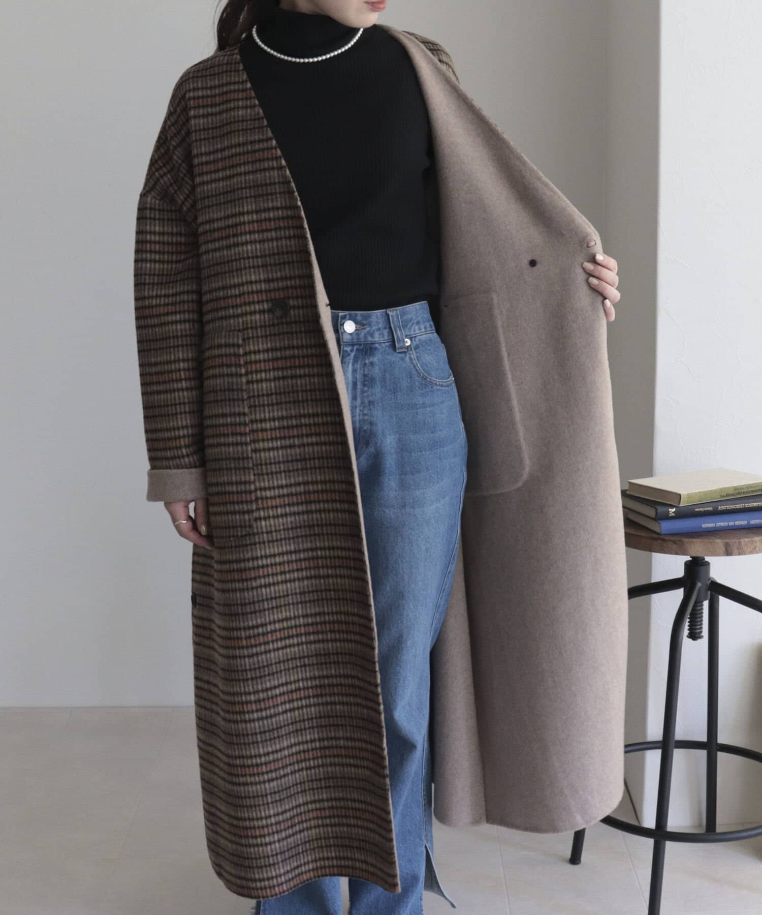 TOP > FREDY & GLOSTER > レディース > ジャケット/アウター > リバーコート > リバー仕立てノーカラーVネックコート