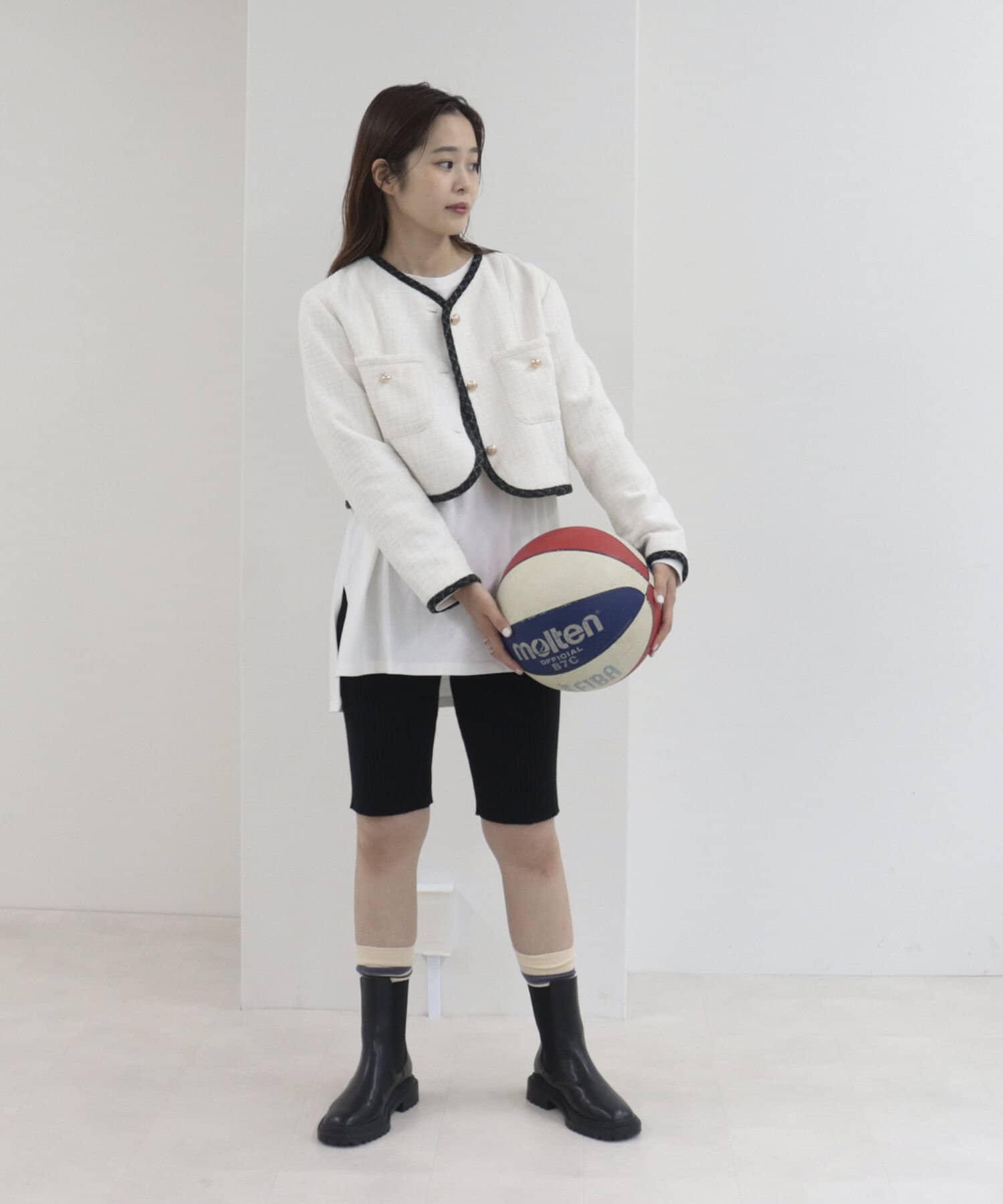 オーバーシャツやロングジャケットを合わせるのが韓国ファッションの定番。