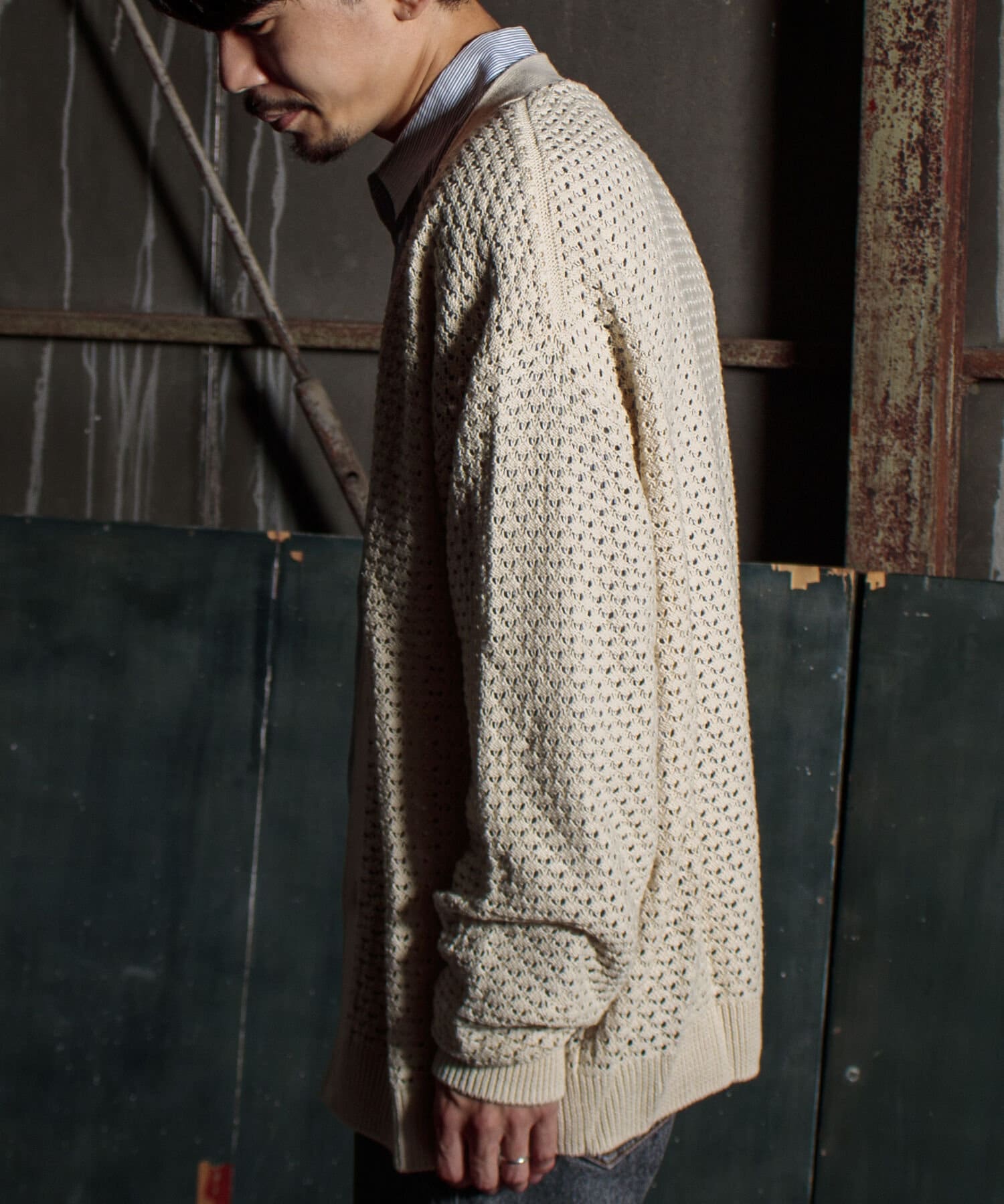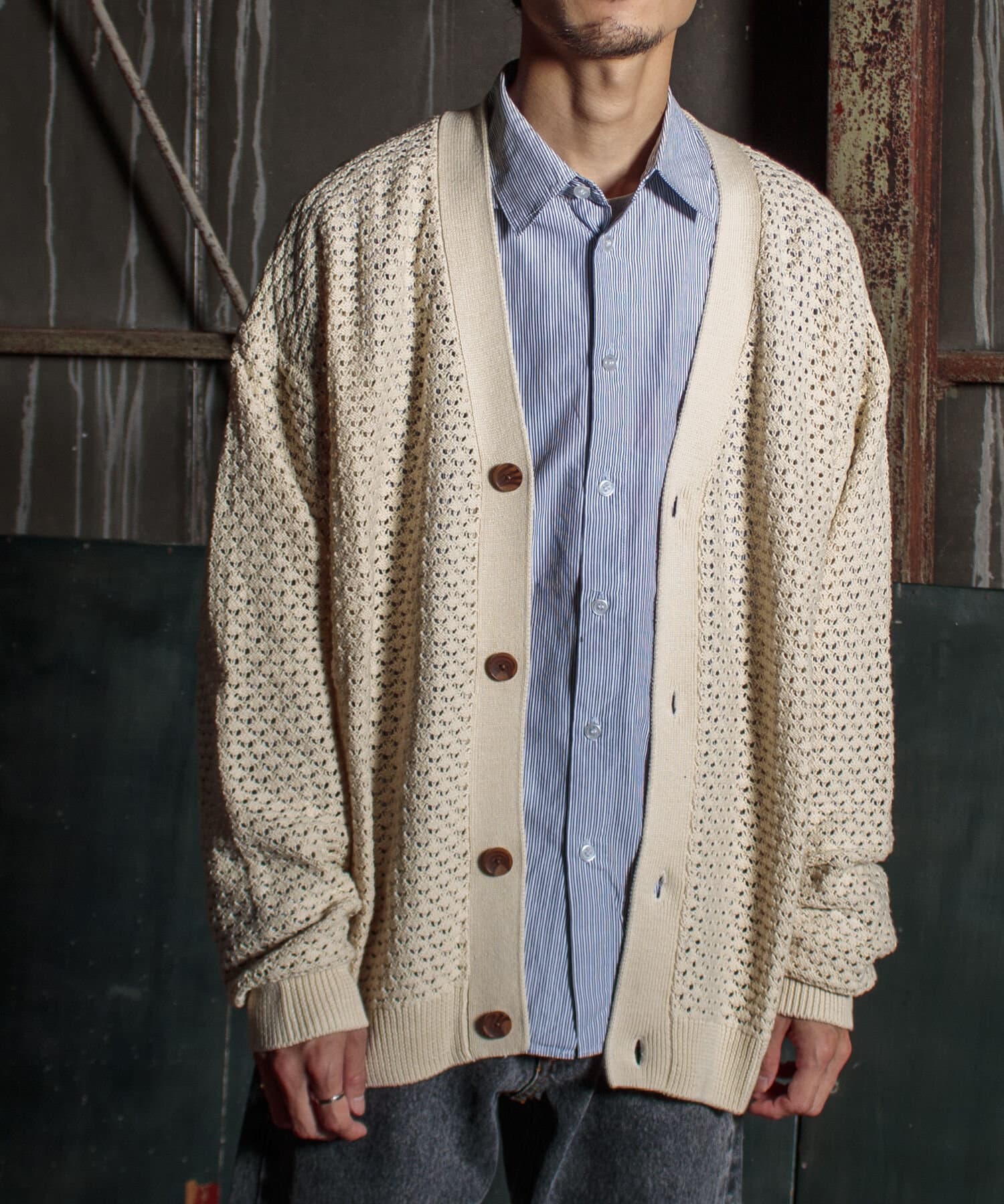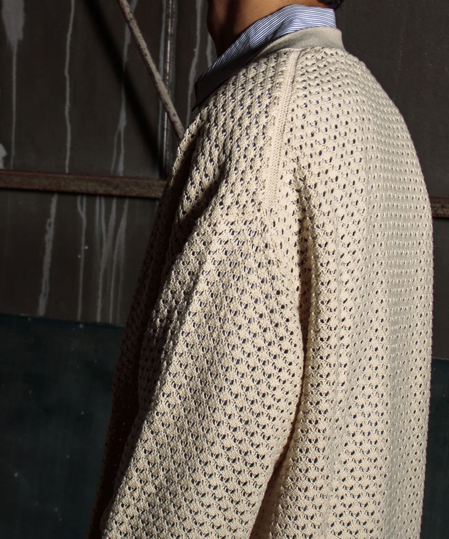 トレンド感溢れるクロシェ編みをメンズライクに落とし込んだカーディガン!