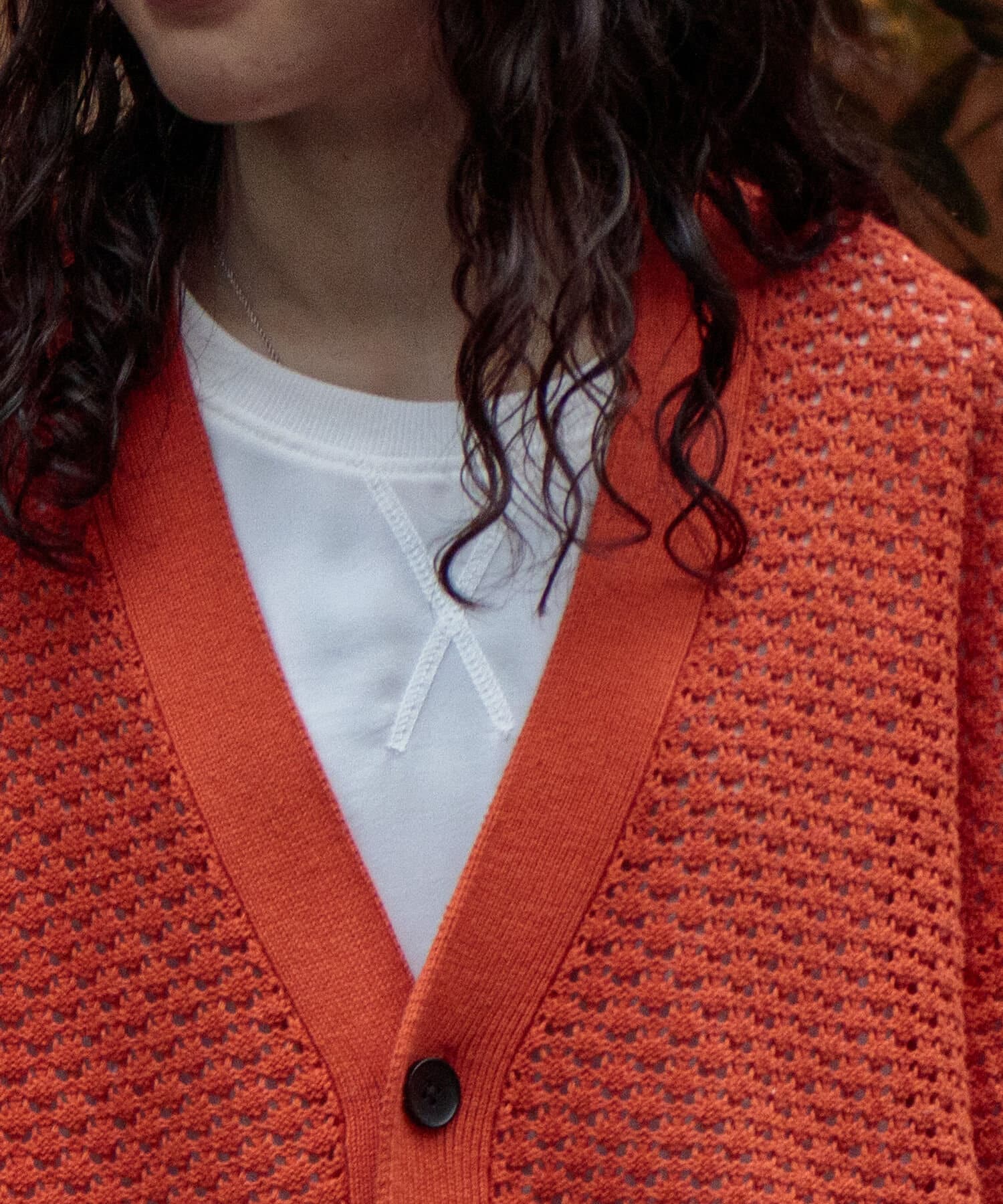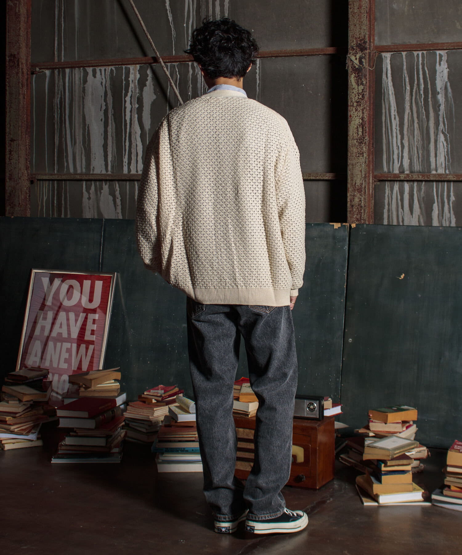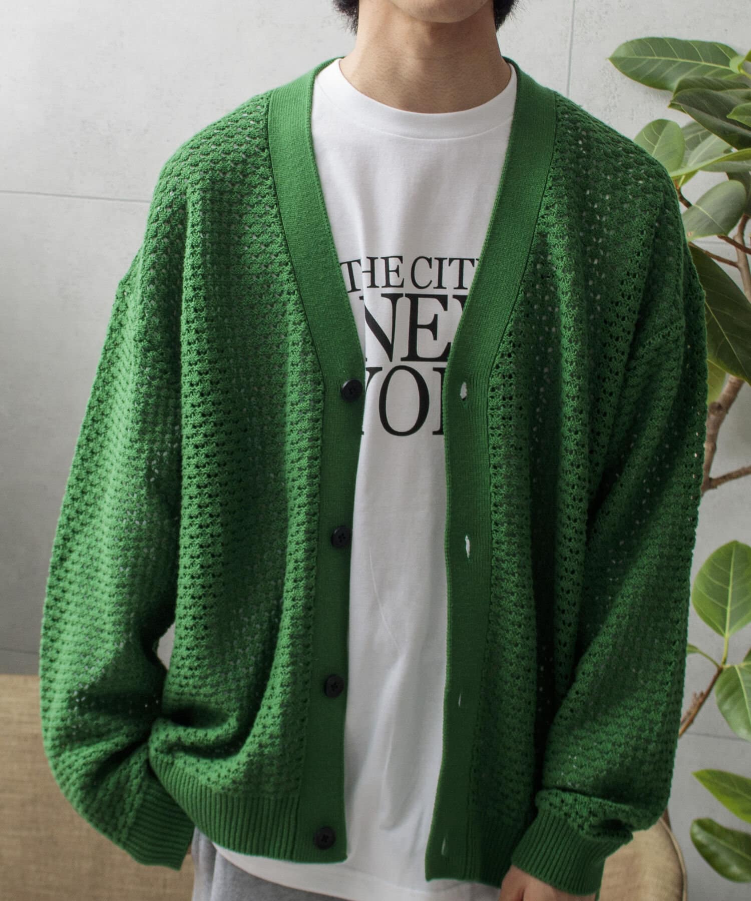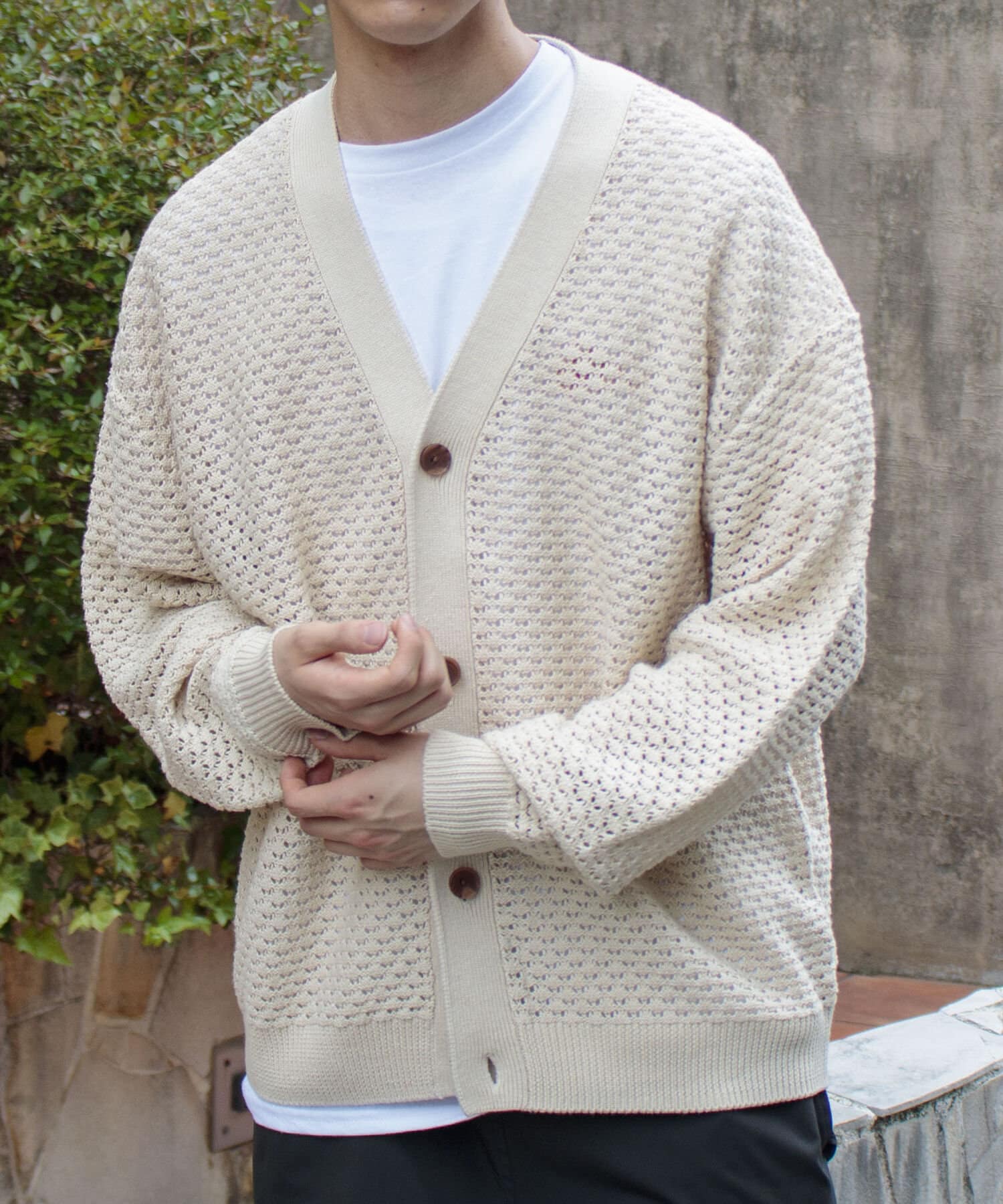 トレンド感溢れるクロシェ編みをメンズライクに落とし込んだカーディガン!