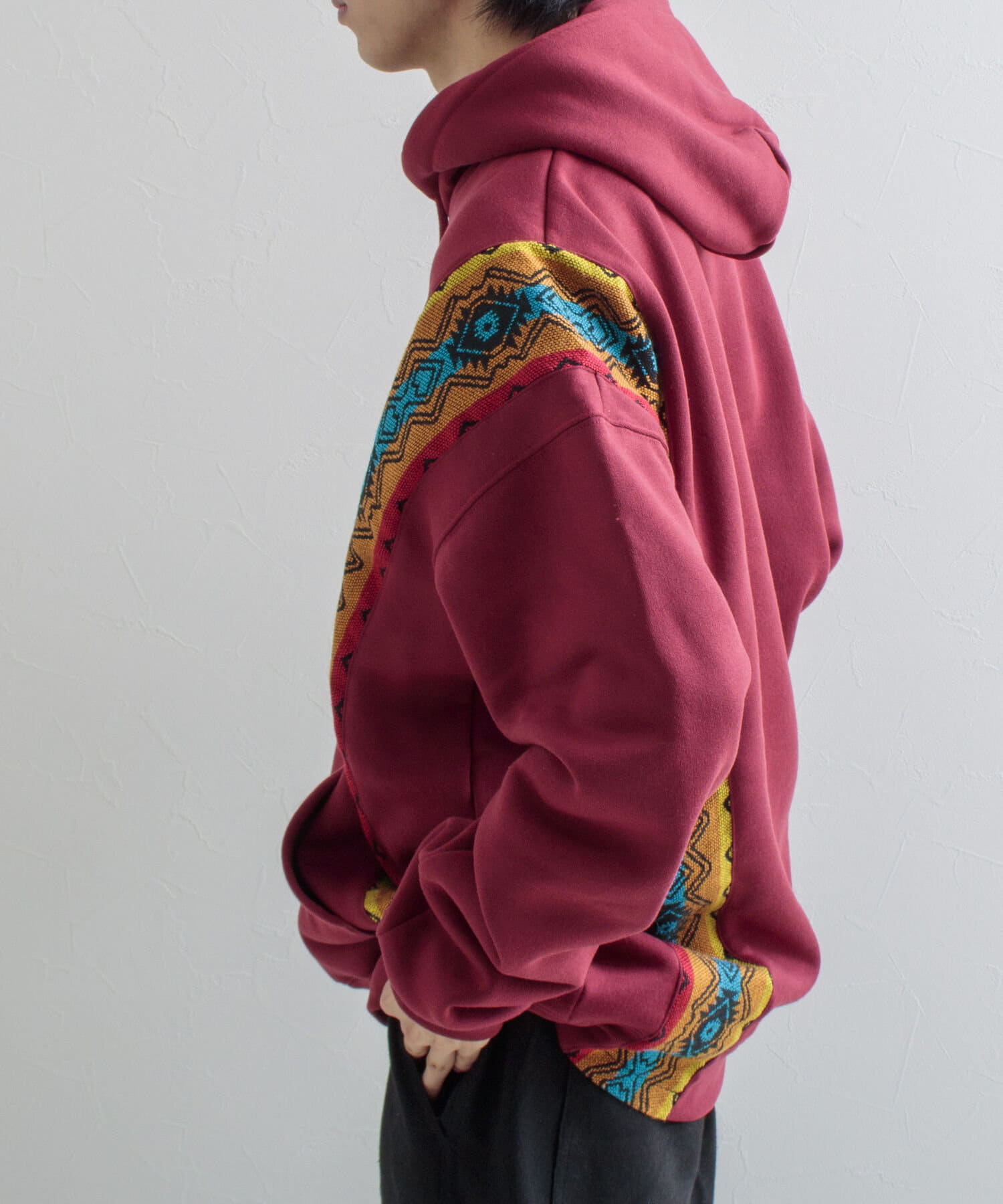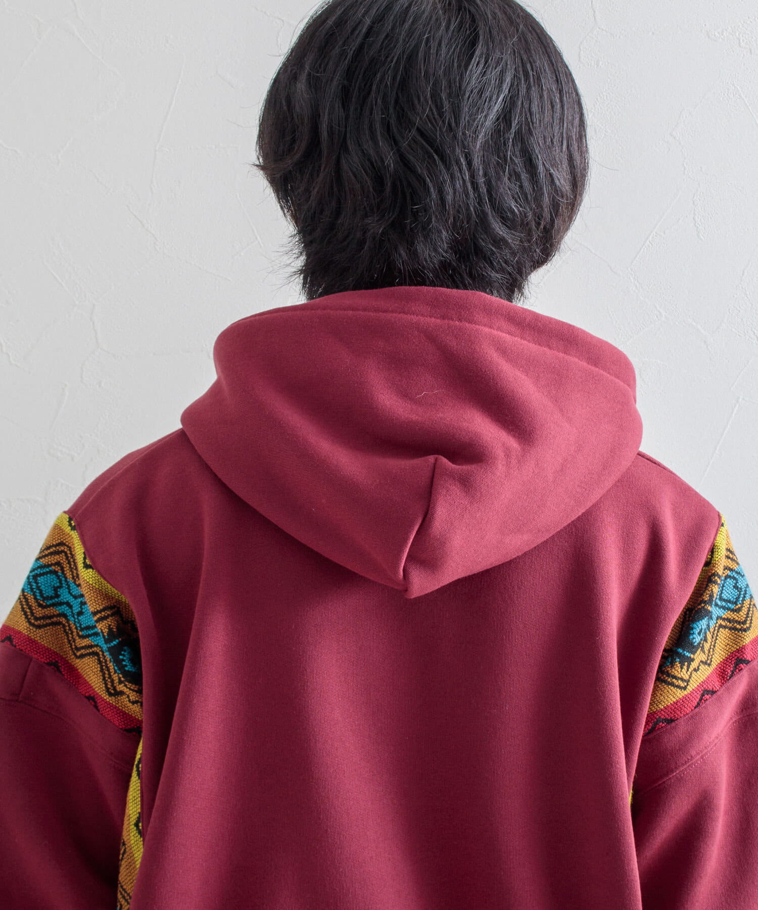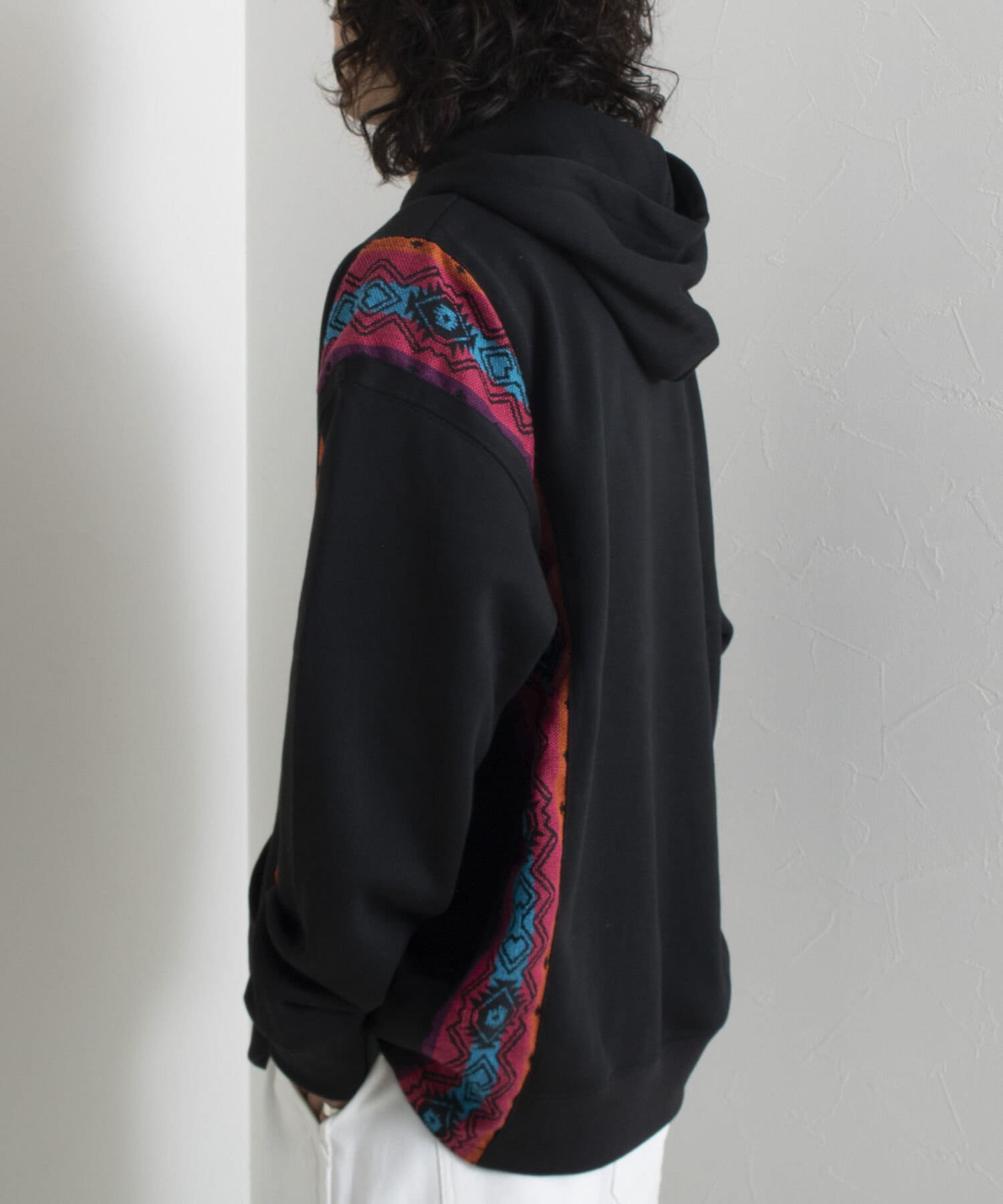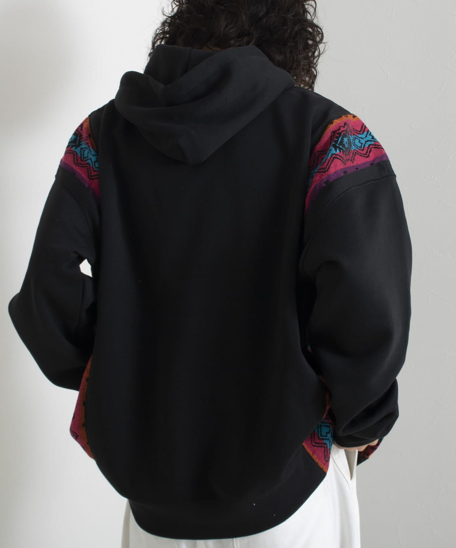 ネイティブ柄のマテリアルを使用した切り替えリメイクパーカー