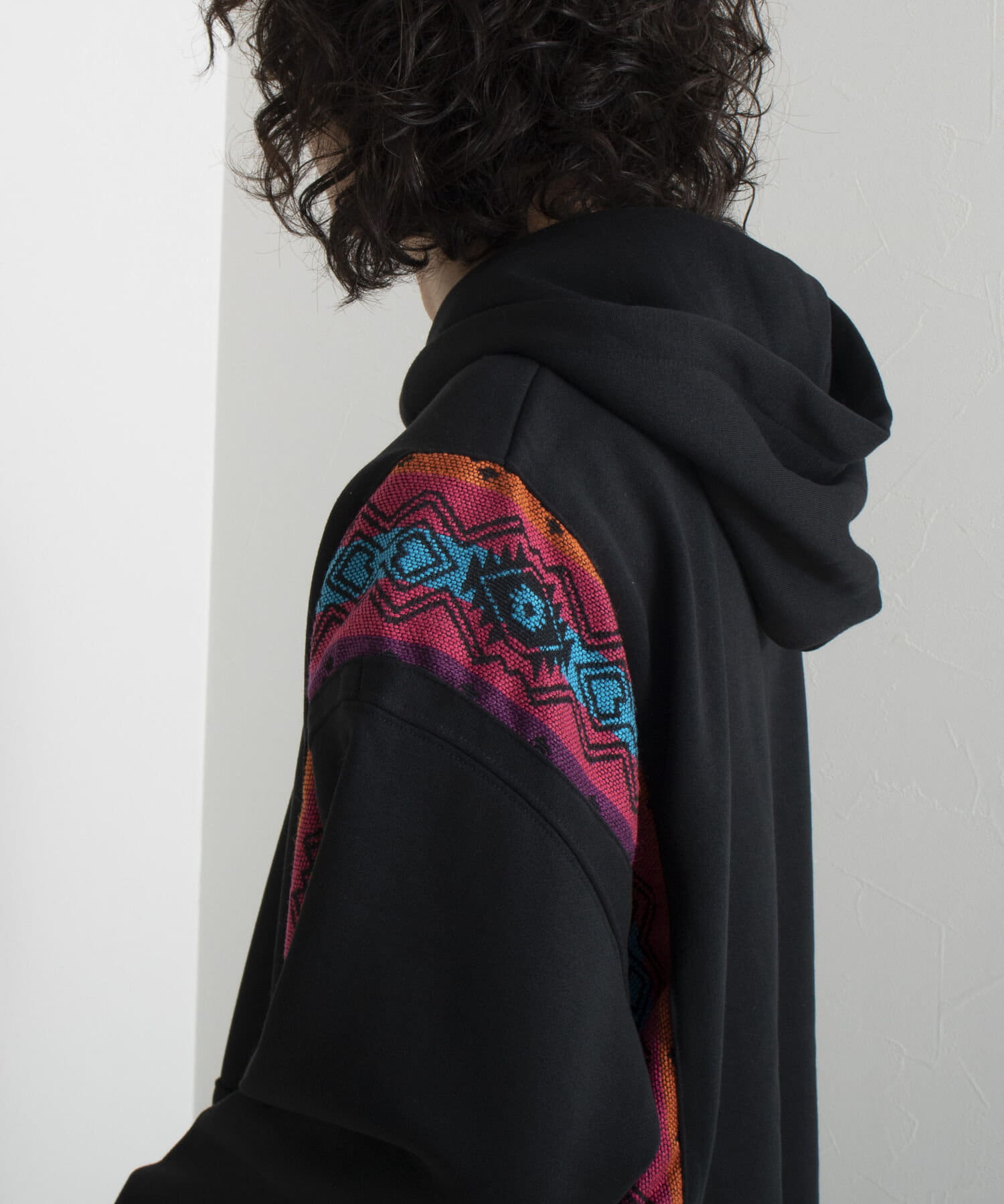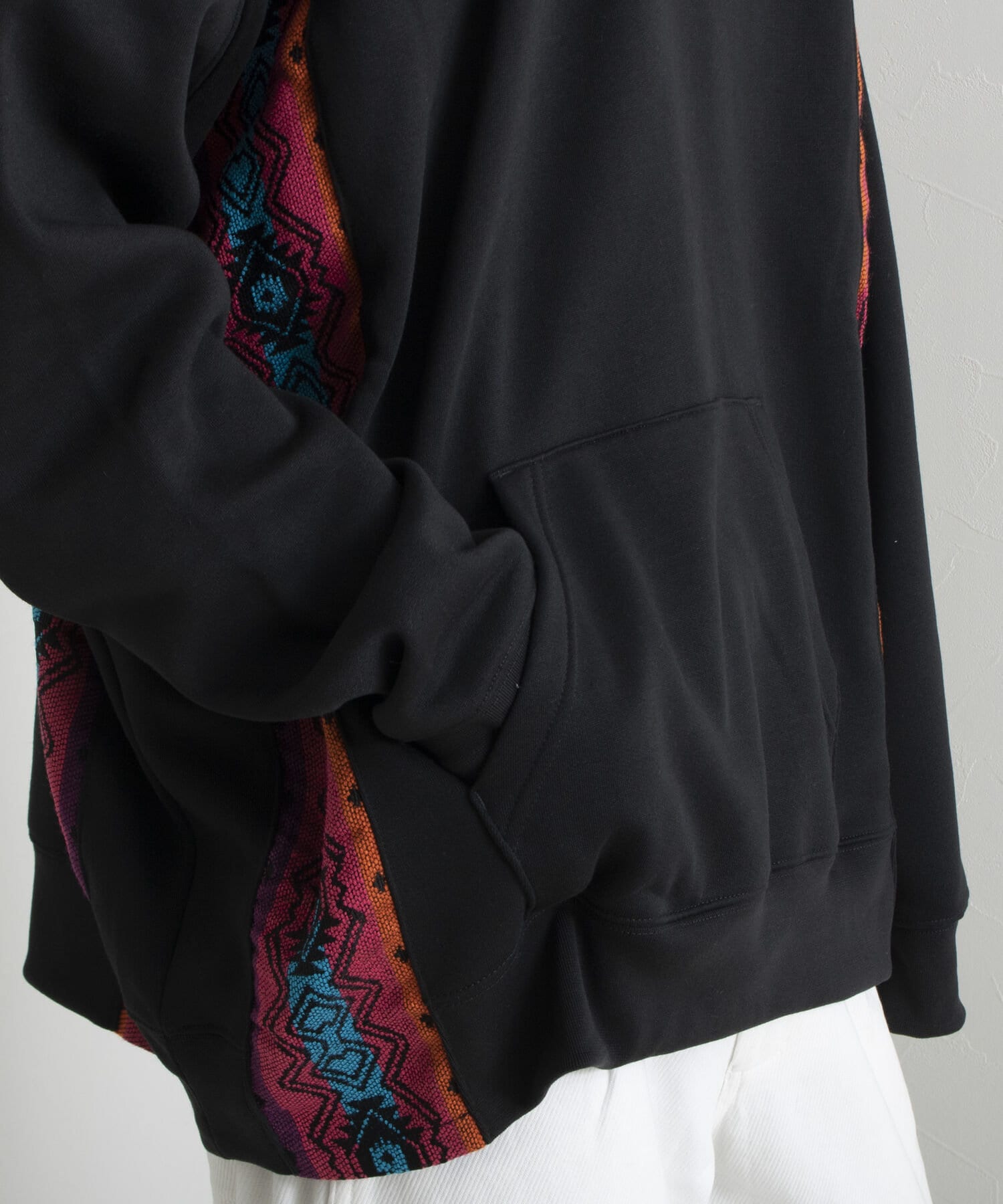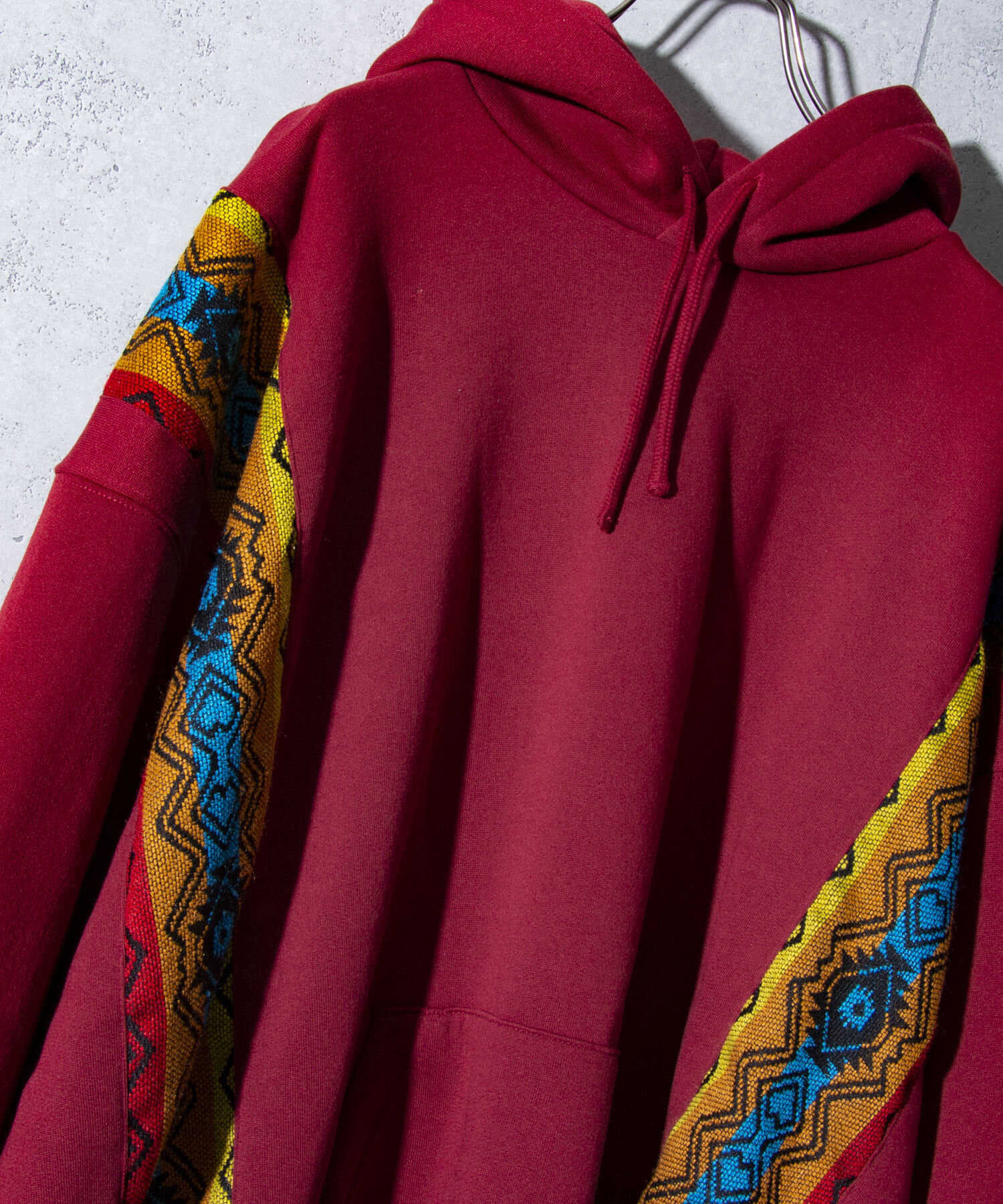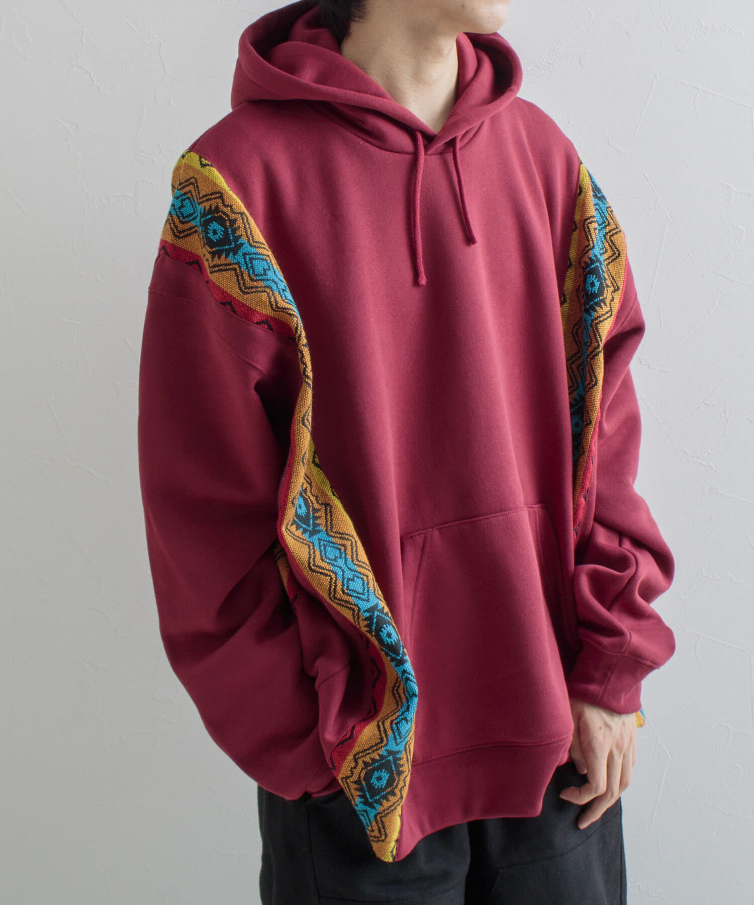 ネイティブ柄のマテリアルを使用した切り替えリメイクパーカー