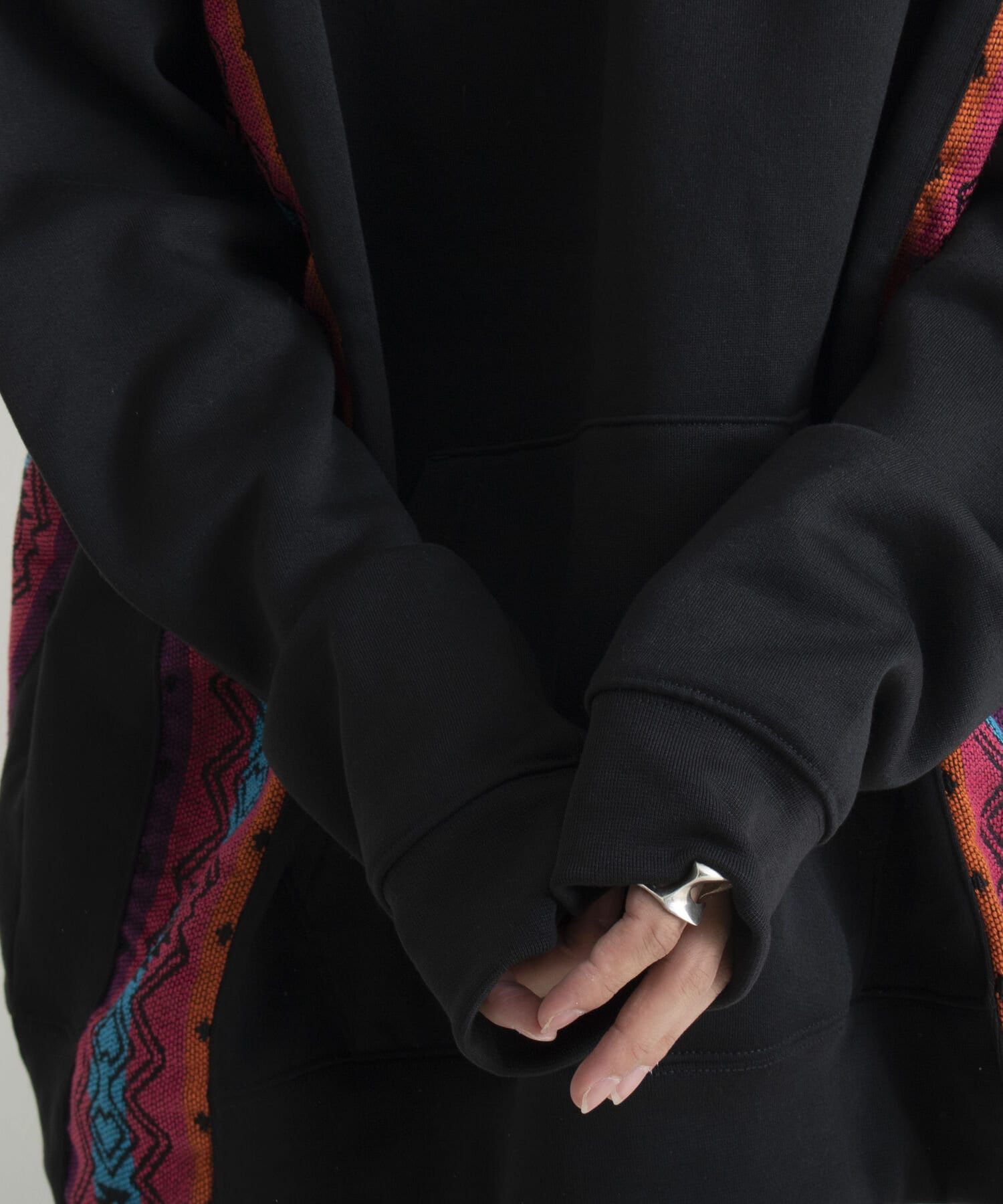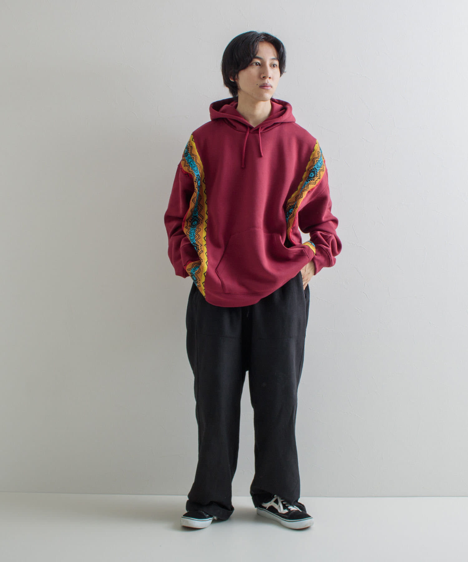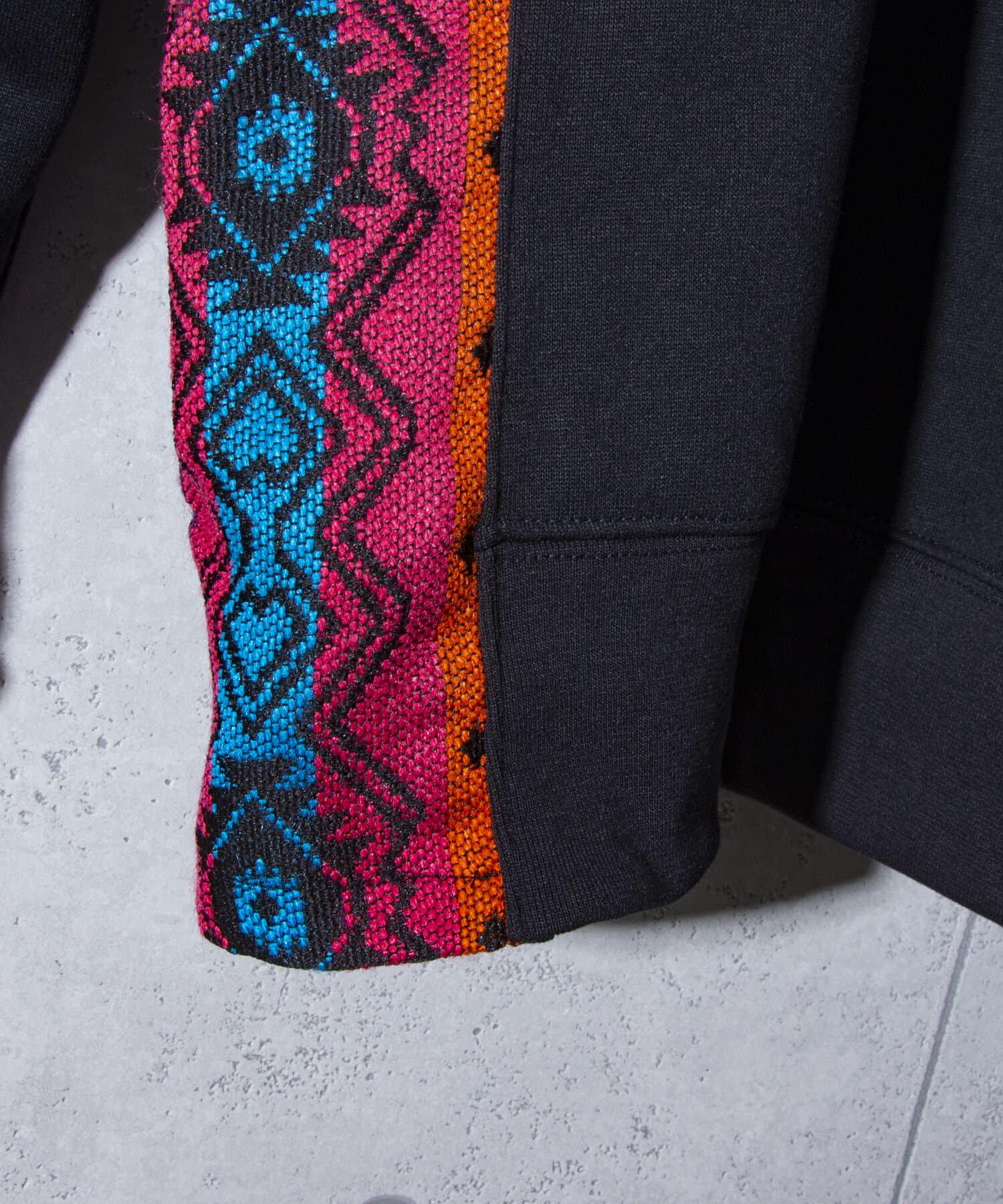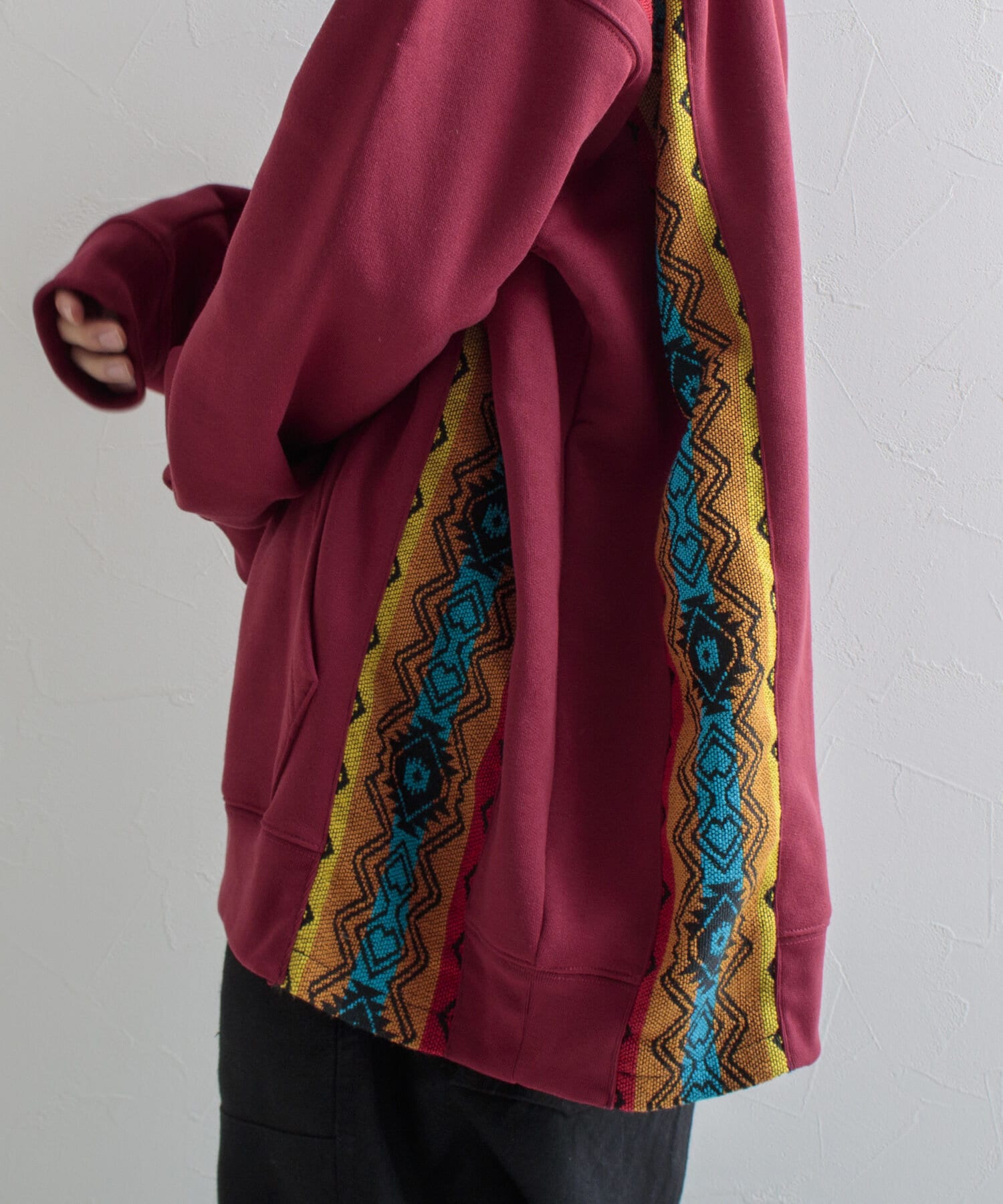 ネイティブ柄のマテリアルを使用した切り替えリメイクパーカー