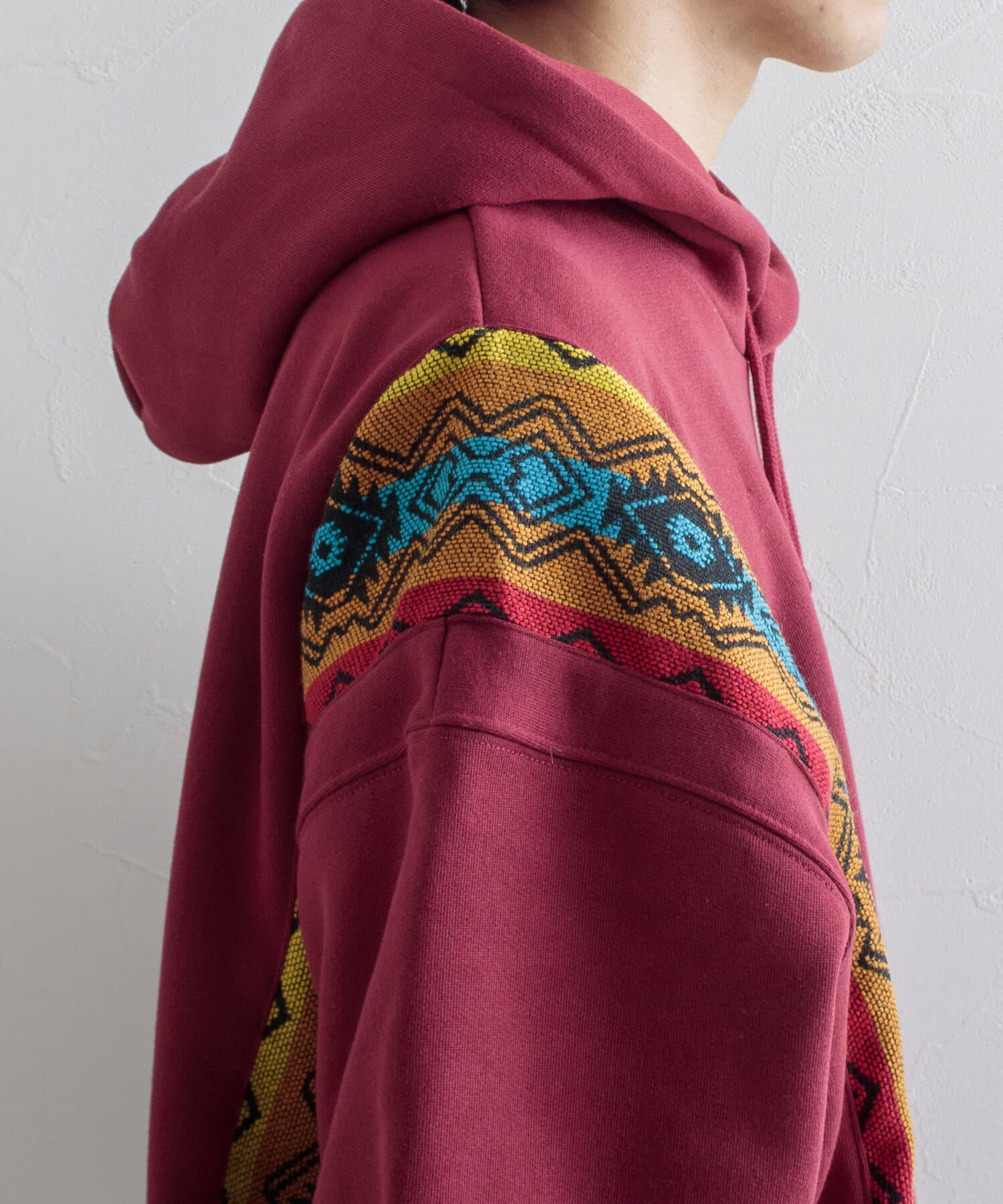 【GLOSTER】リメイク 切り替えパーカー ネイティブ柄 裏起毛