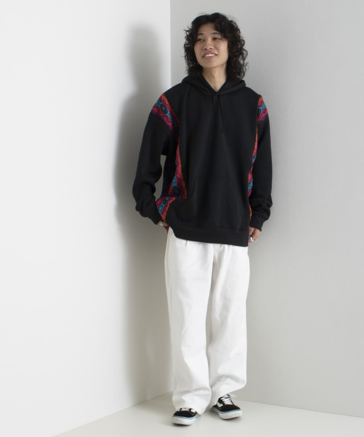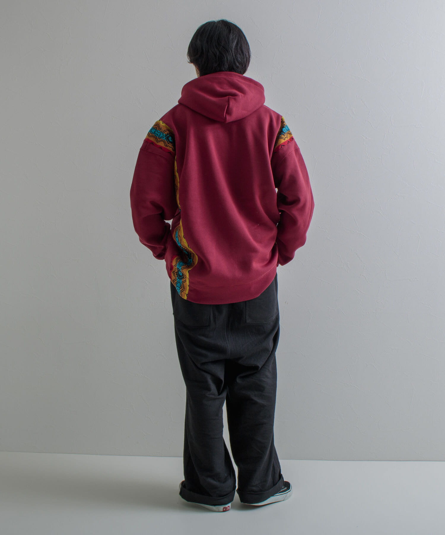 裏起毛パーカーのボディそれぞれに合うように選ばれたマテリアルをボディに切り替えすることにより唯一無二のパーカーが完成しました。