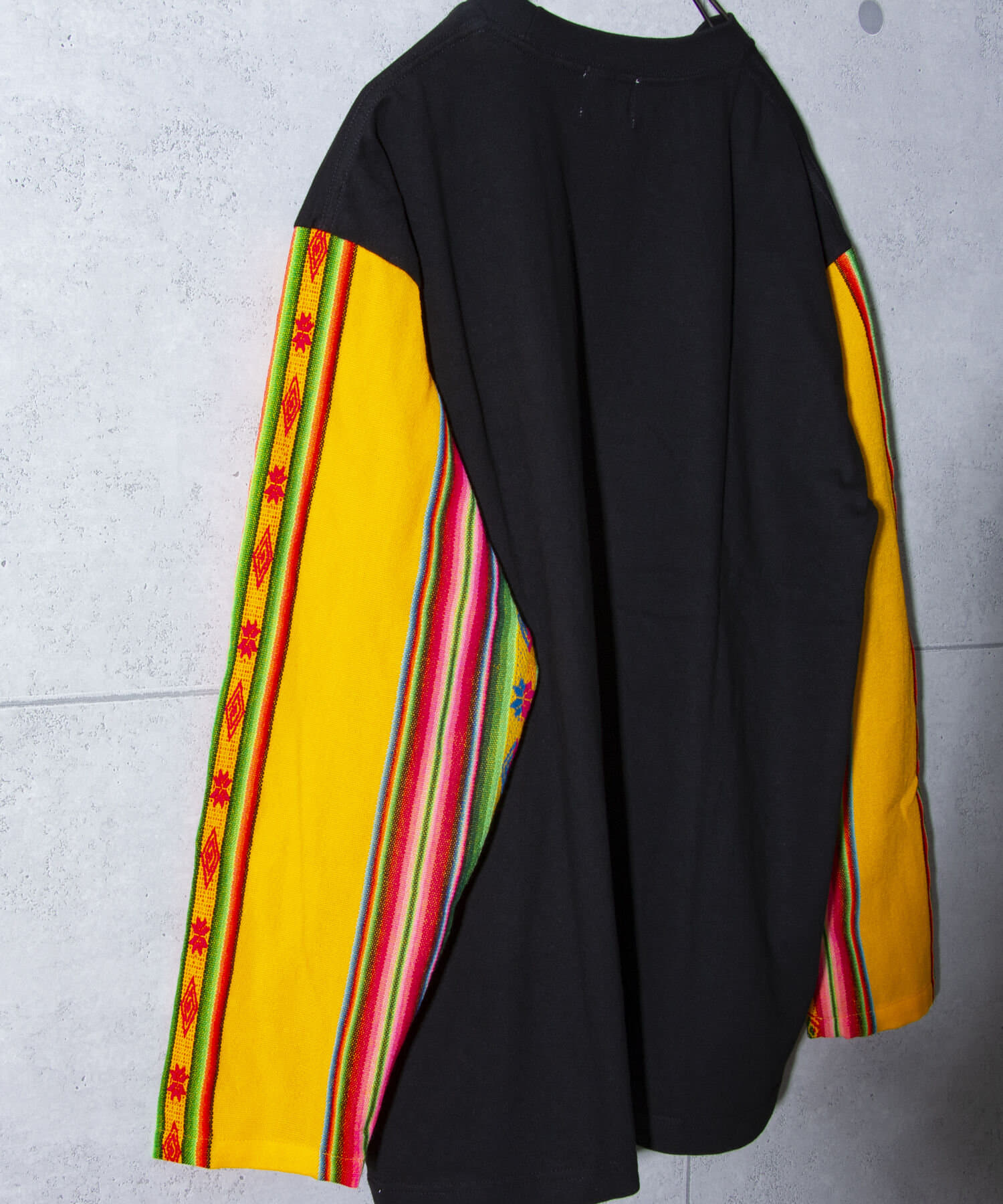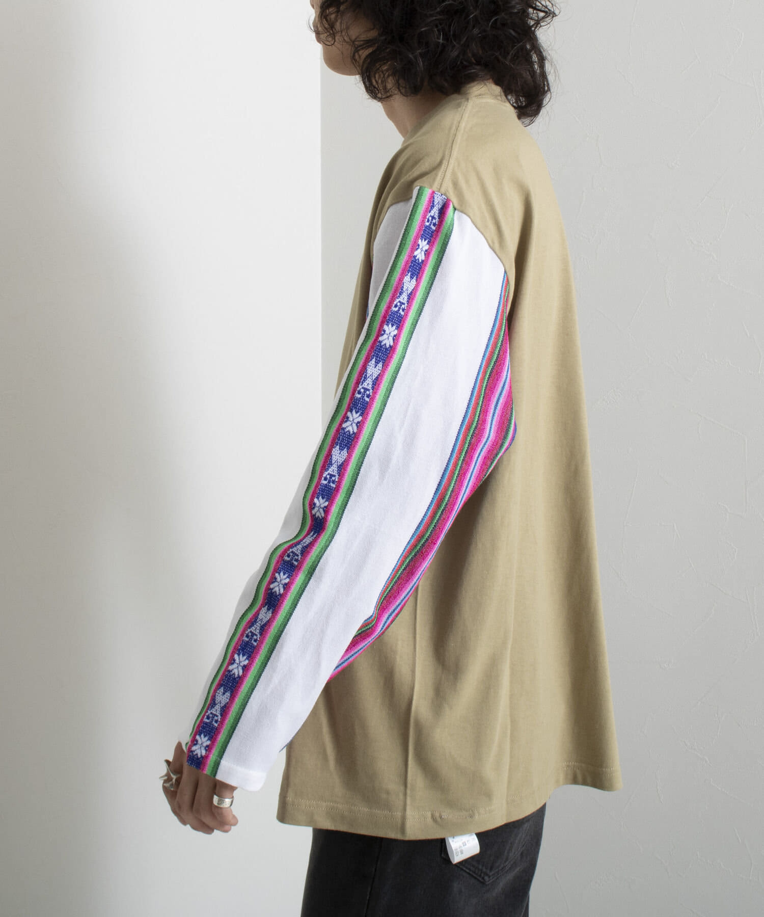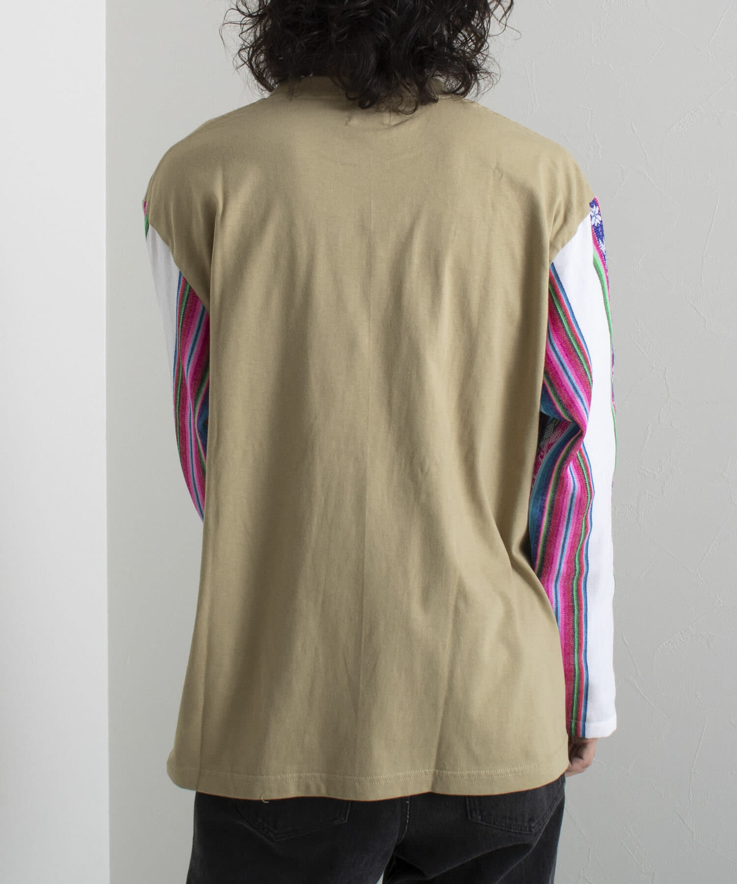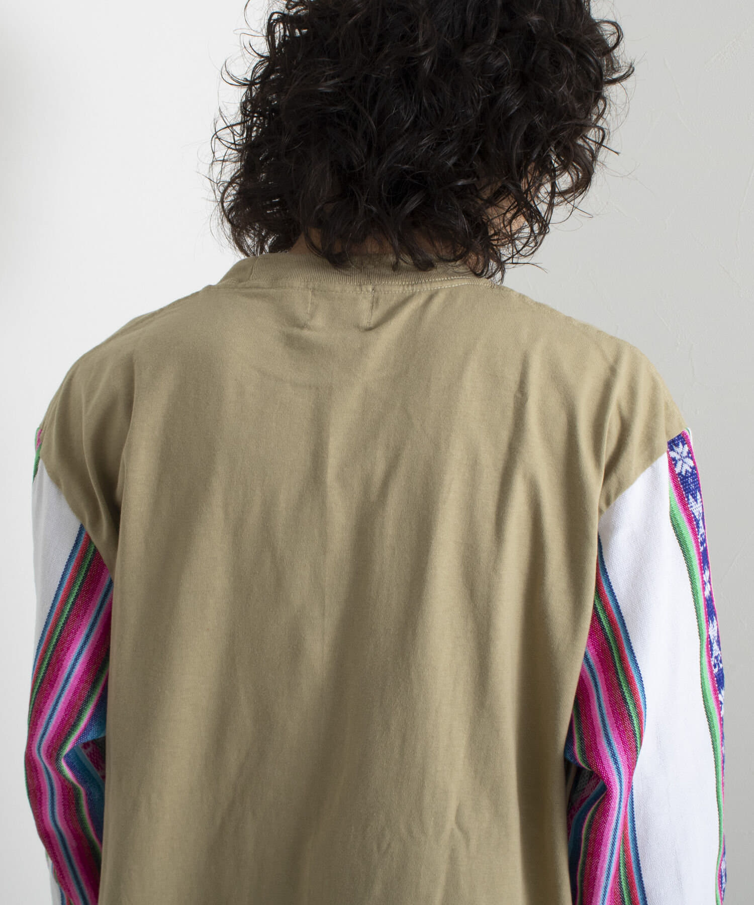 ネイティブ柄のマテリアルを使用した切り替えリメイクロンT。