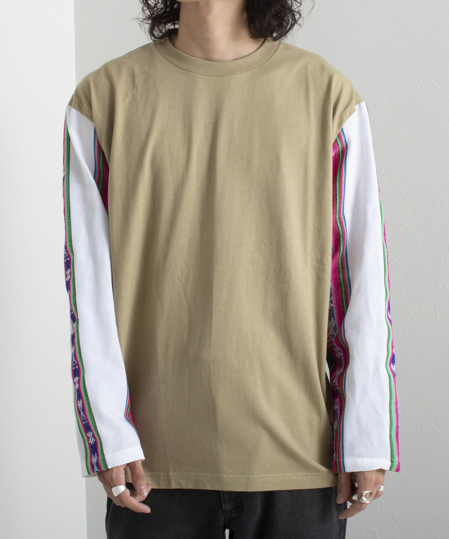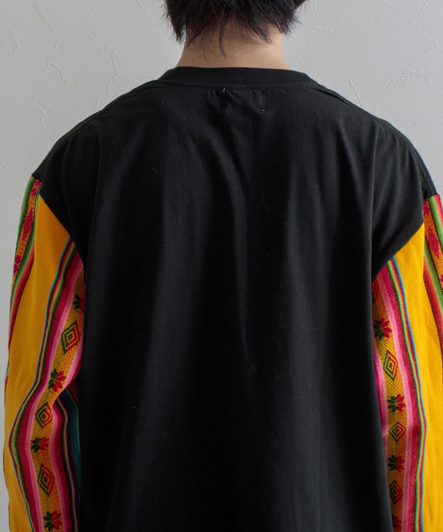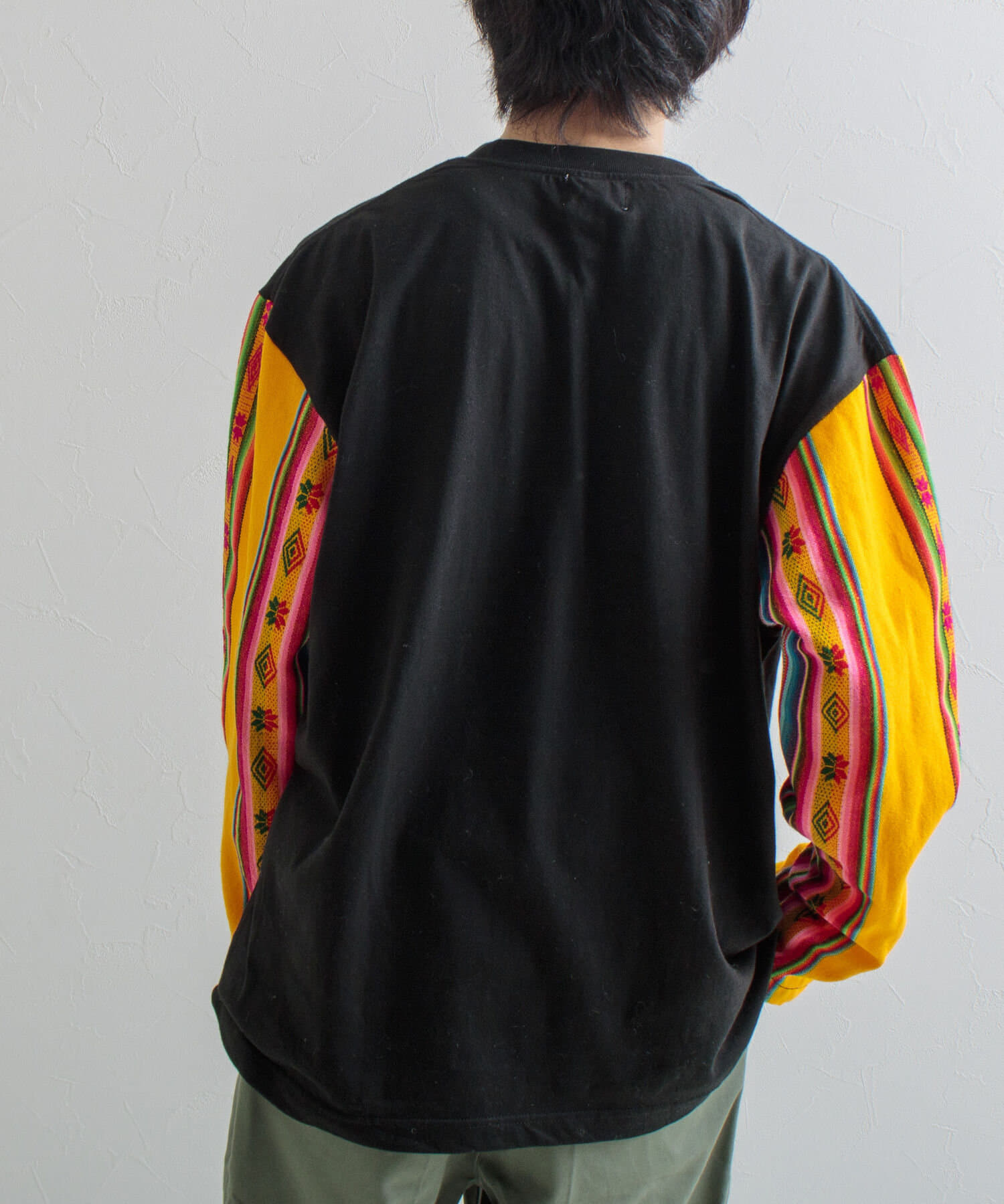 ネイティブ柄のマテリアルを使用した切り替えリメイクロンT。
