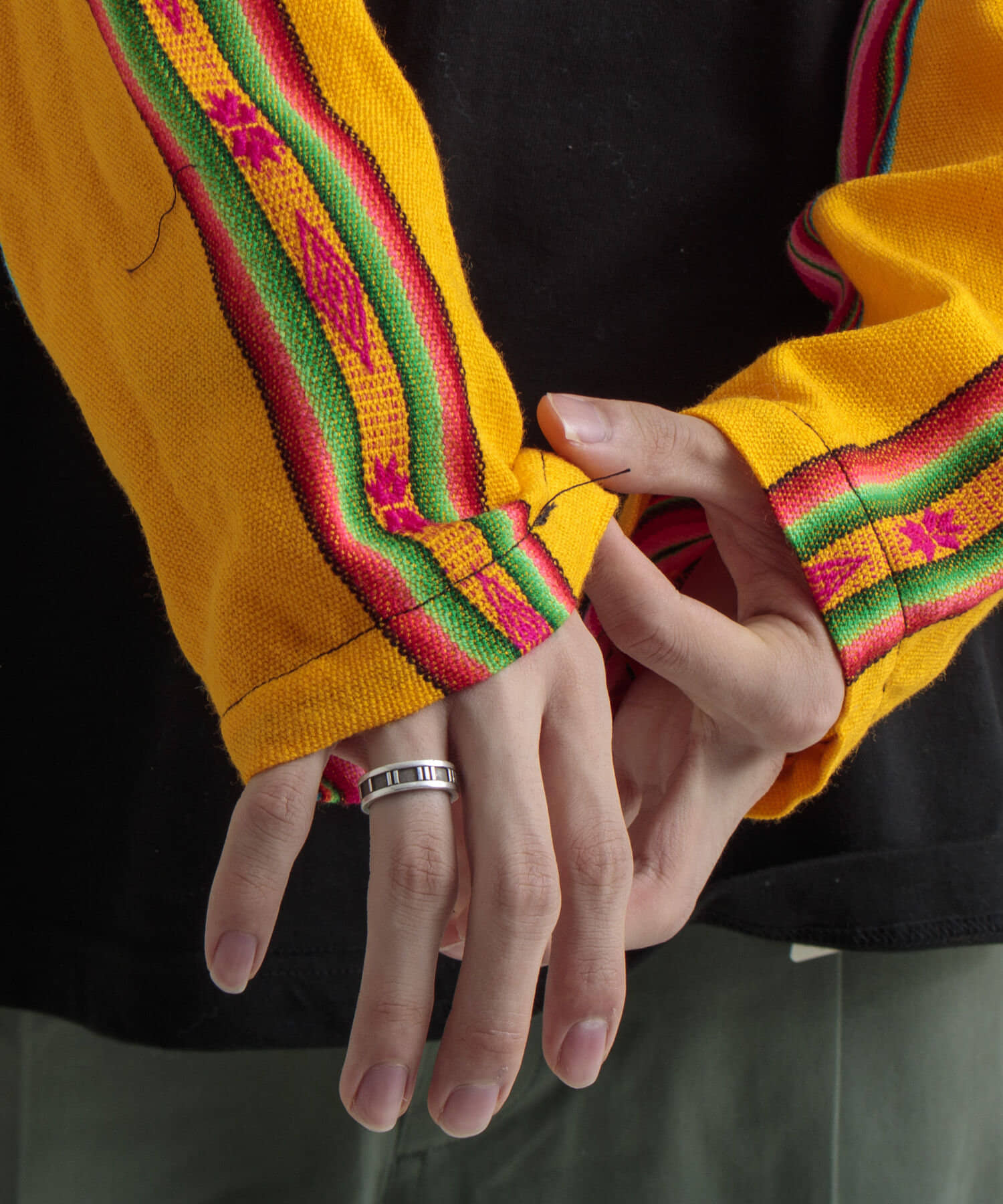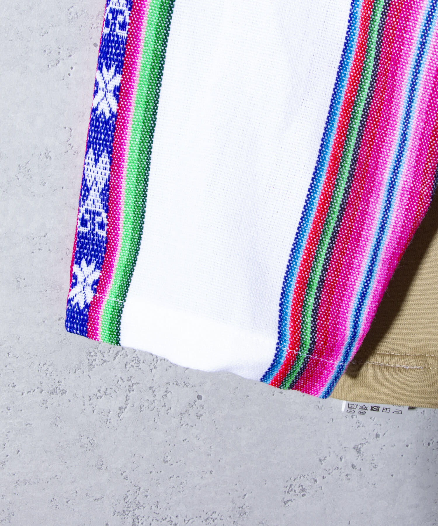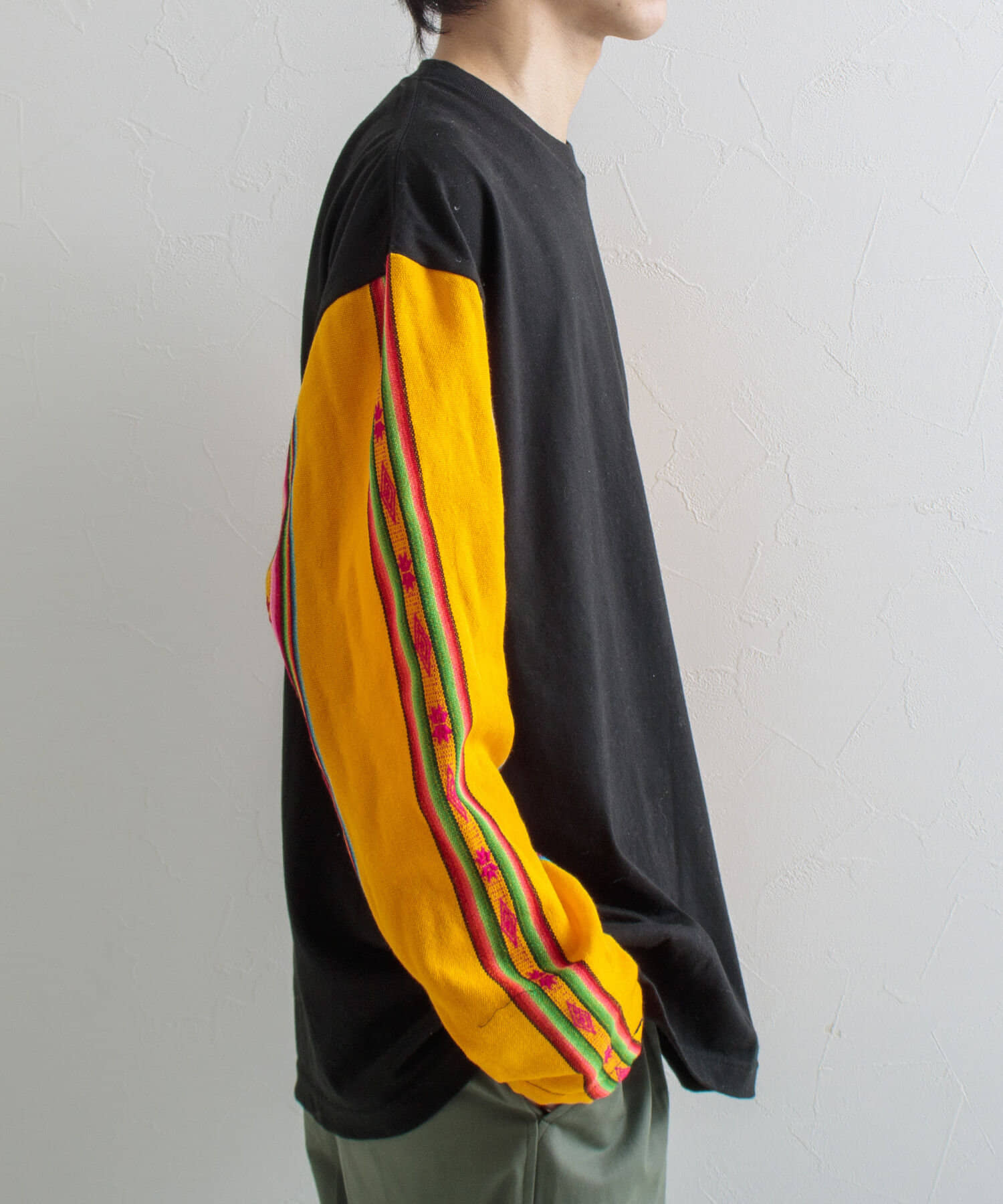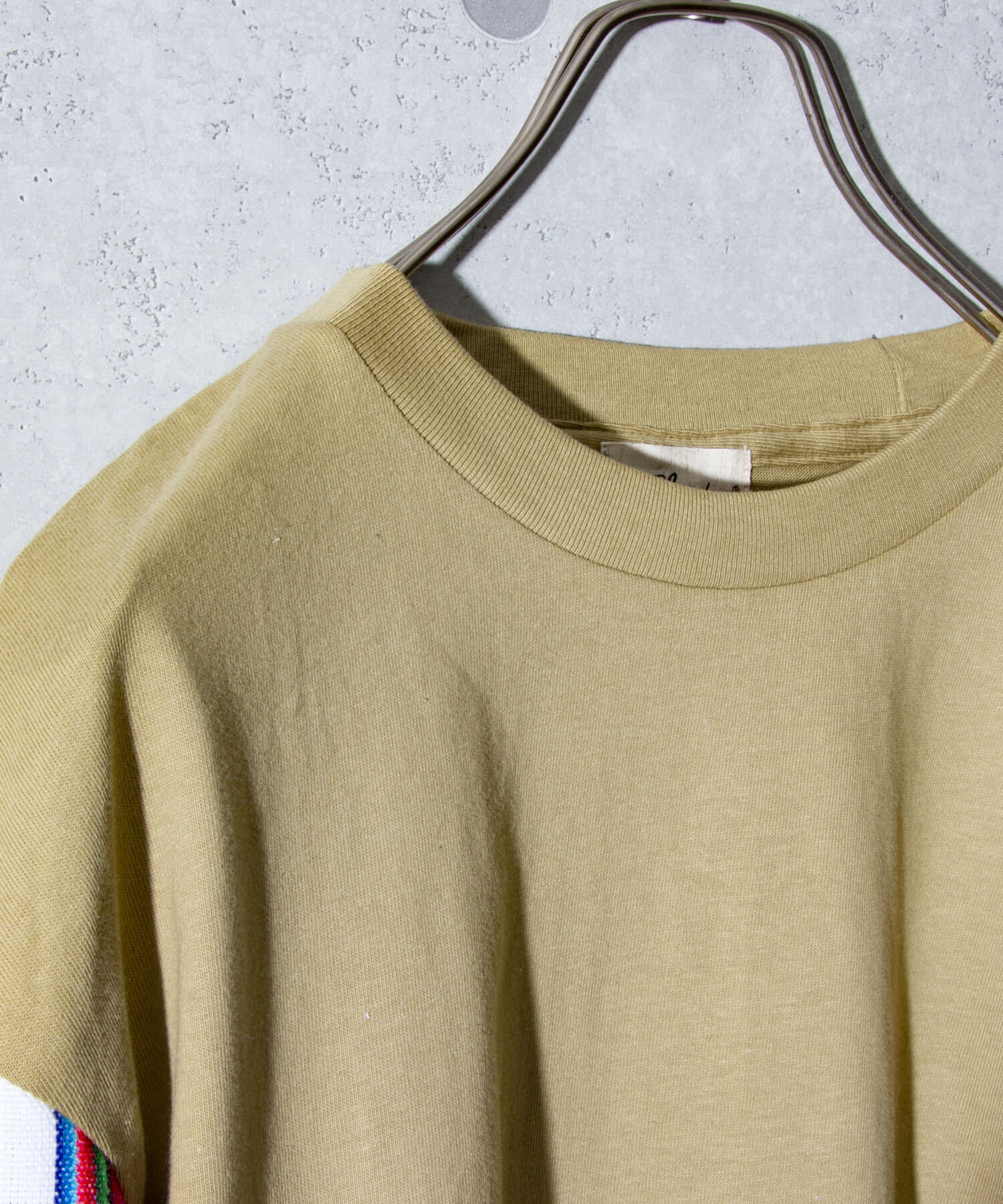 ネイティブ柄のマテリアルを使用した切り替えリメイクロンT。