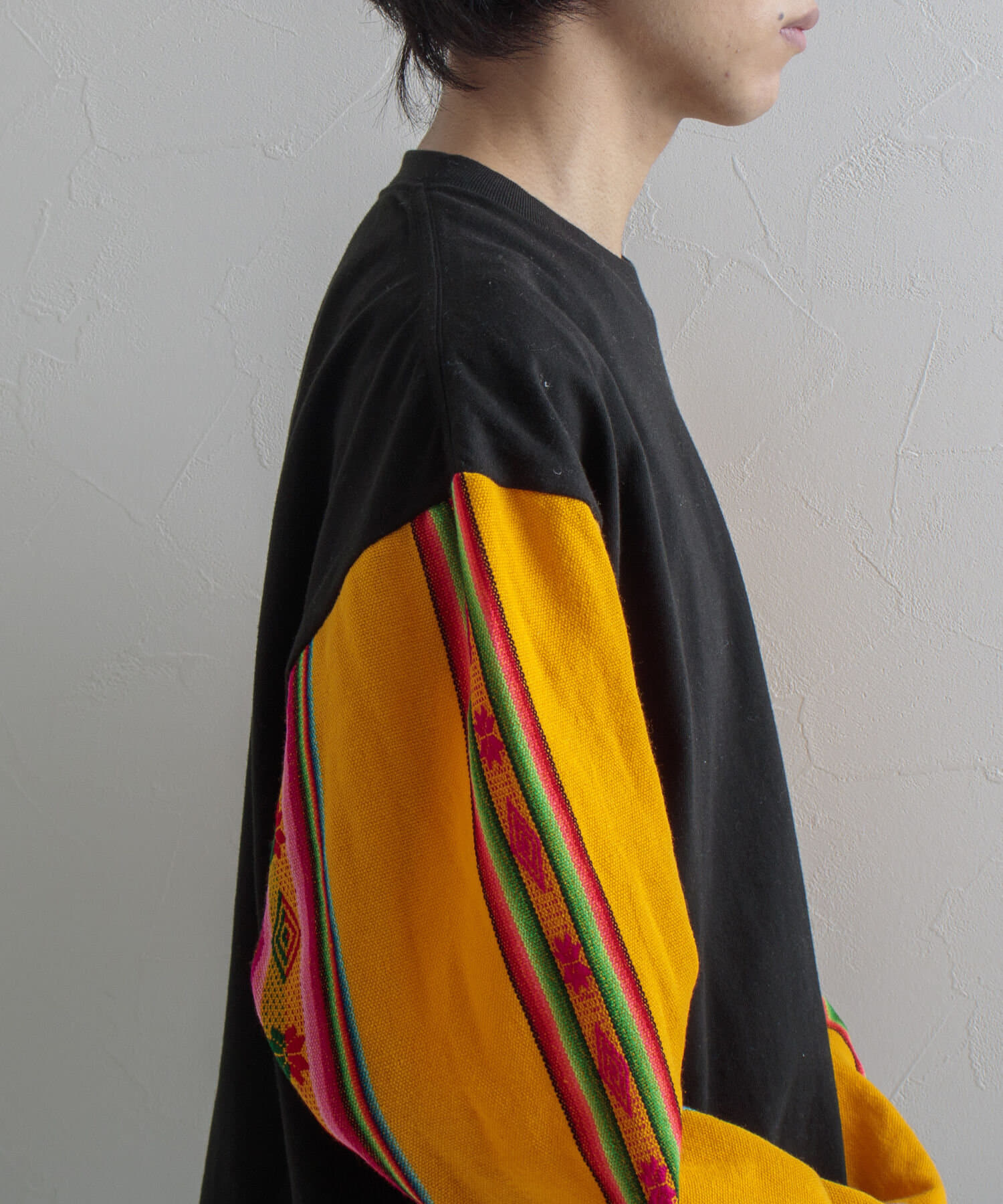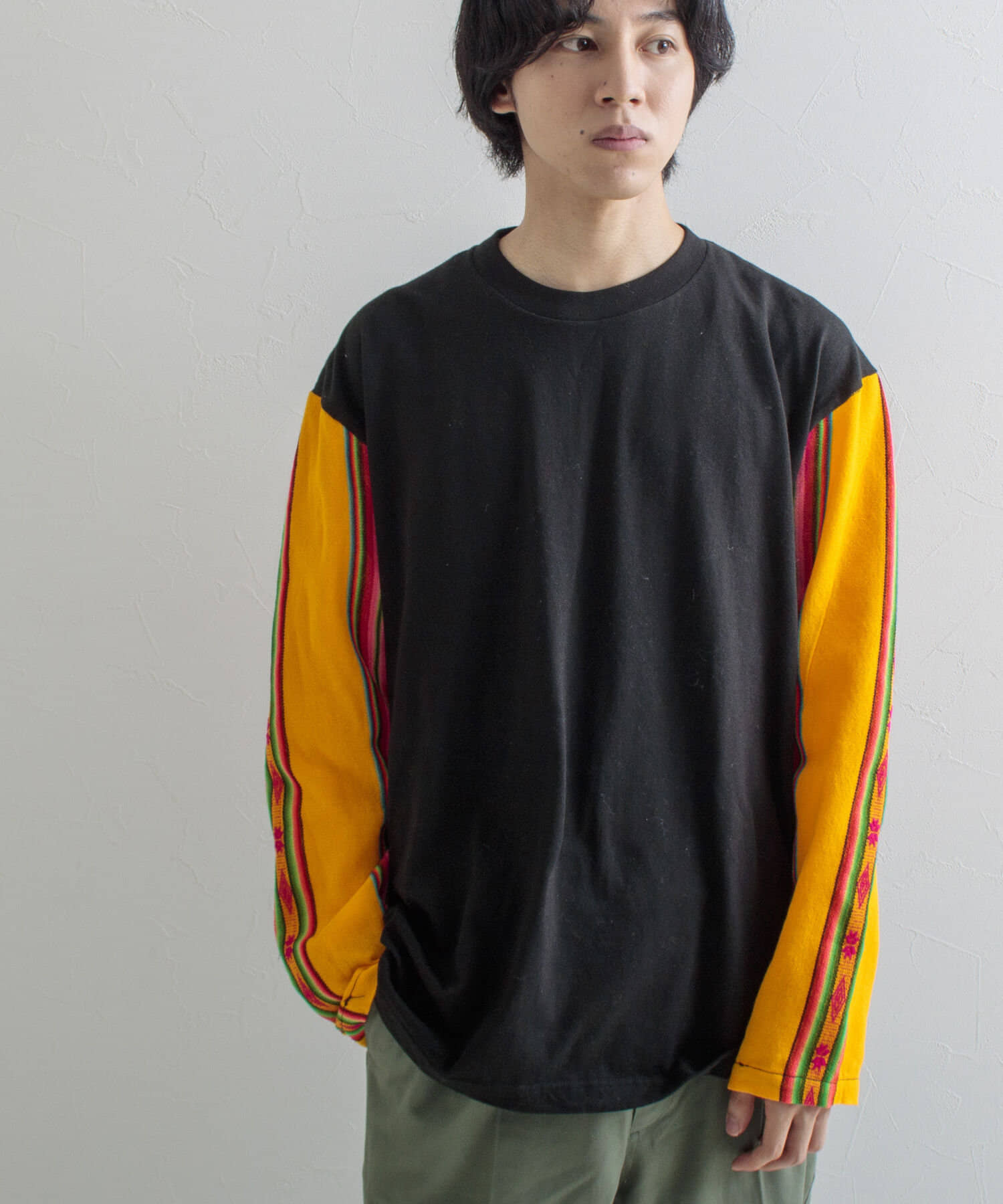 【GLOSTER】リメイク ロンT 袖切り替え ネイティブ柄