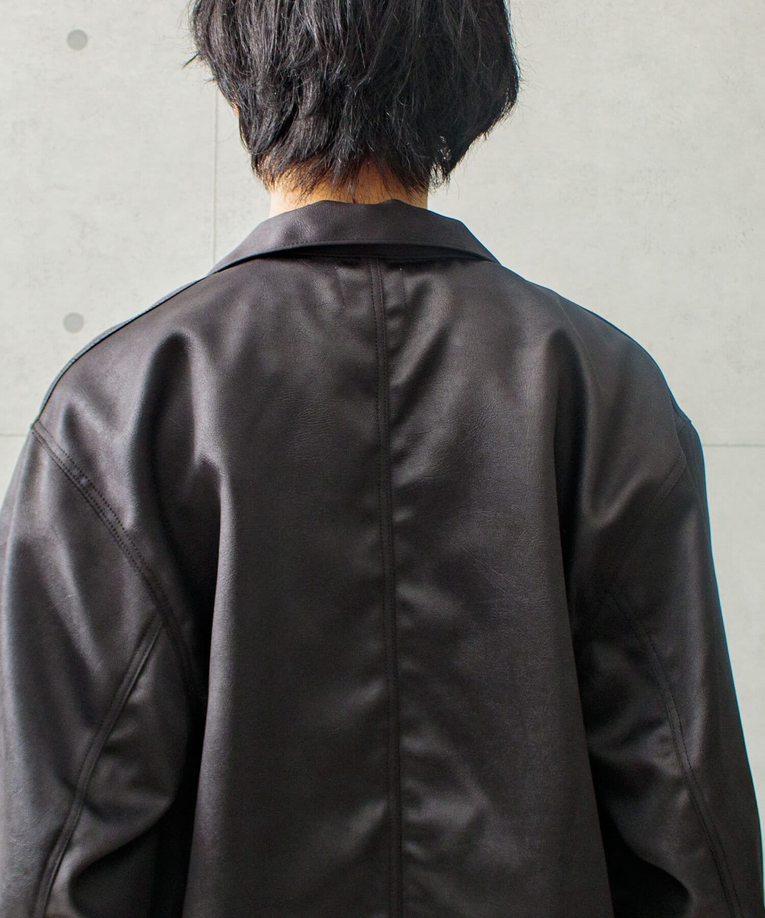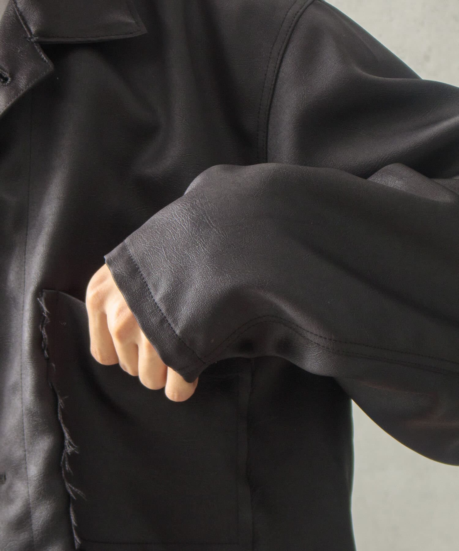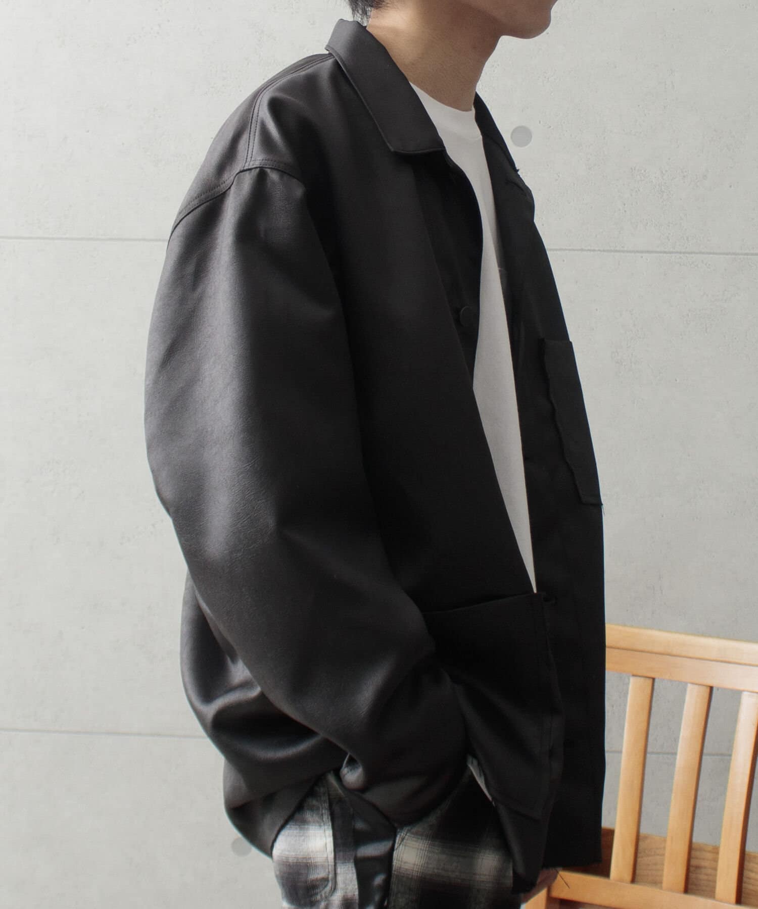 フェイクレザーならではの柔らかさを兼ね備えた素材で、リアルレザー特有の着づらさを感じさせず気楽にサッと羽織りやすいアイテムになっています。