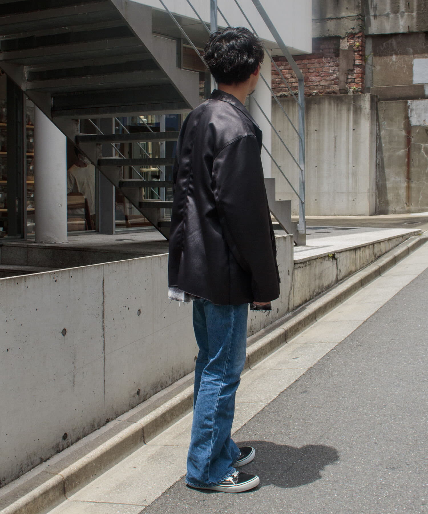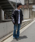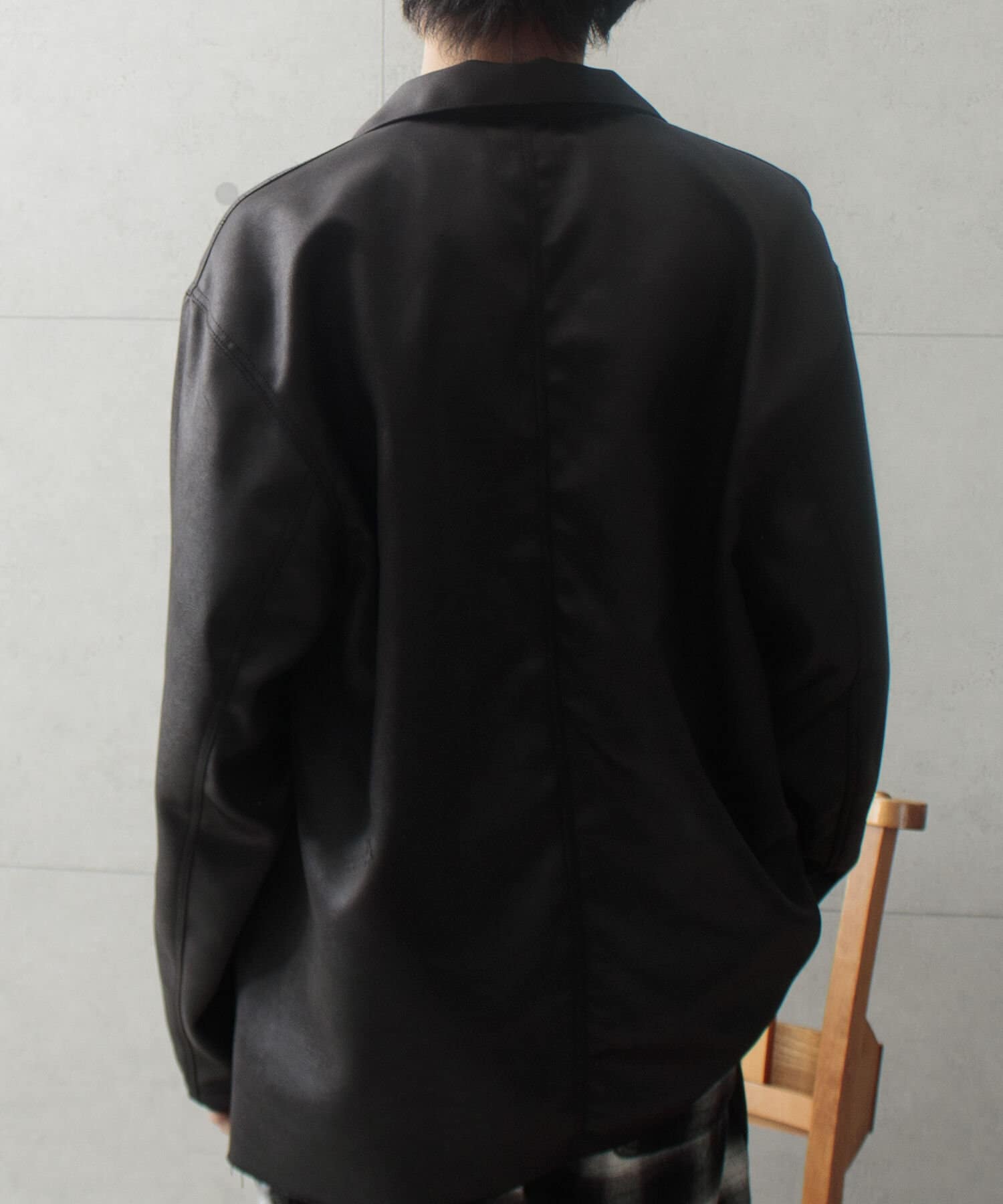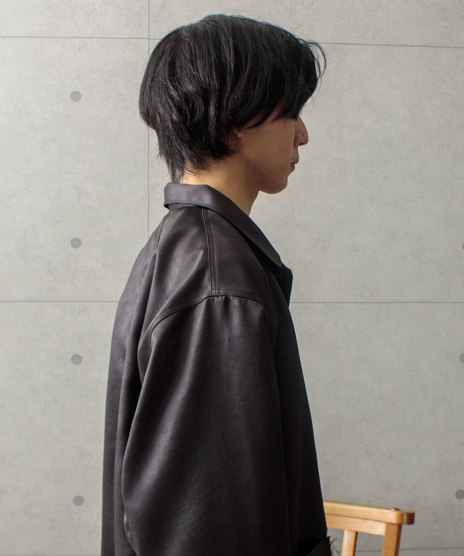 フェイクレザーならではの柔らかさを兼ね備えた素材で、リアルレザー特有の着づらさを感じさせず気楽にサッと羽織りやすいアイテムになっています。