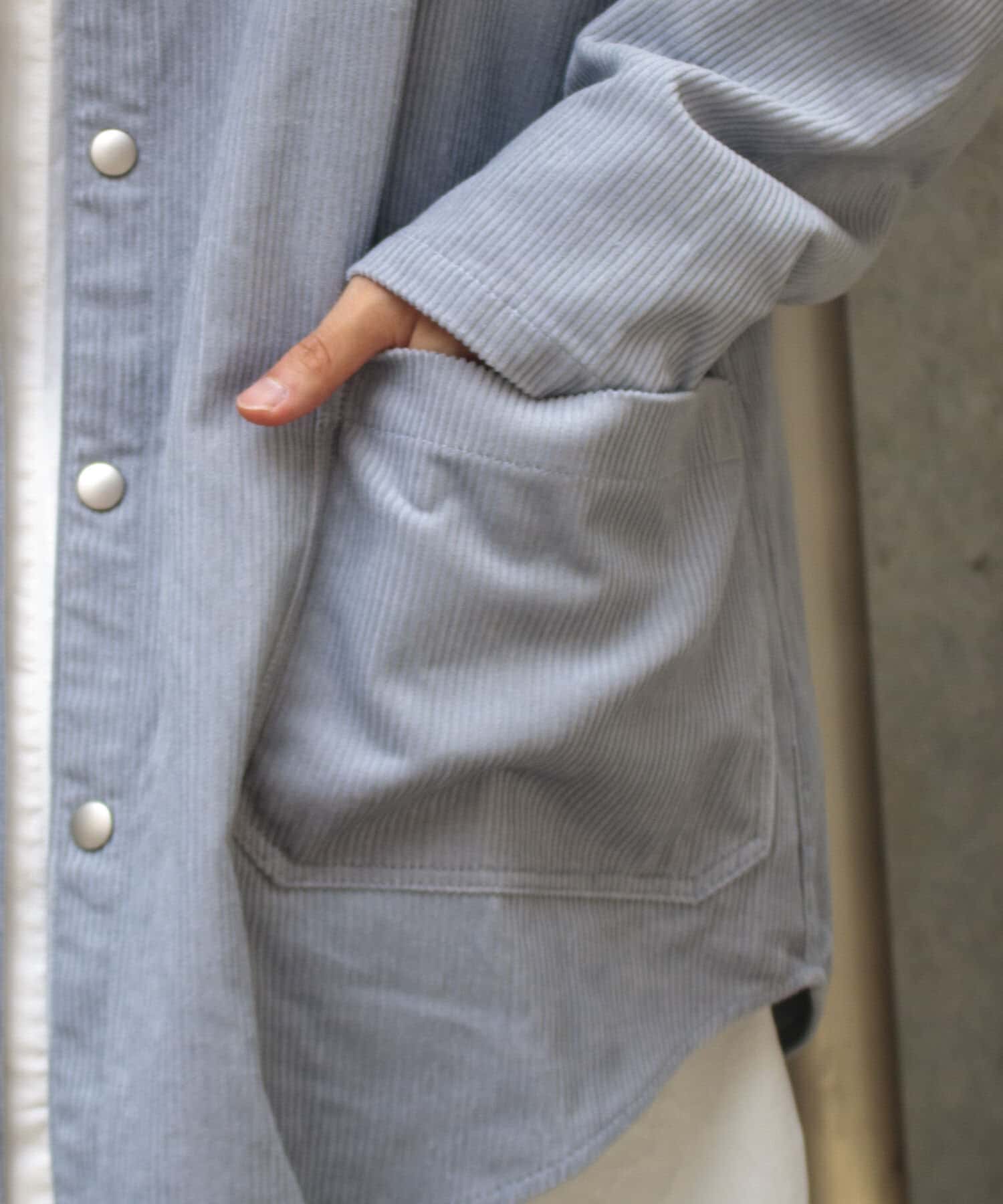 フロントに2ポケット付きのコーデュロイシャツカバーオール。