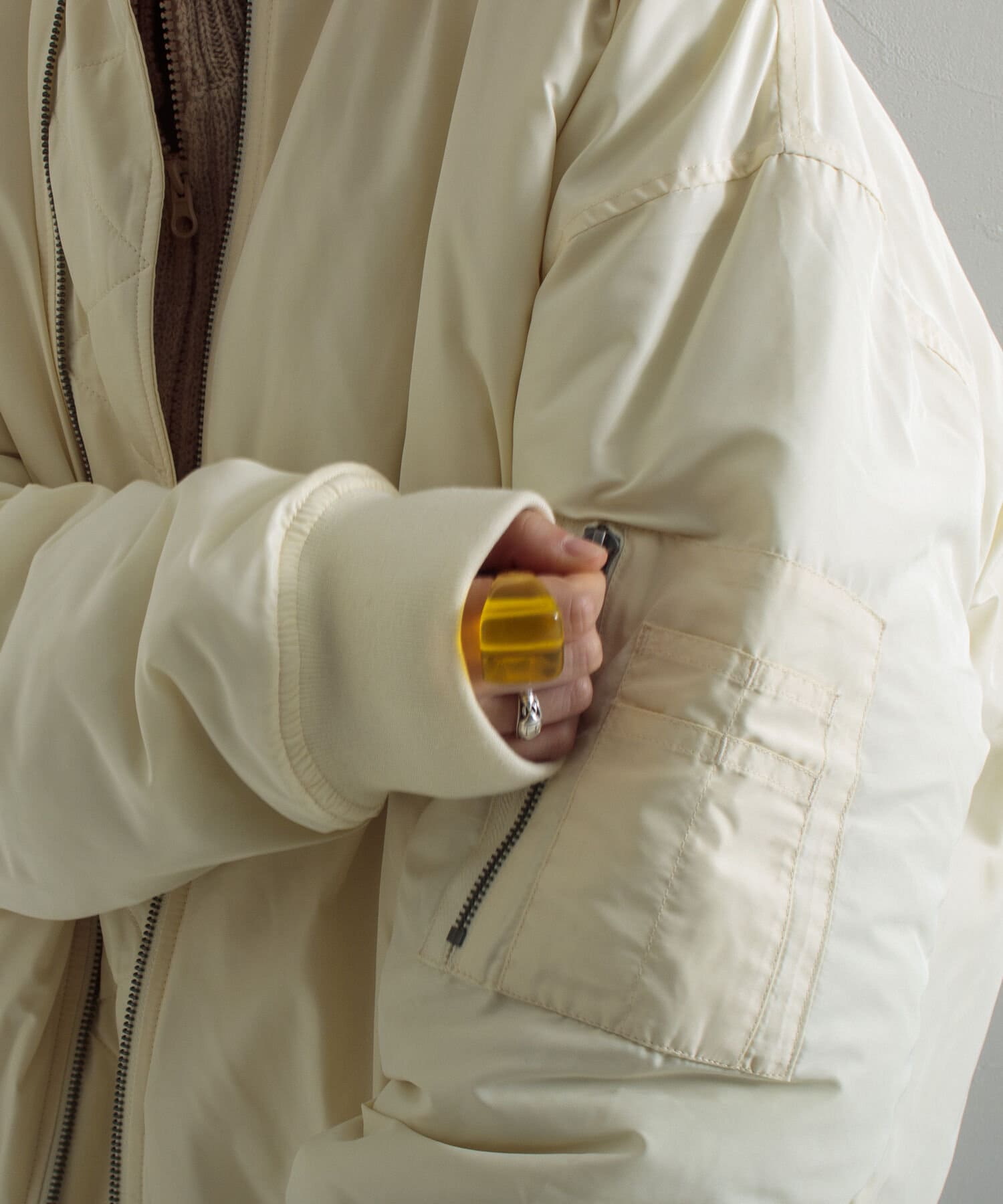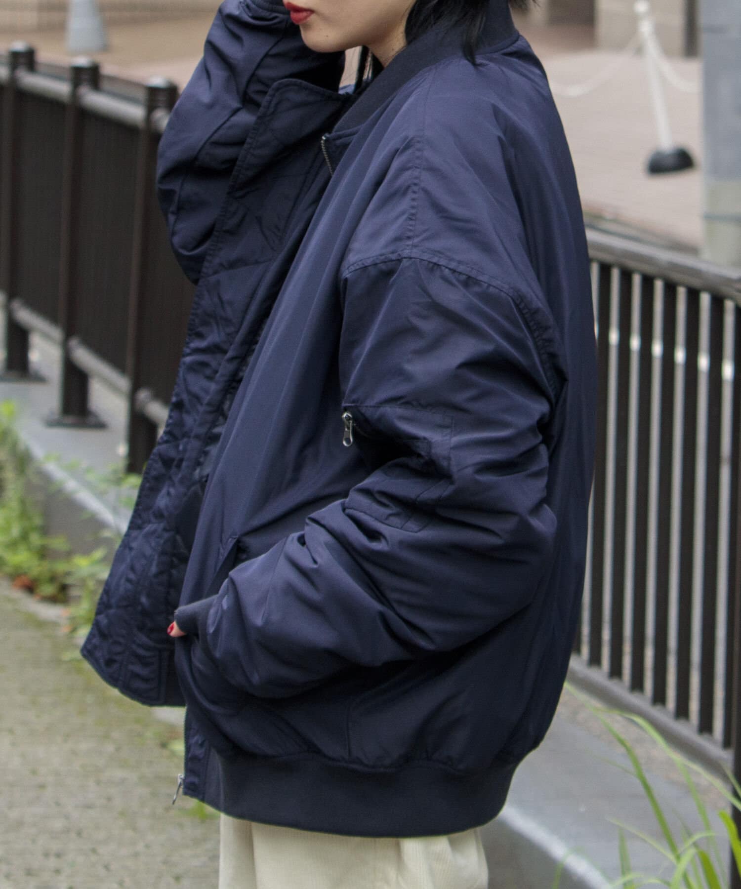 これからの季節にぴったりな中綿入りで保温性のあるMA-1。
