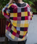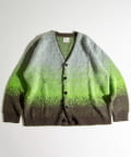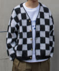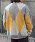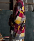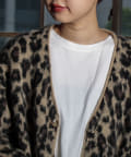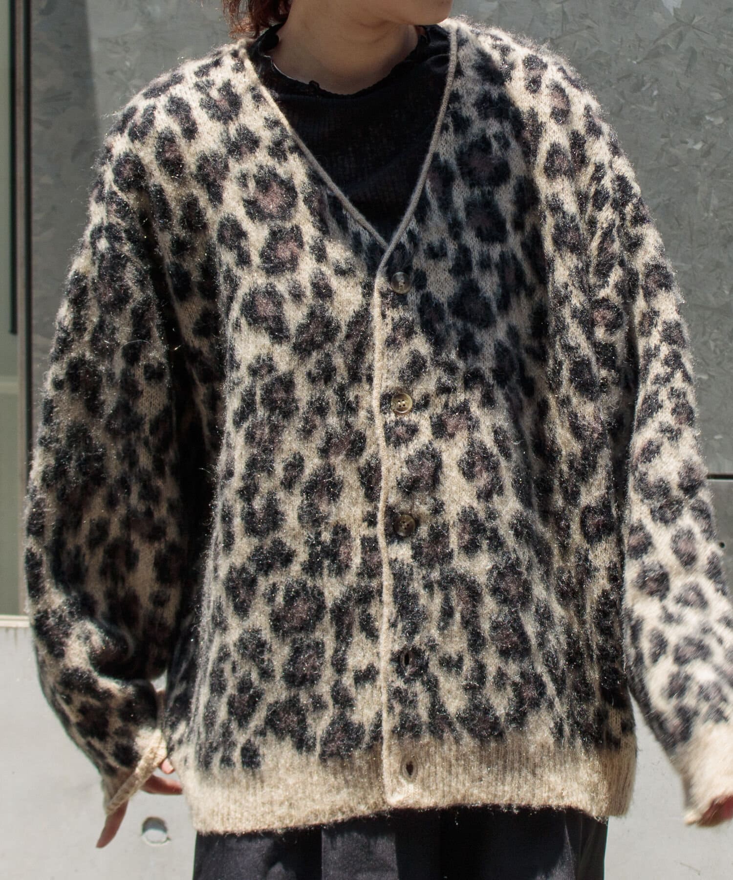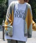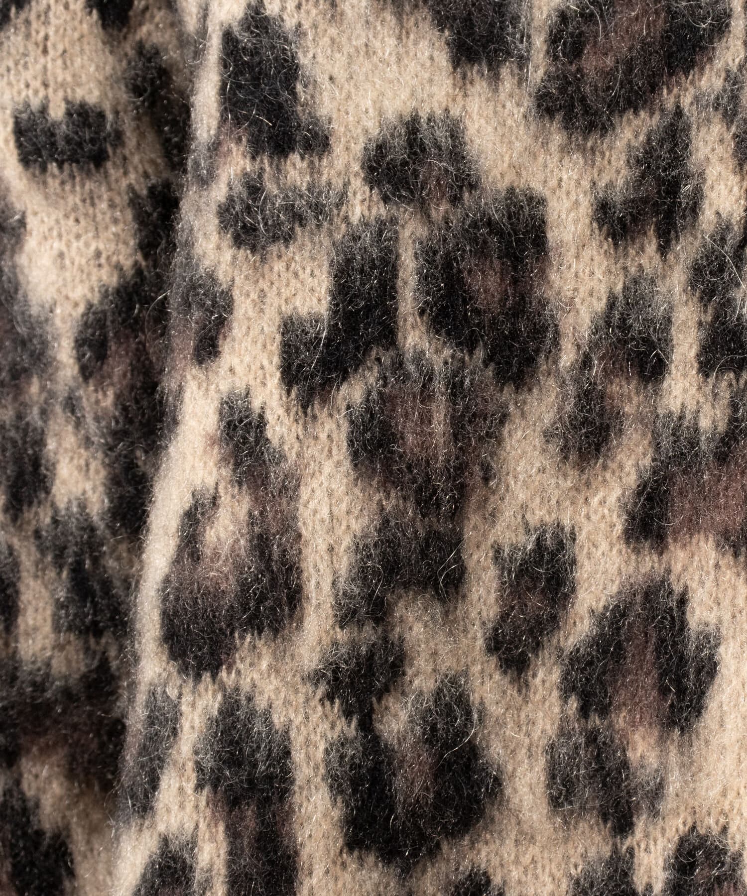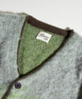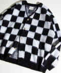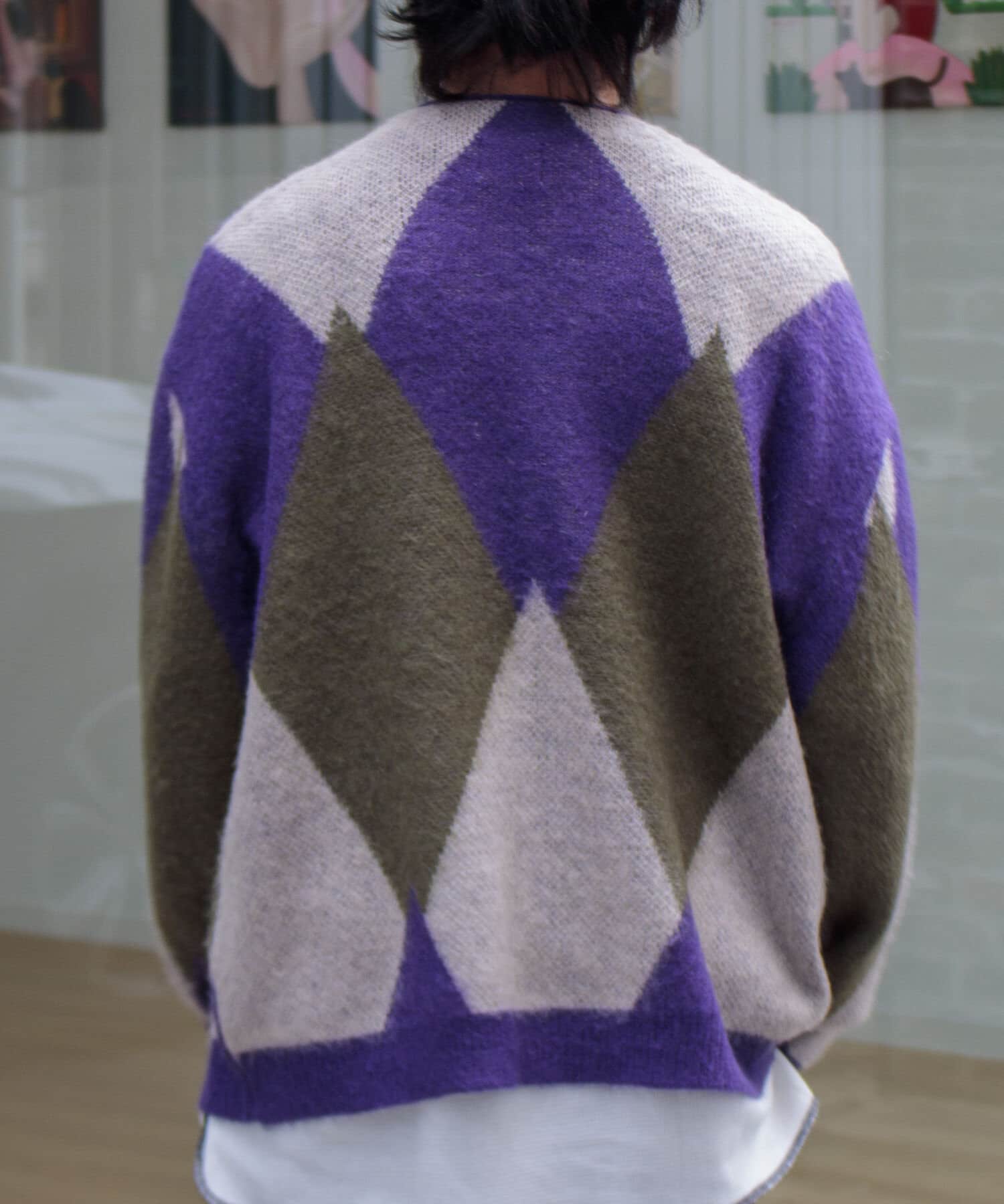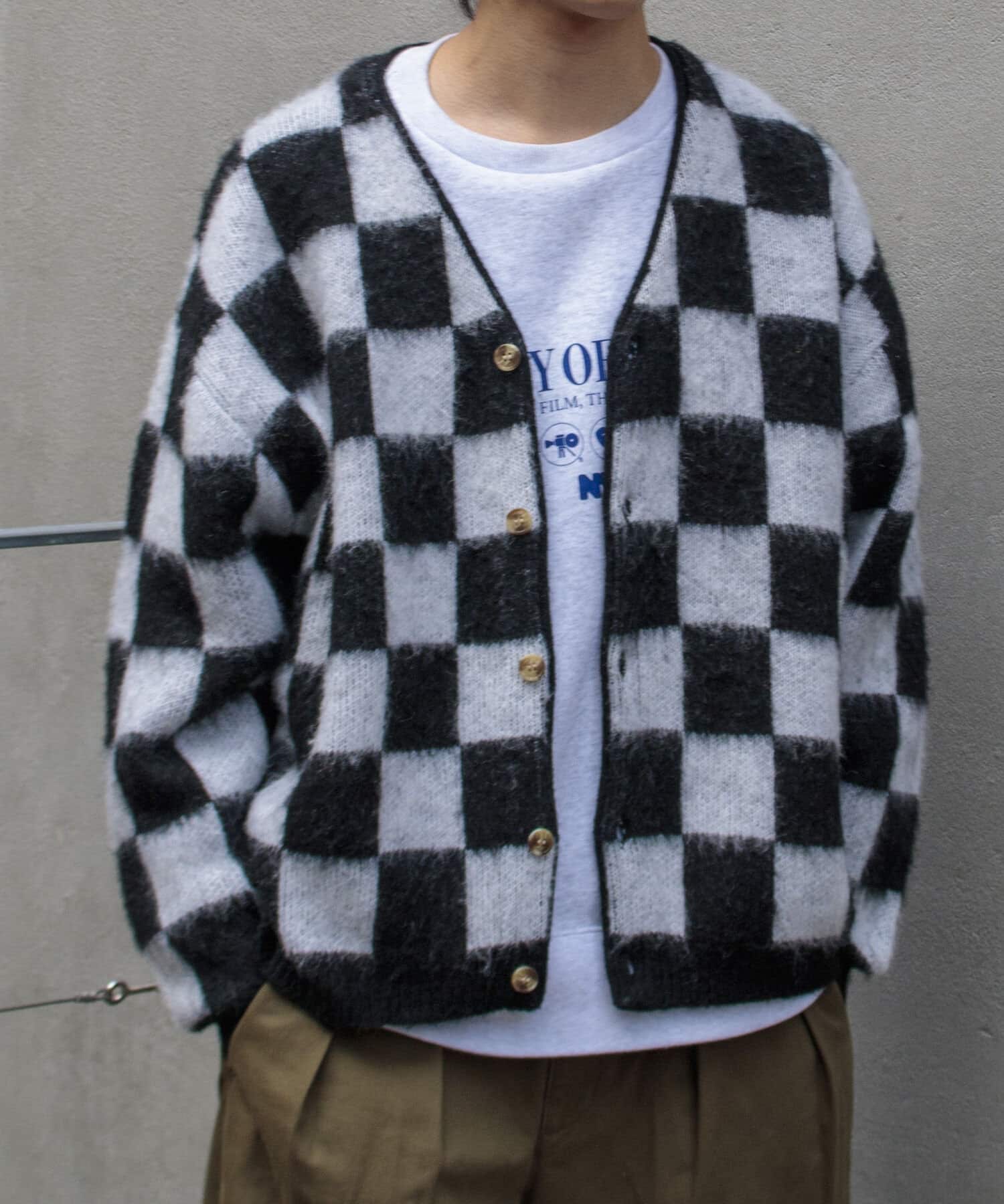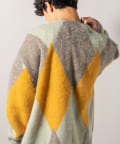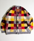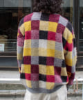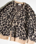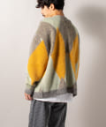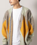 毛足の長いモヘア混カーデにインパクト大な柄をのせた1枚!
