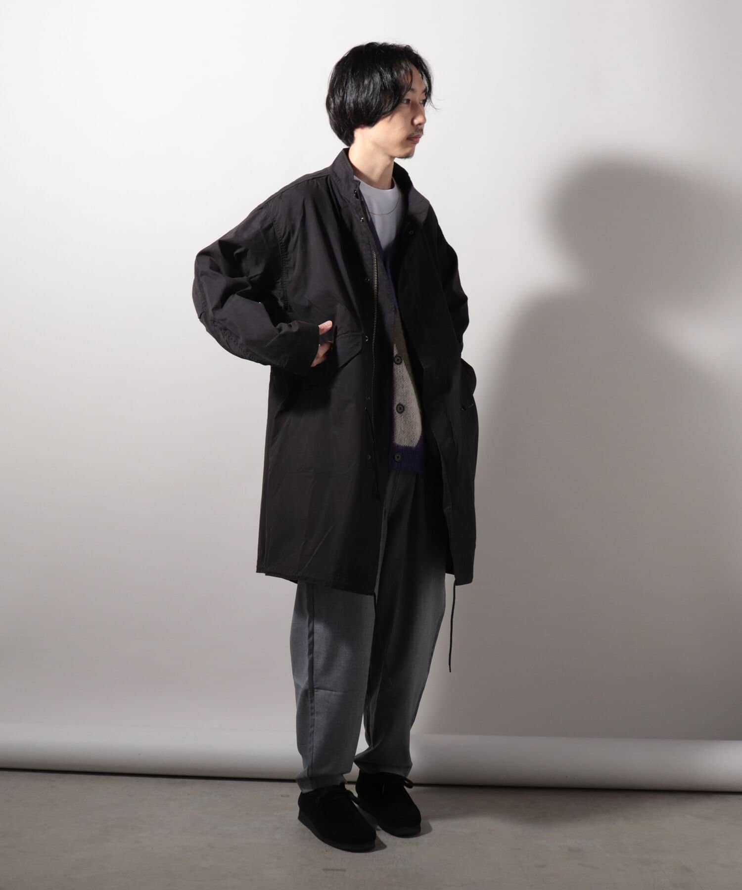 中肉の生地感で保温性も高いので、インナーにパーカーを入れたり、着こなし方で長い期間着用いただけます。
