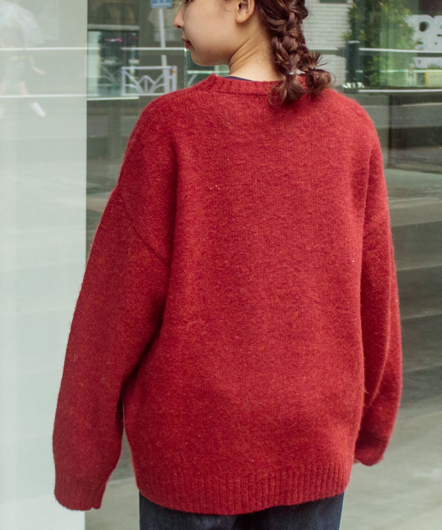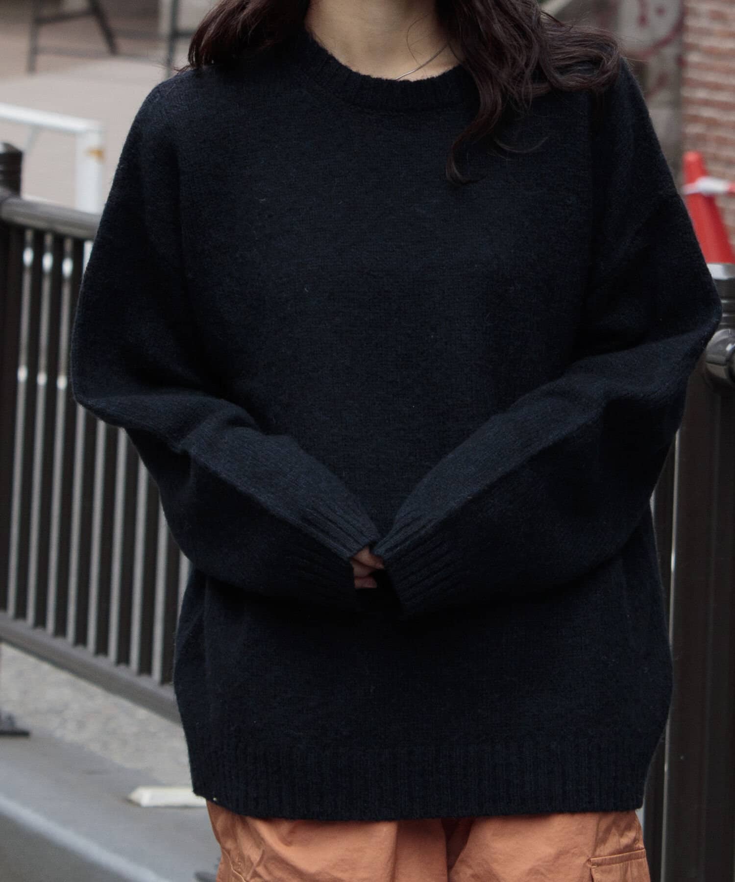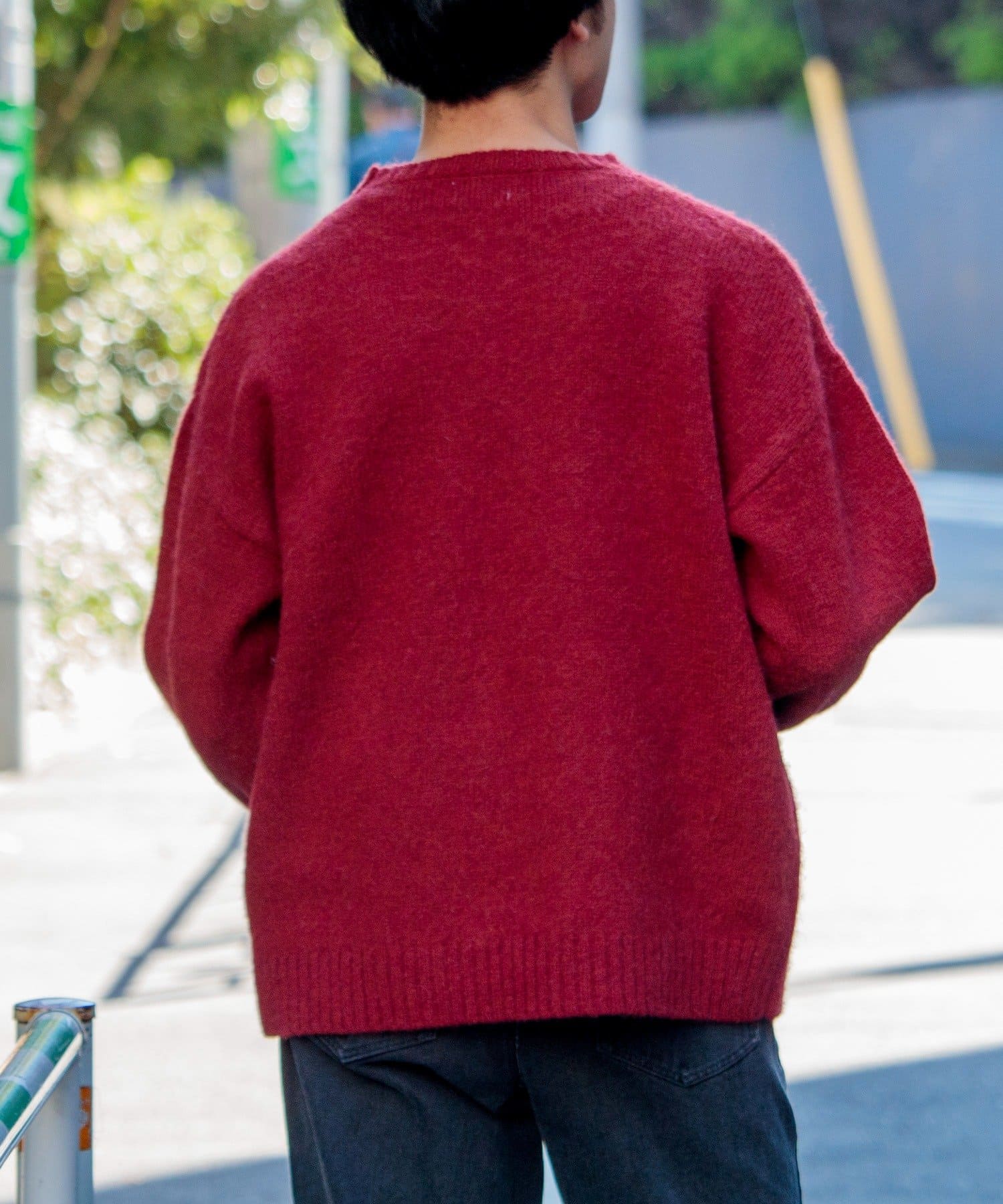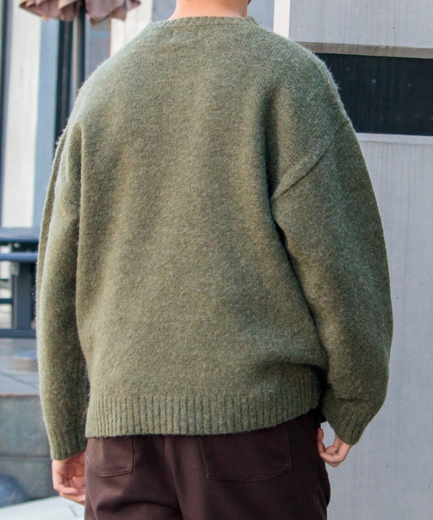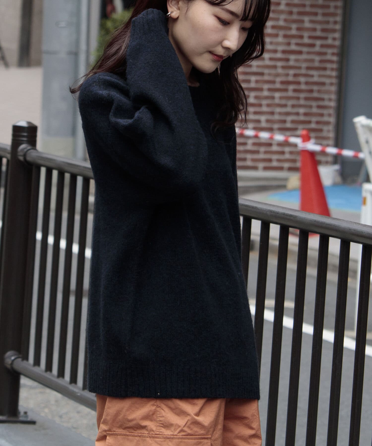 ウール高混率の糸を贅沢に使用し、ムク犬のようなふわふわの起毛加工を施したビッグシルエットのニットプルオーバー。