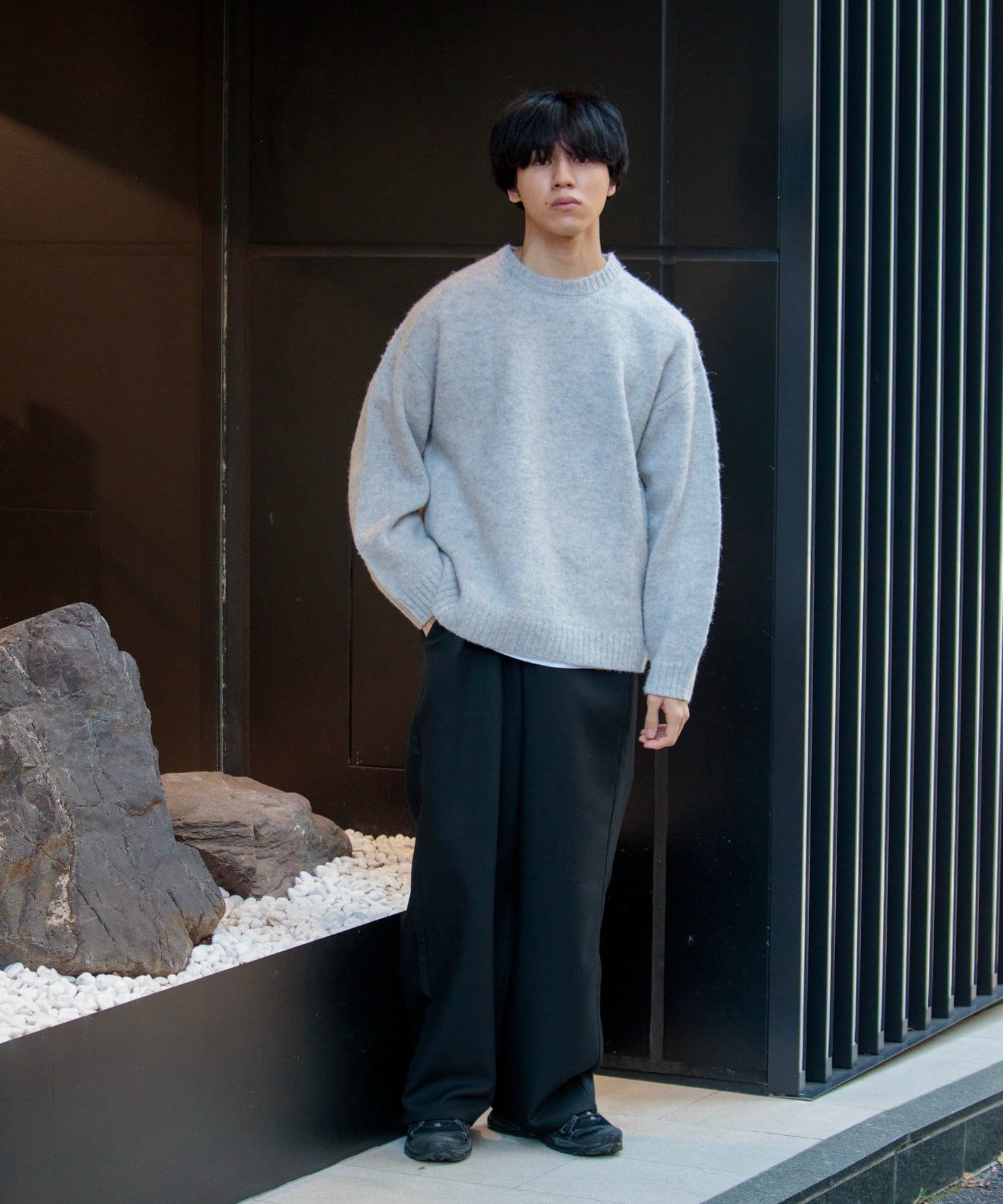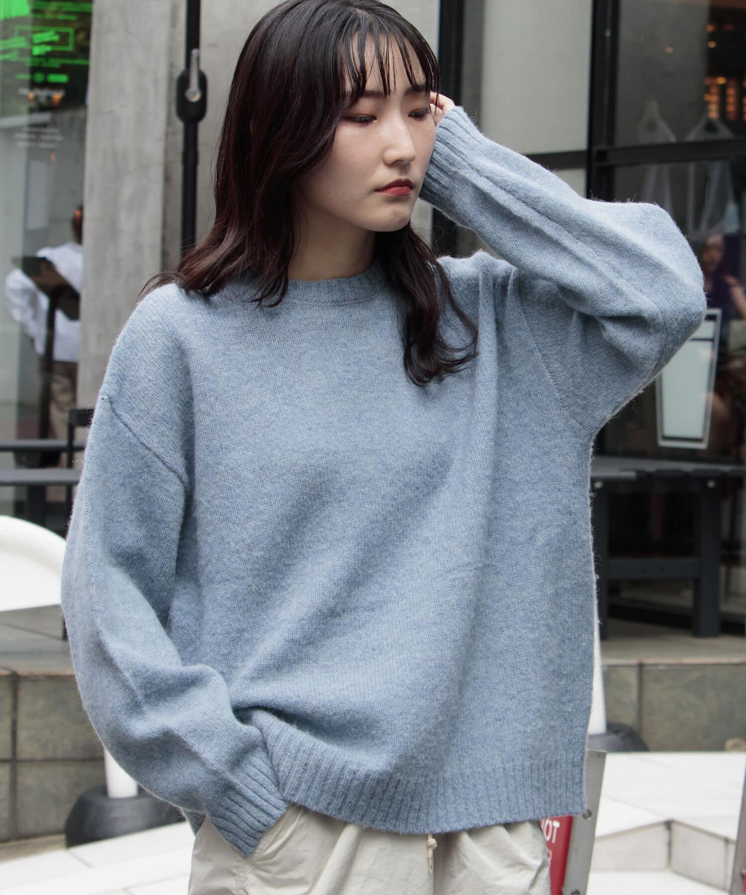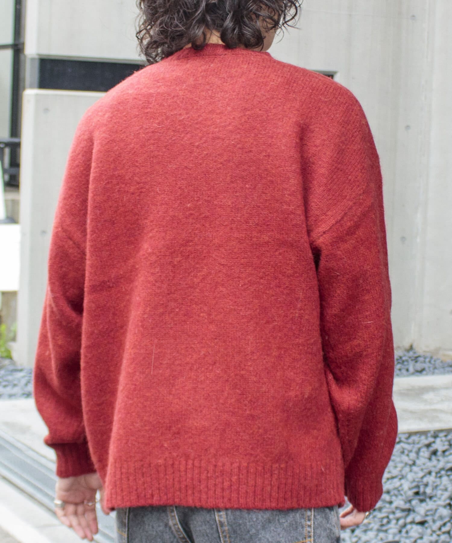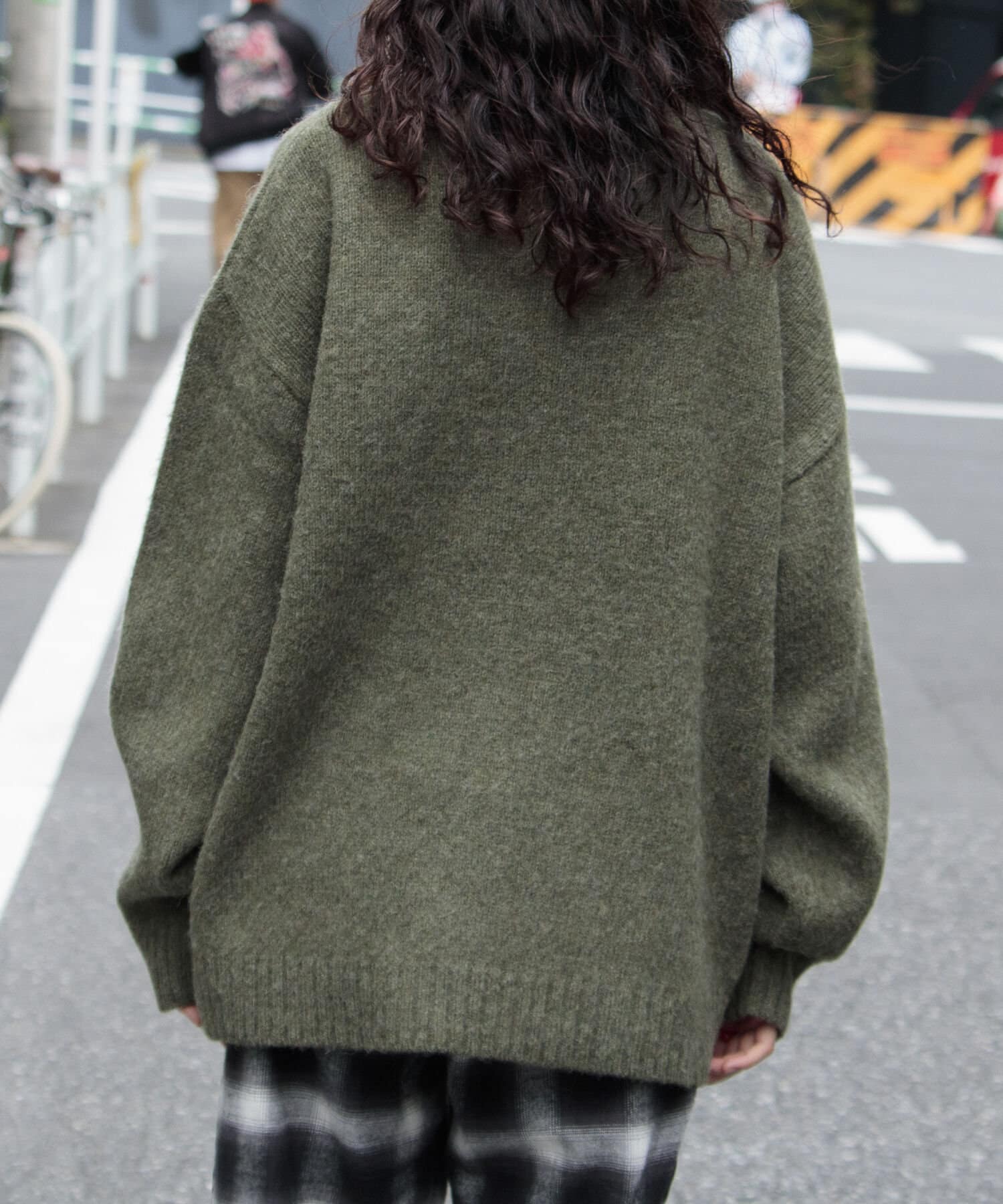 ウール高混率の糸を贅沢に使用し、ムク犬のようなふわふわの起毛加工を施したビッグシルエットのニットプルオーバー。