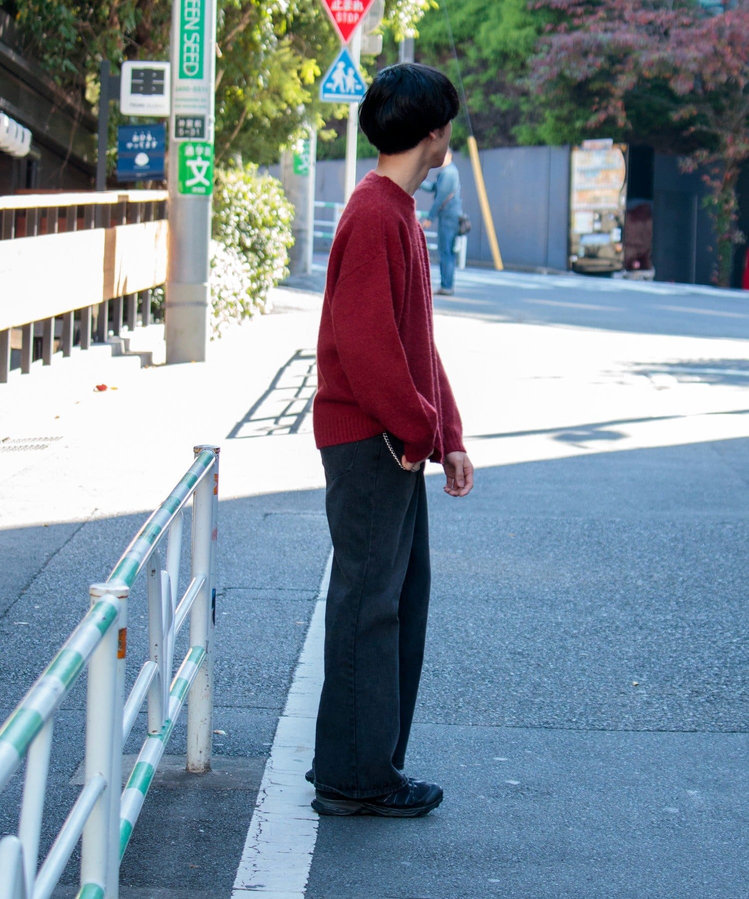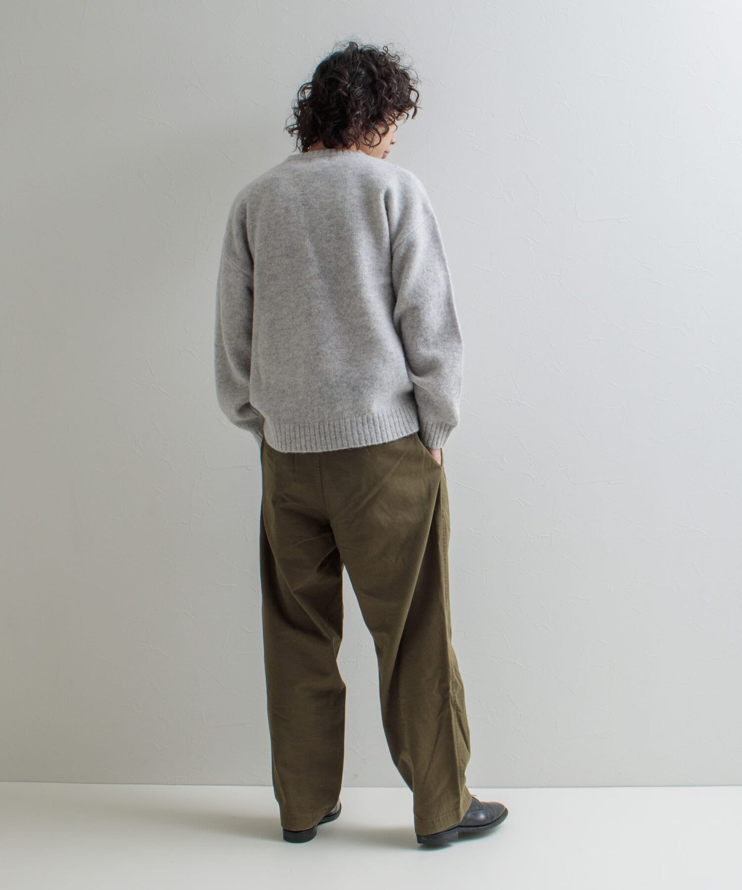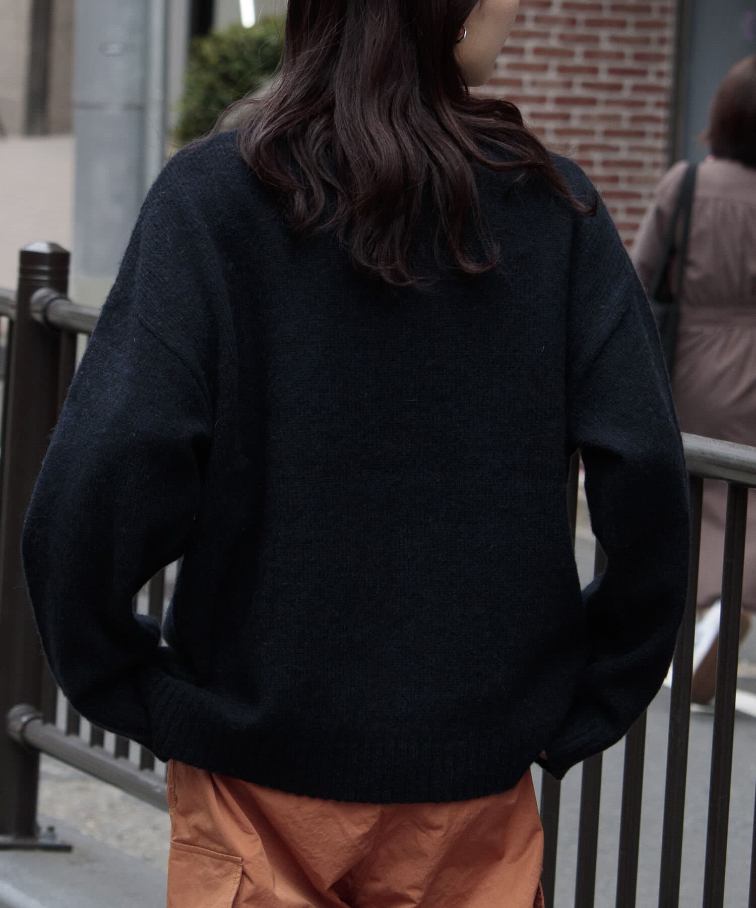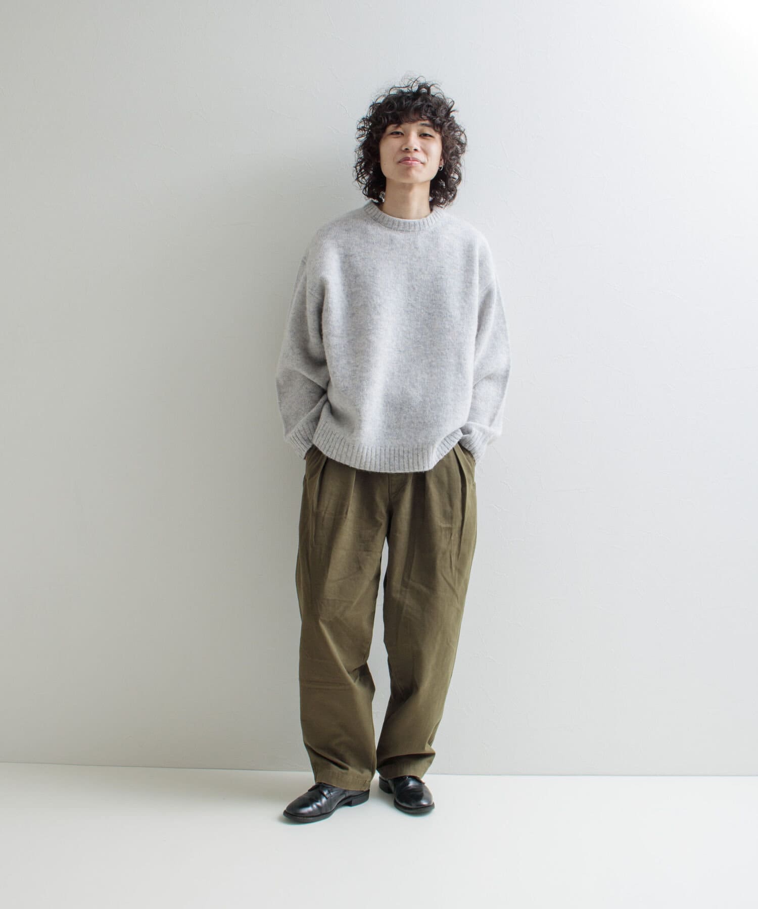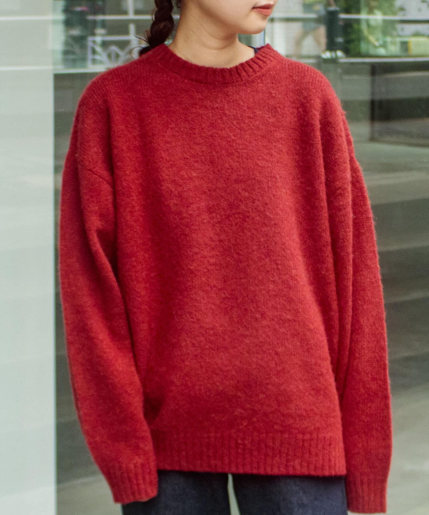 ウール高混率の糸を贅沢に使用し、ムク犬のようなふわふわの起毛加工を施したビッグシルエットのニットプルオーバー。