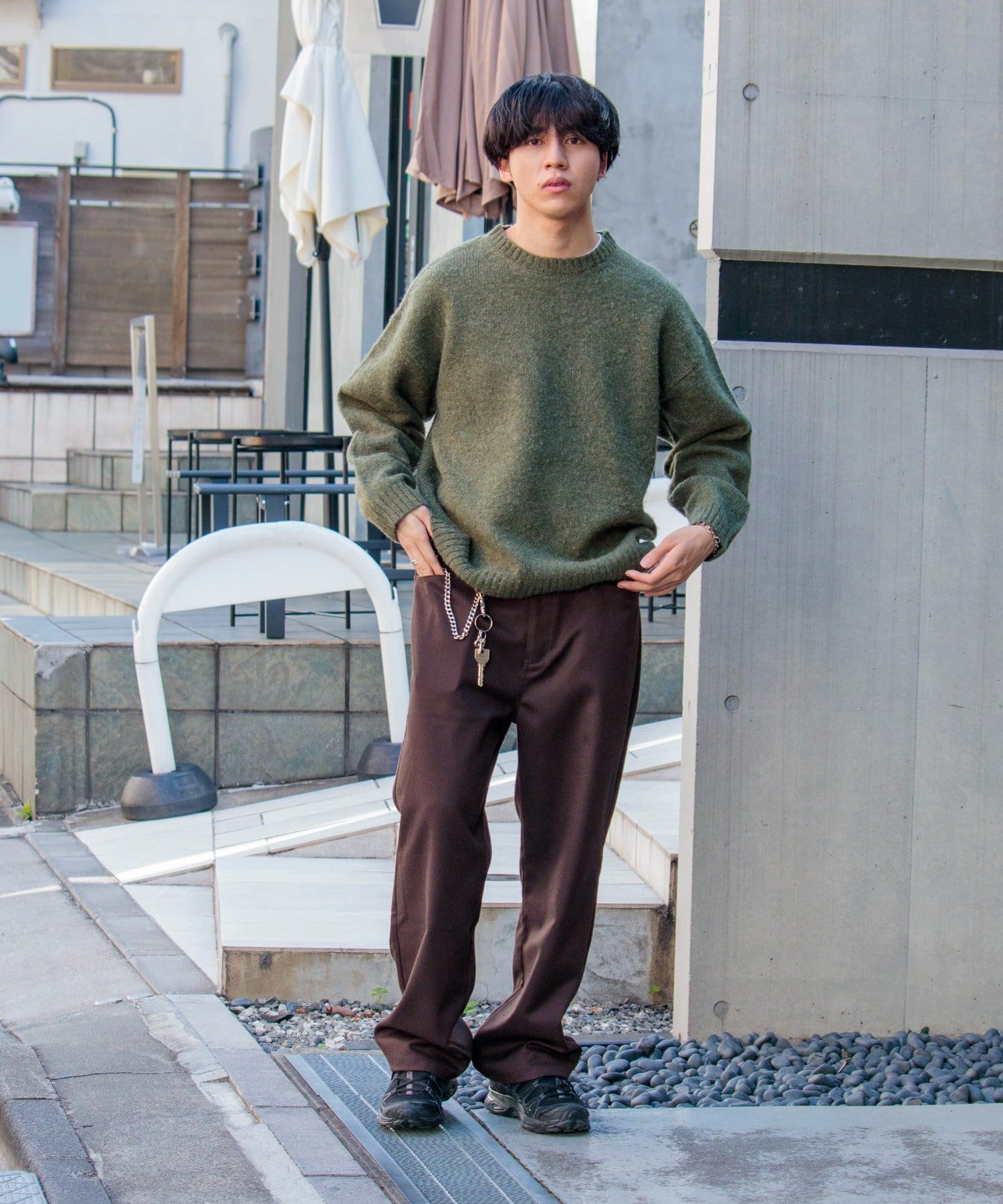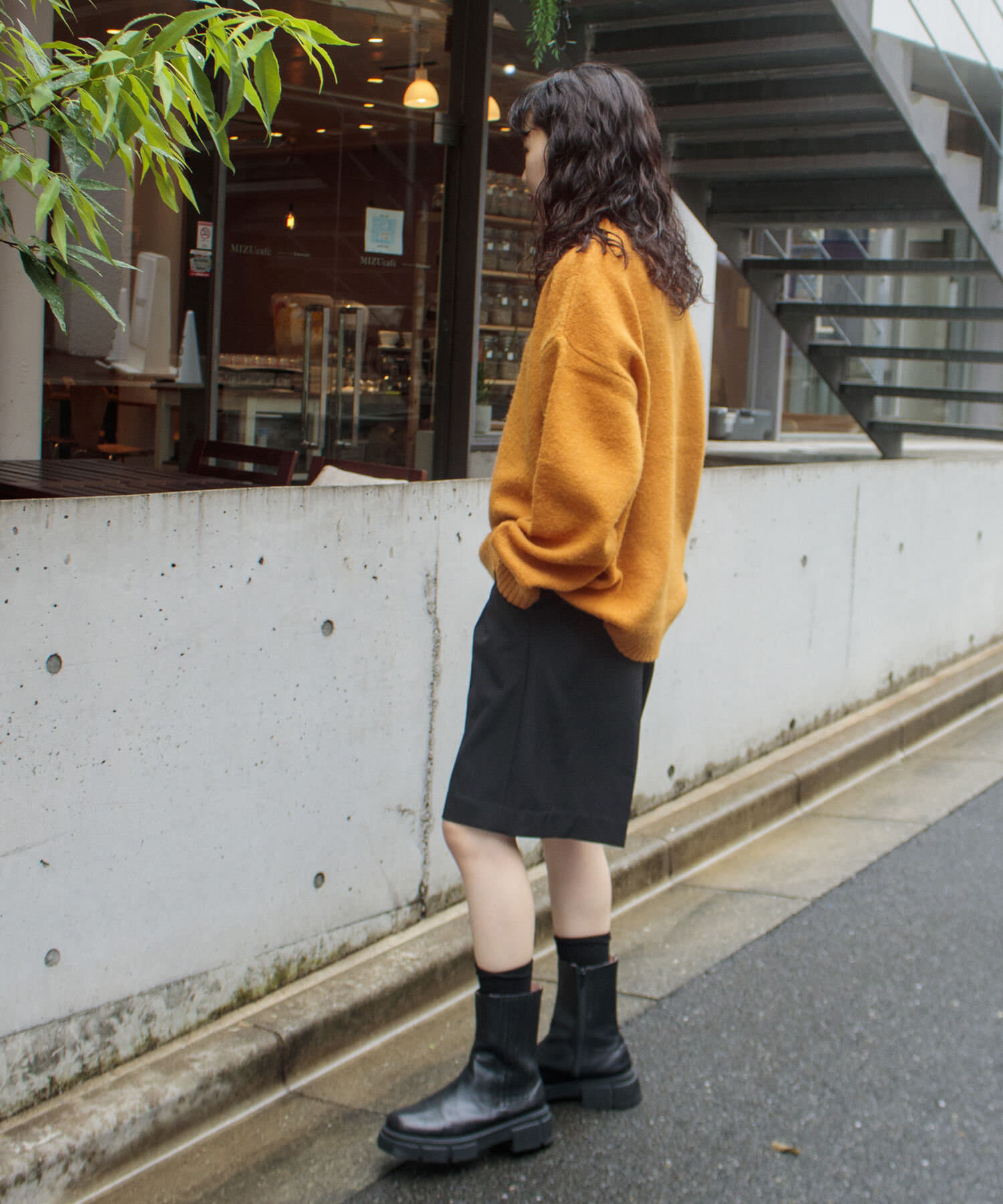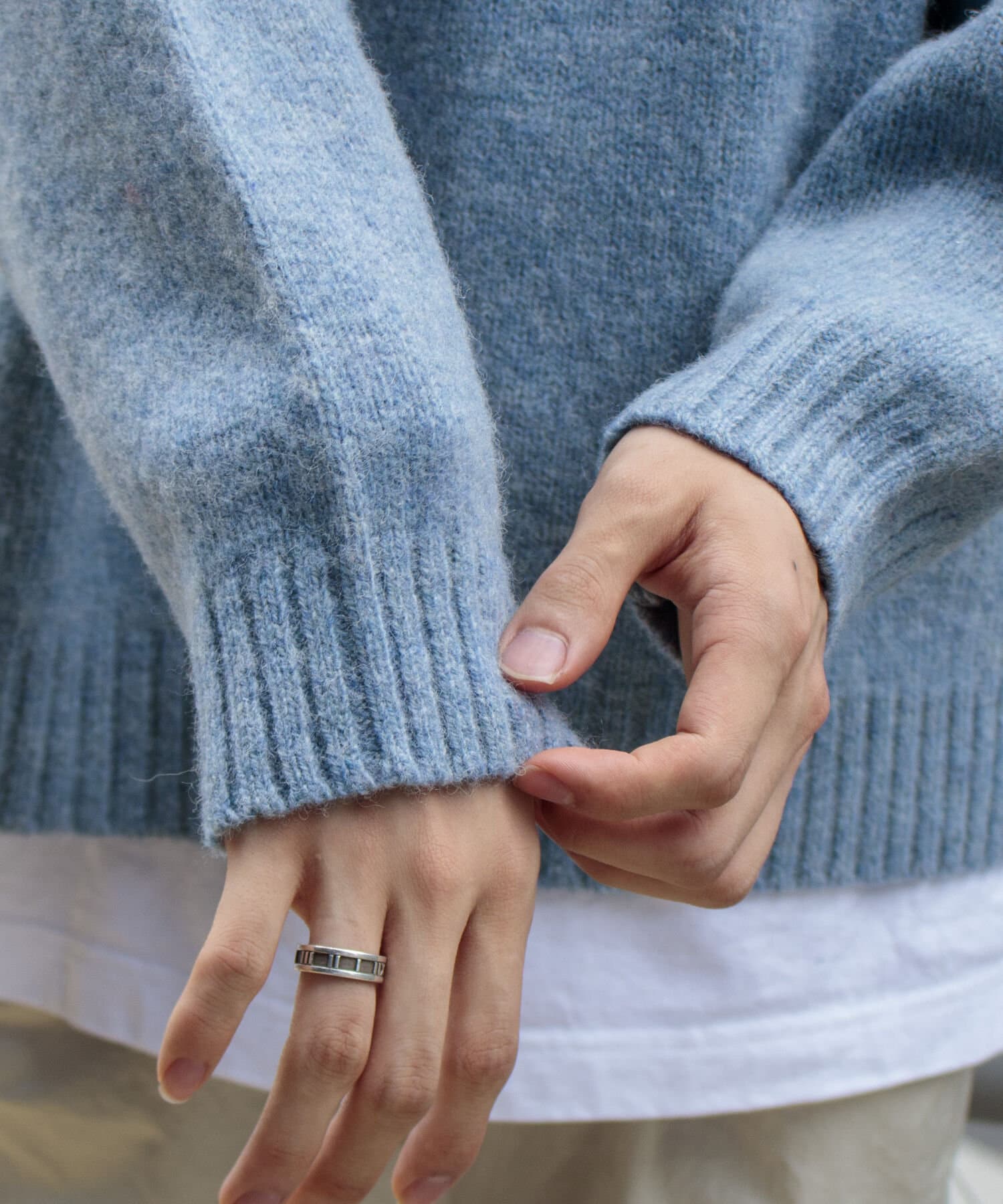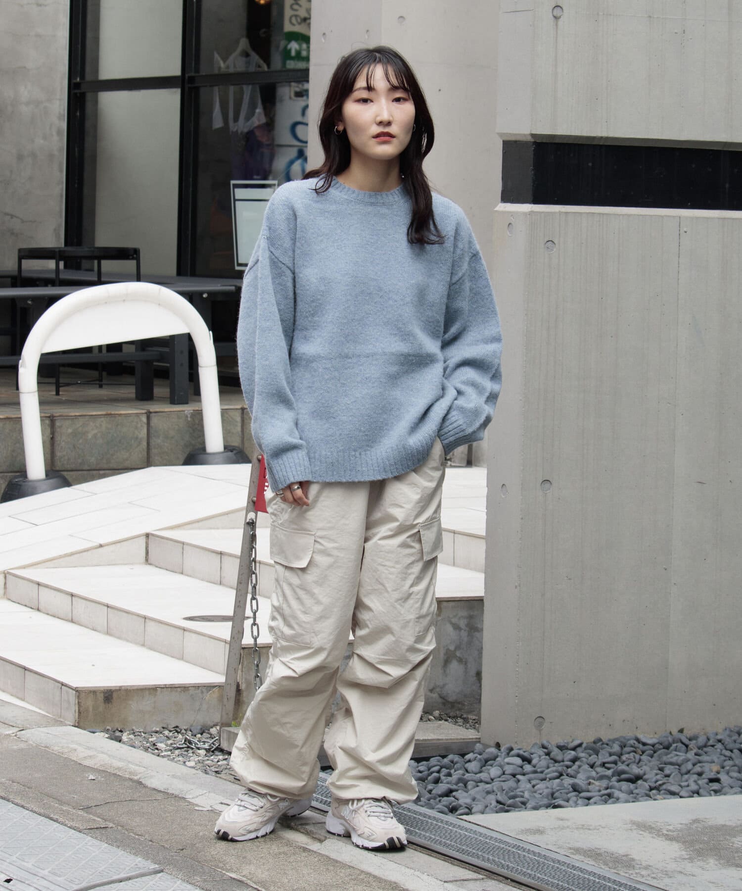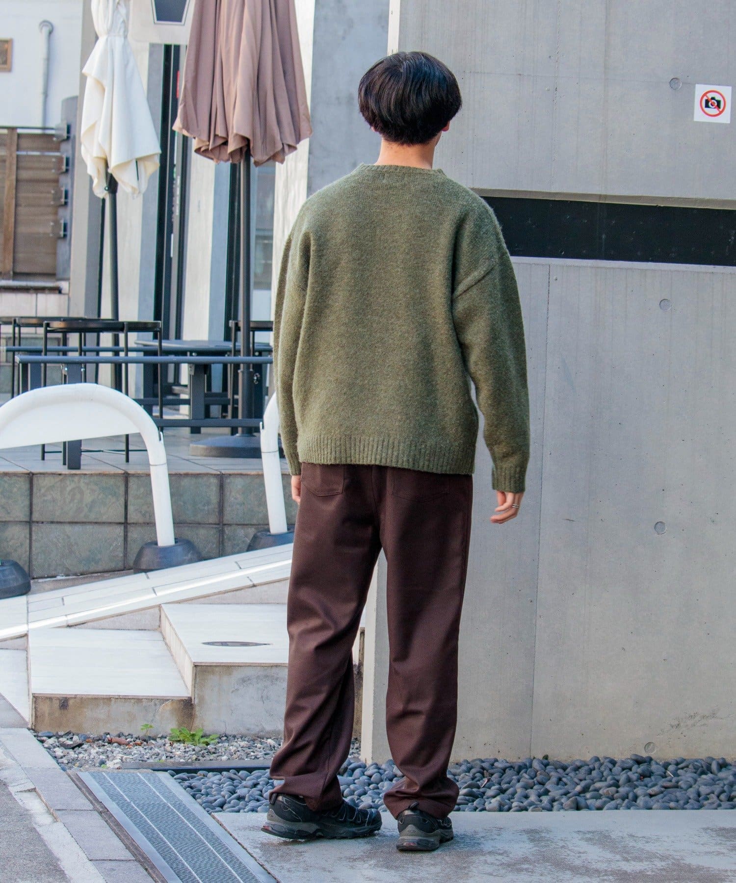 ウール高混率の糸を贅沢に使用し、ムク犬のようなふわふわの起毛加工を施したビッグシルエットのニットプルオーバー。