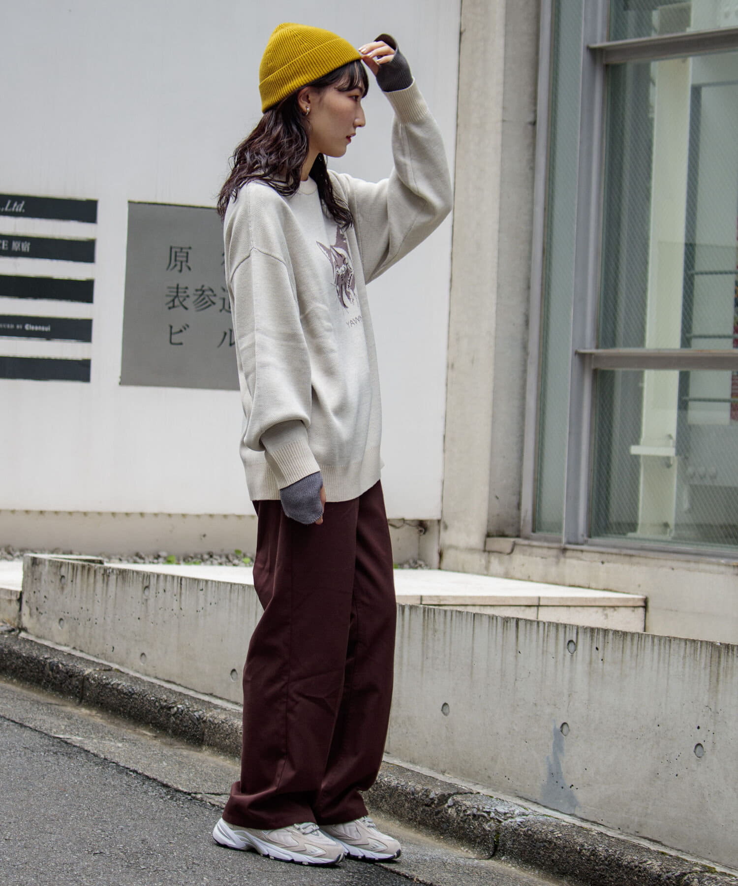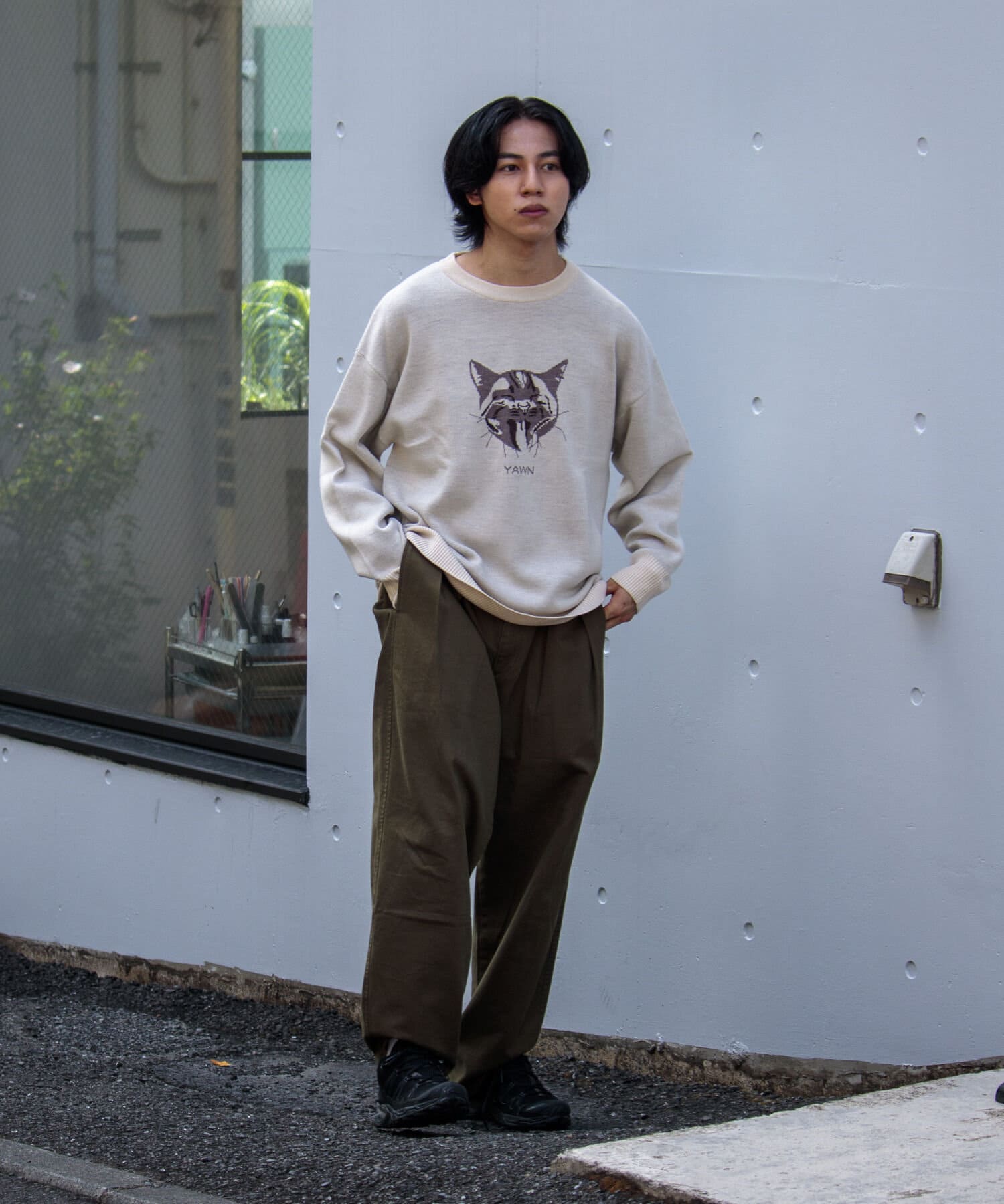 フロントのアニマルはインターシャ編みでイラスト風に加工した遊び心溢れるデザインです。