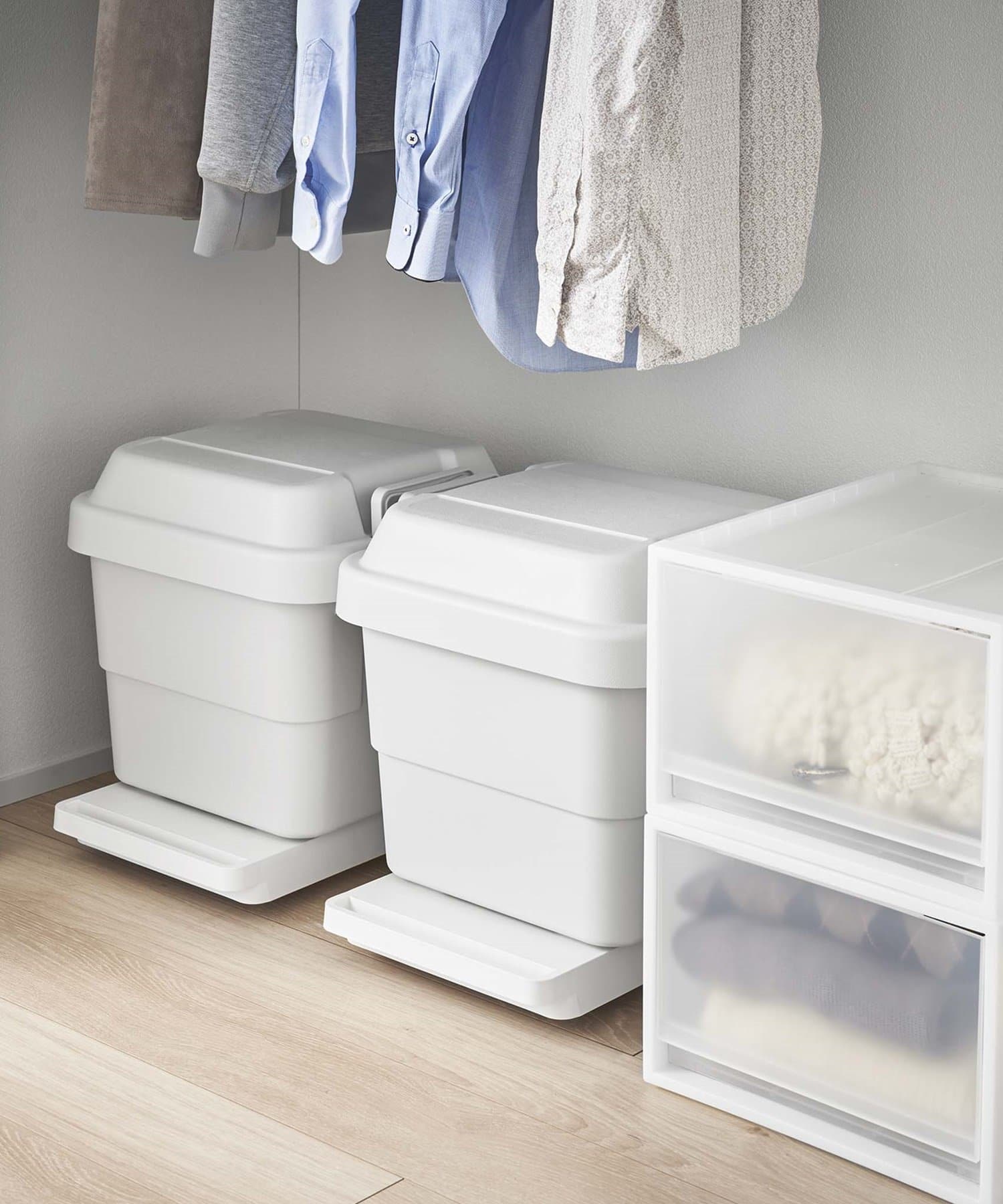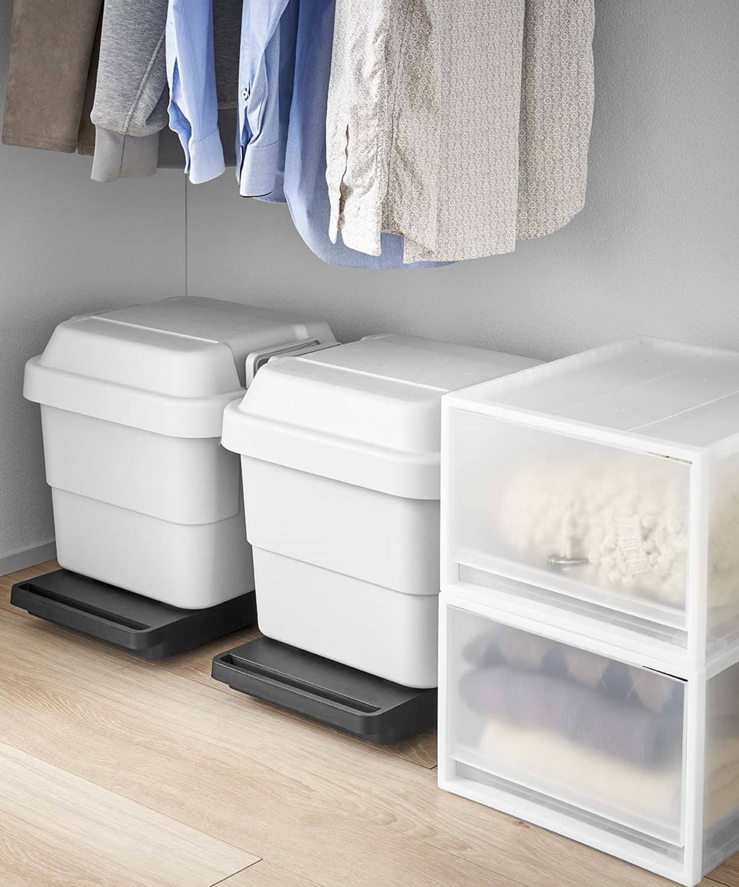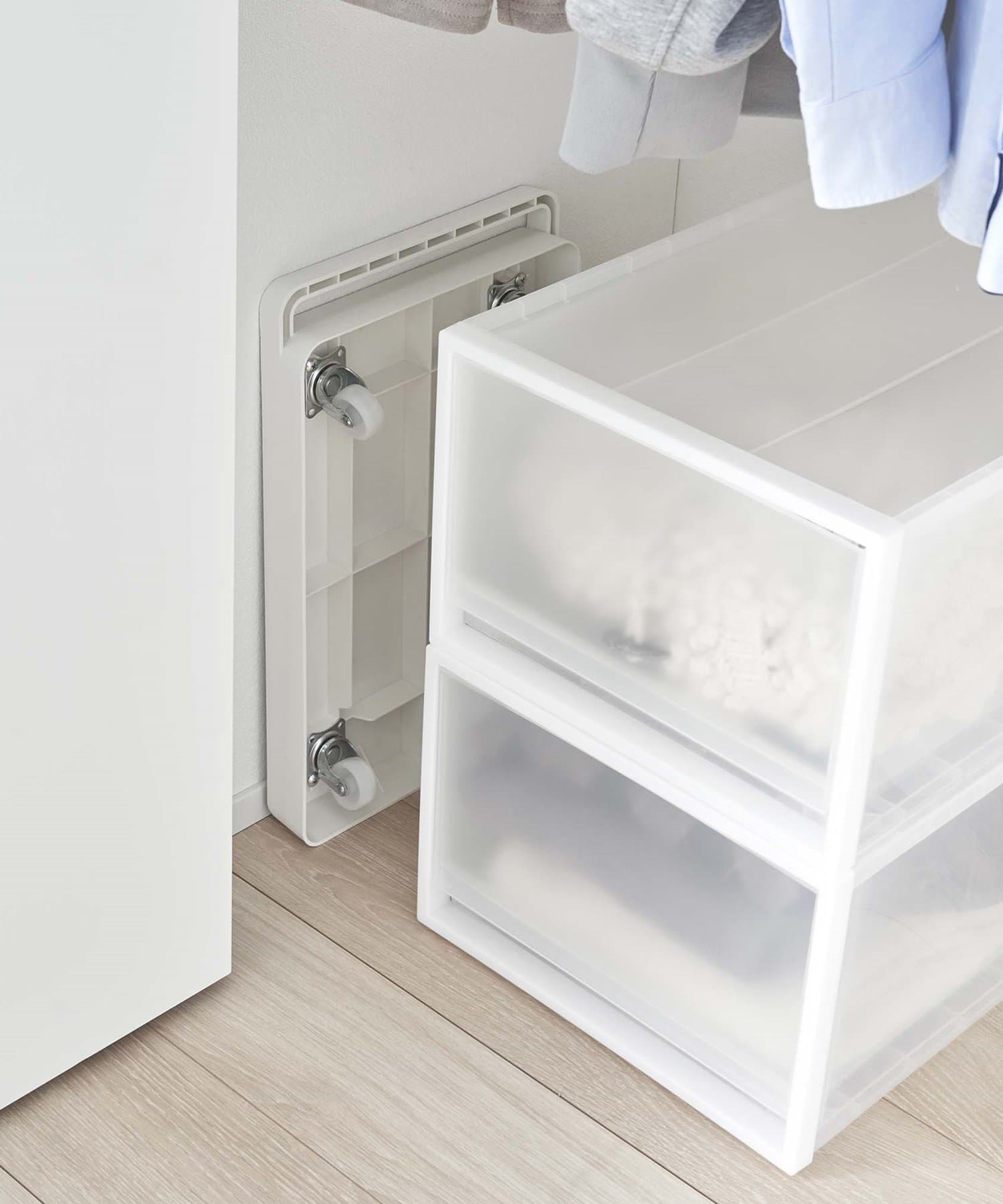 衣装ケースを上に置いてクローゼットや押し入れに収納しておくと、衣替えのときもすっと移動できて簡単。