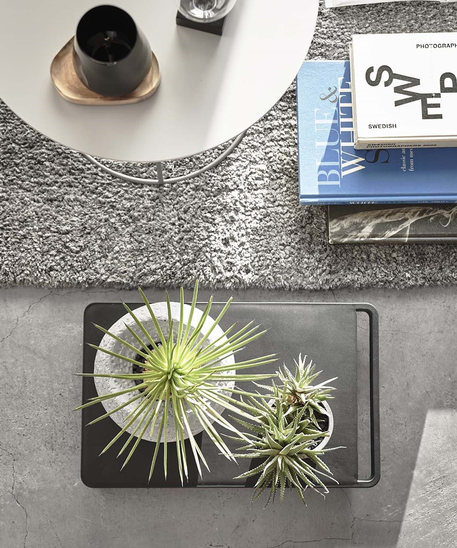 インテリアに溶け込むシンプルでフラットなフォルムの台車。