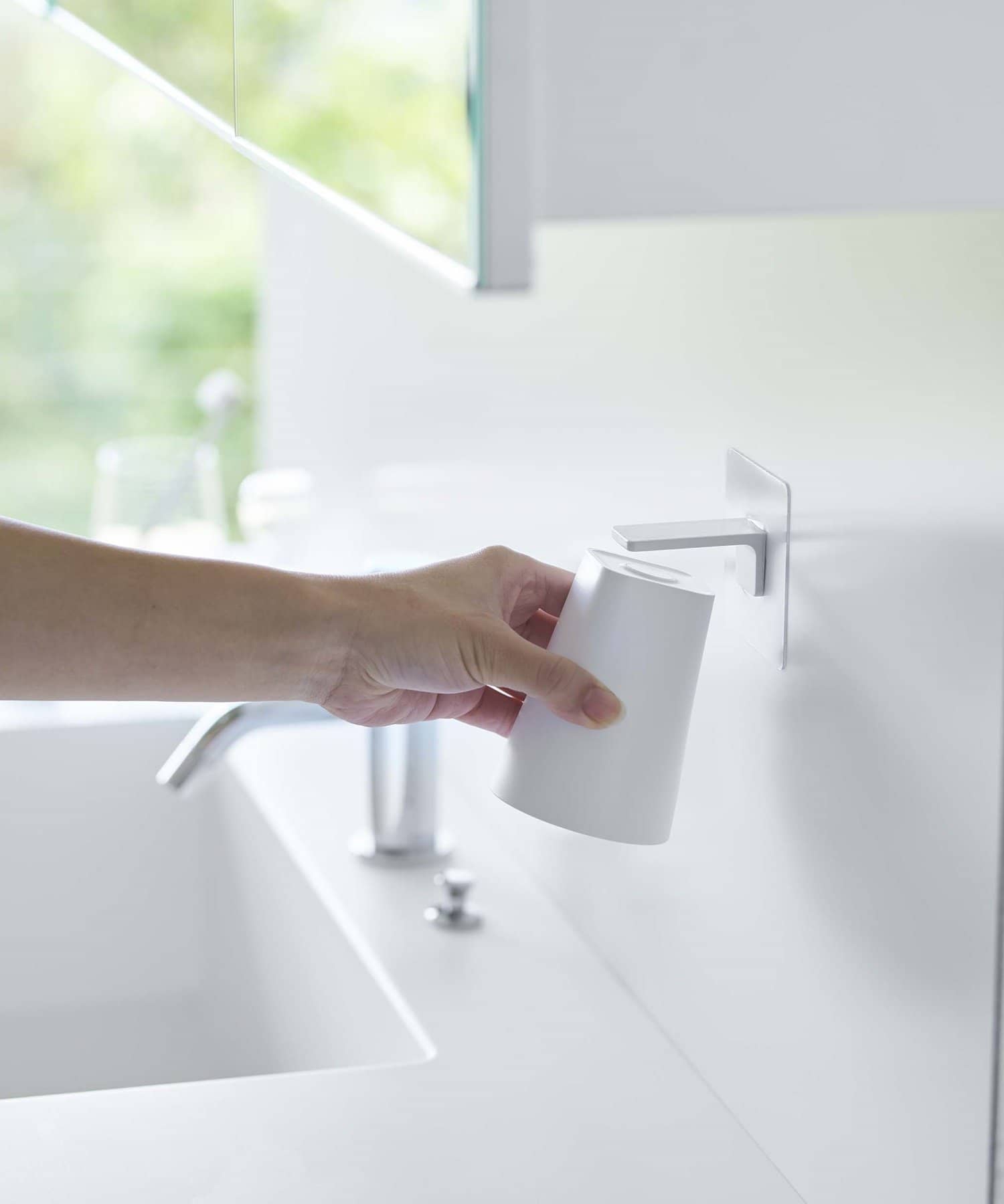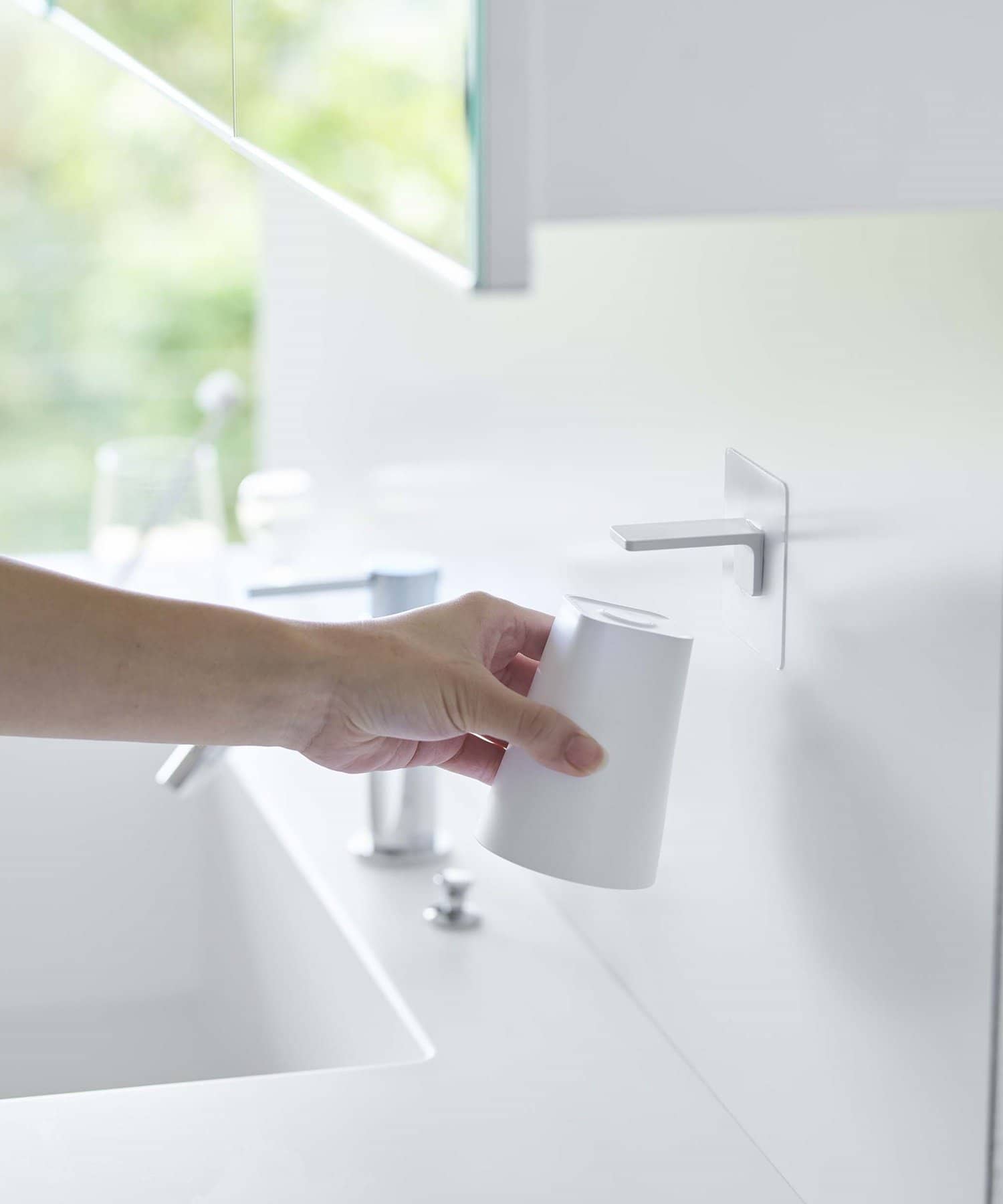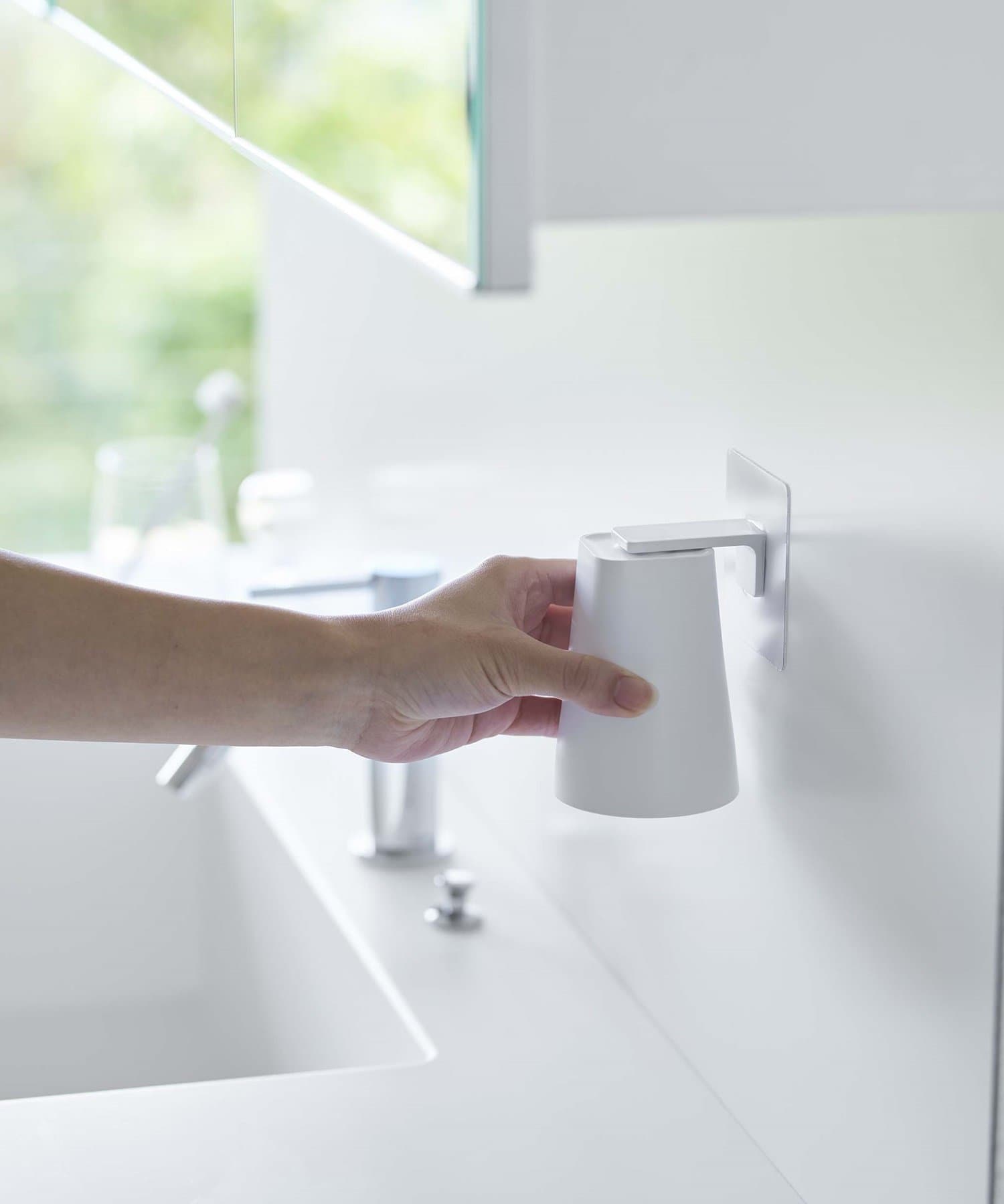 タンブラーをマグネットで浮かせて衛生的に収納