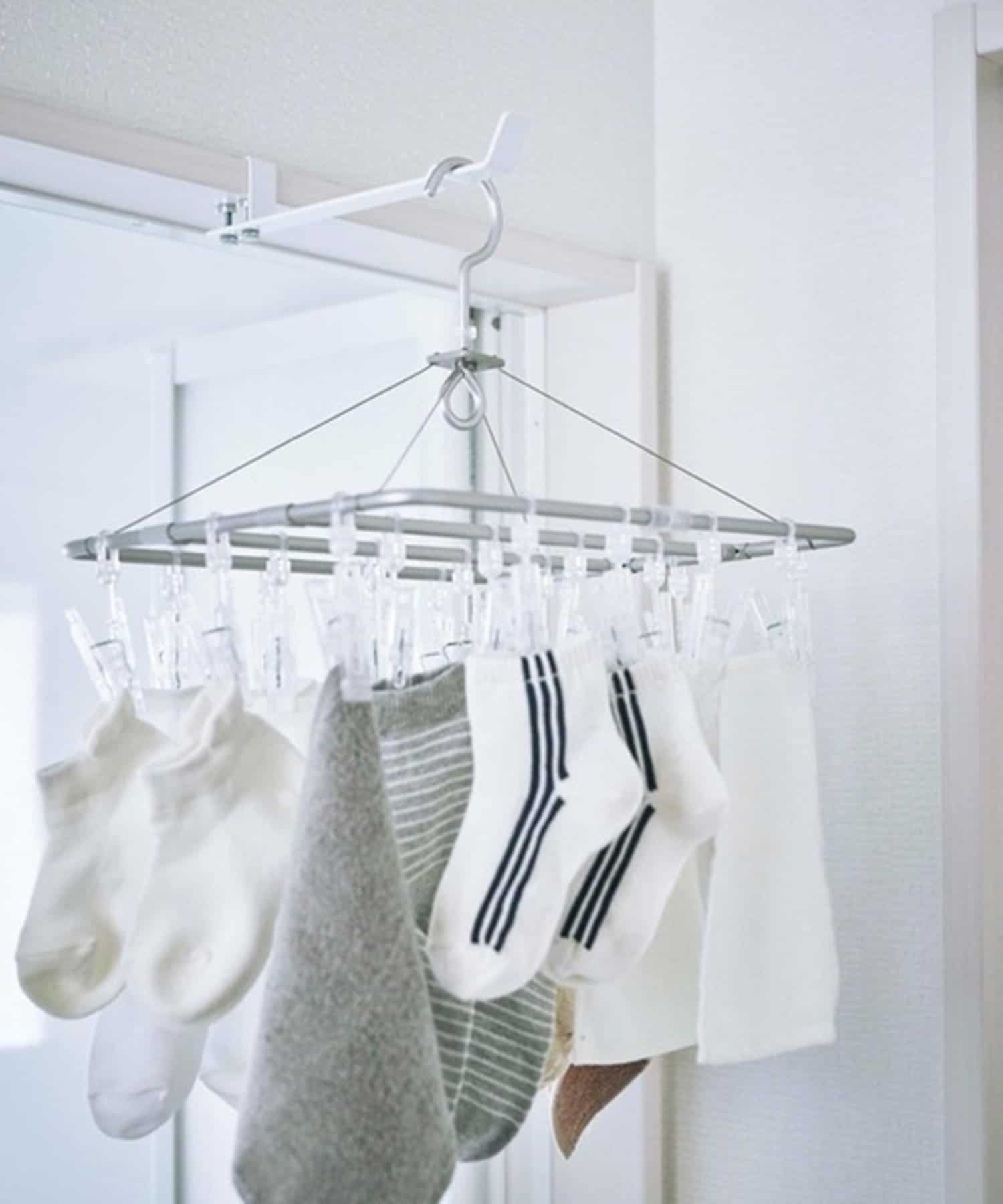 浴室の扉やドア、リビングのかもいに掛けるだけ!便利な室内ハンガーに早変わり。