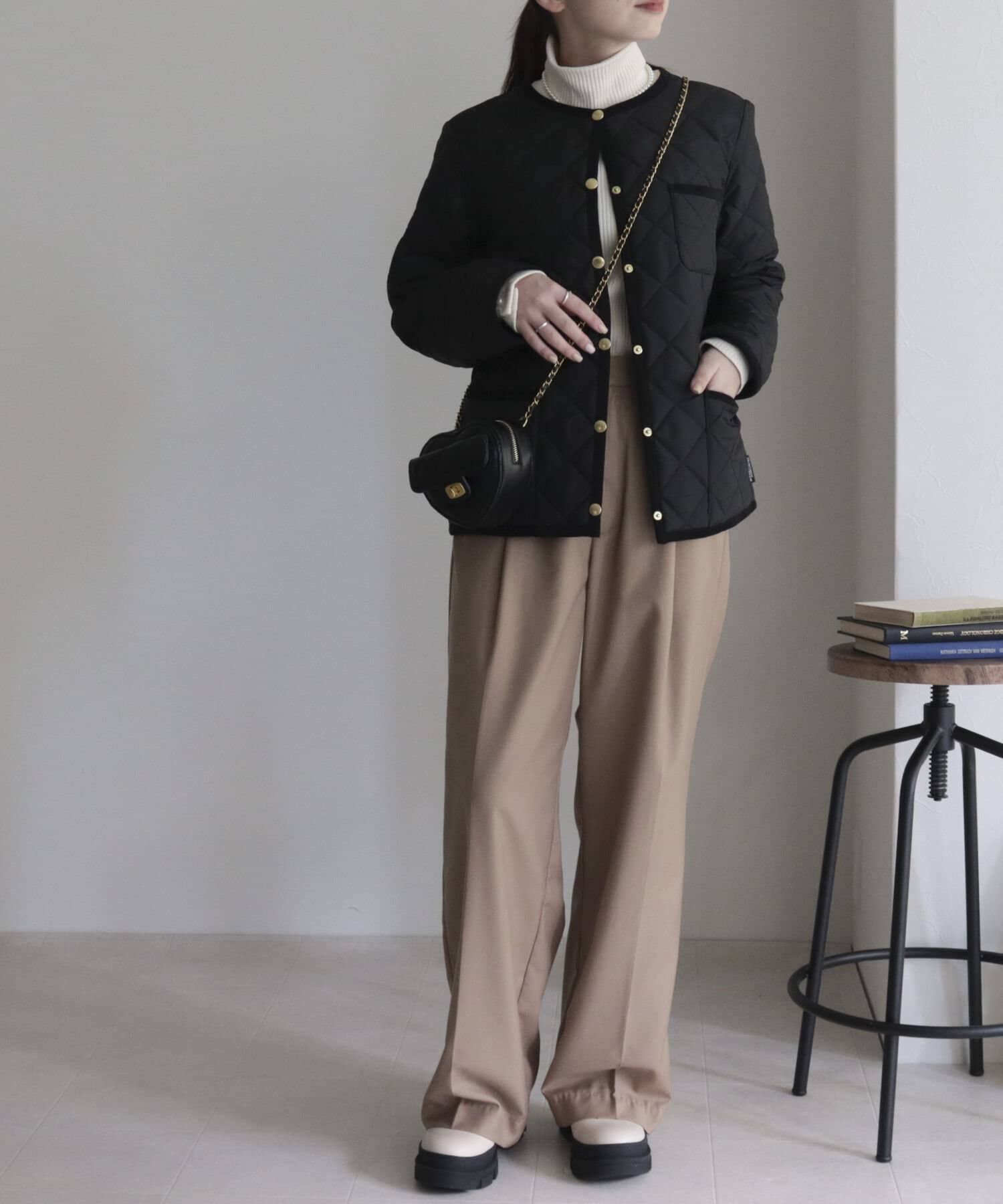 ・ノーカラーなのでマフラーを巻いてももたつかずすっきり