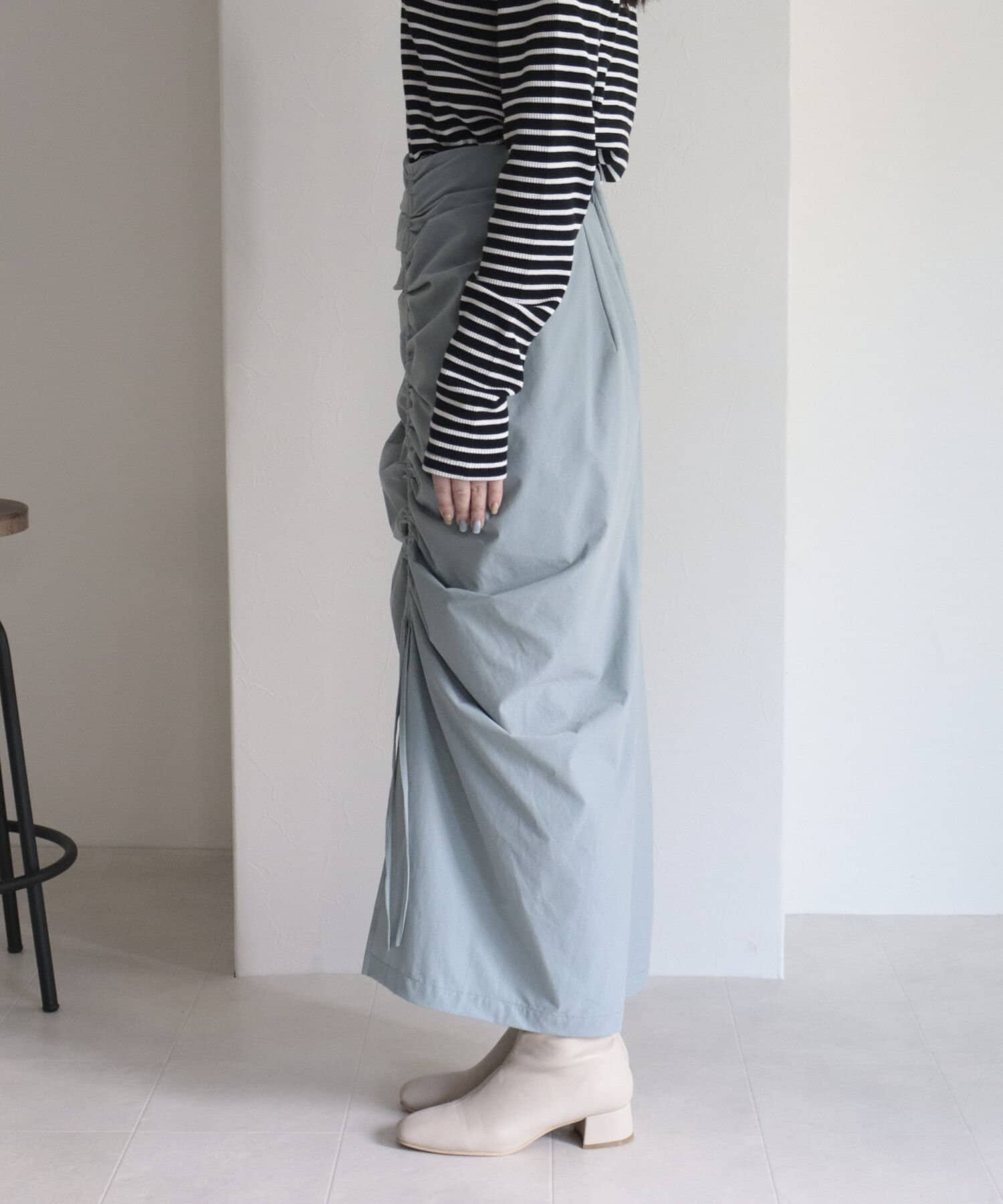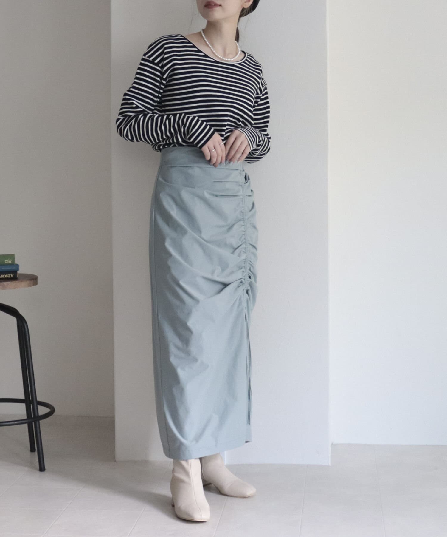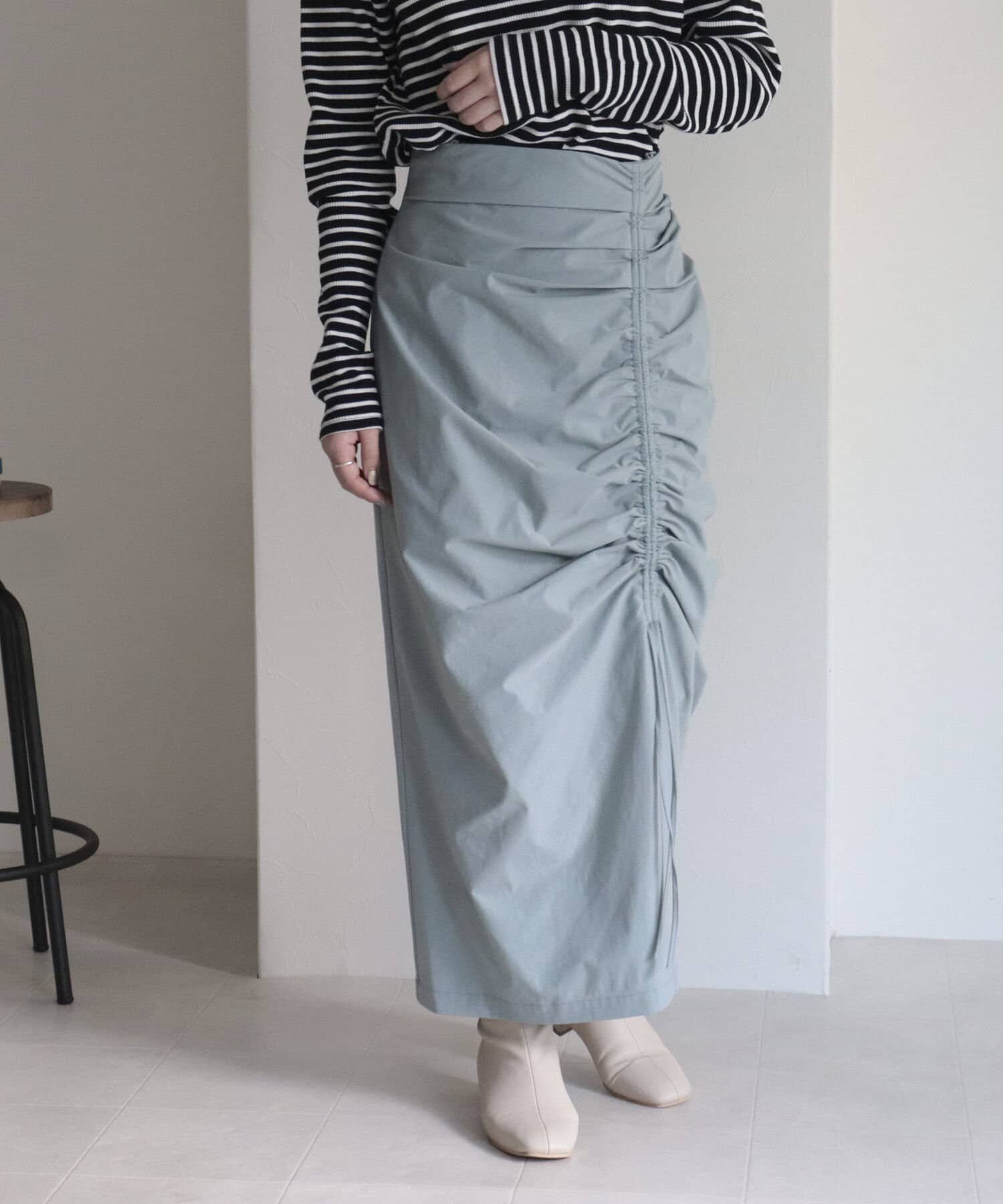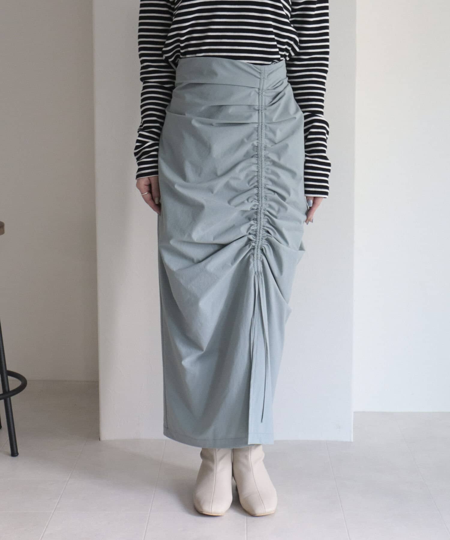 トレンドのドロストデザインを取り入れたナロースカート。