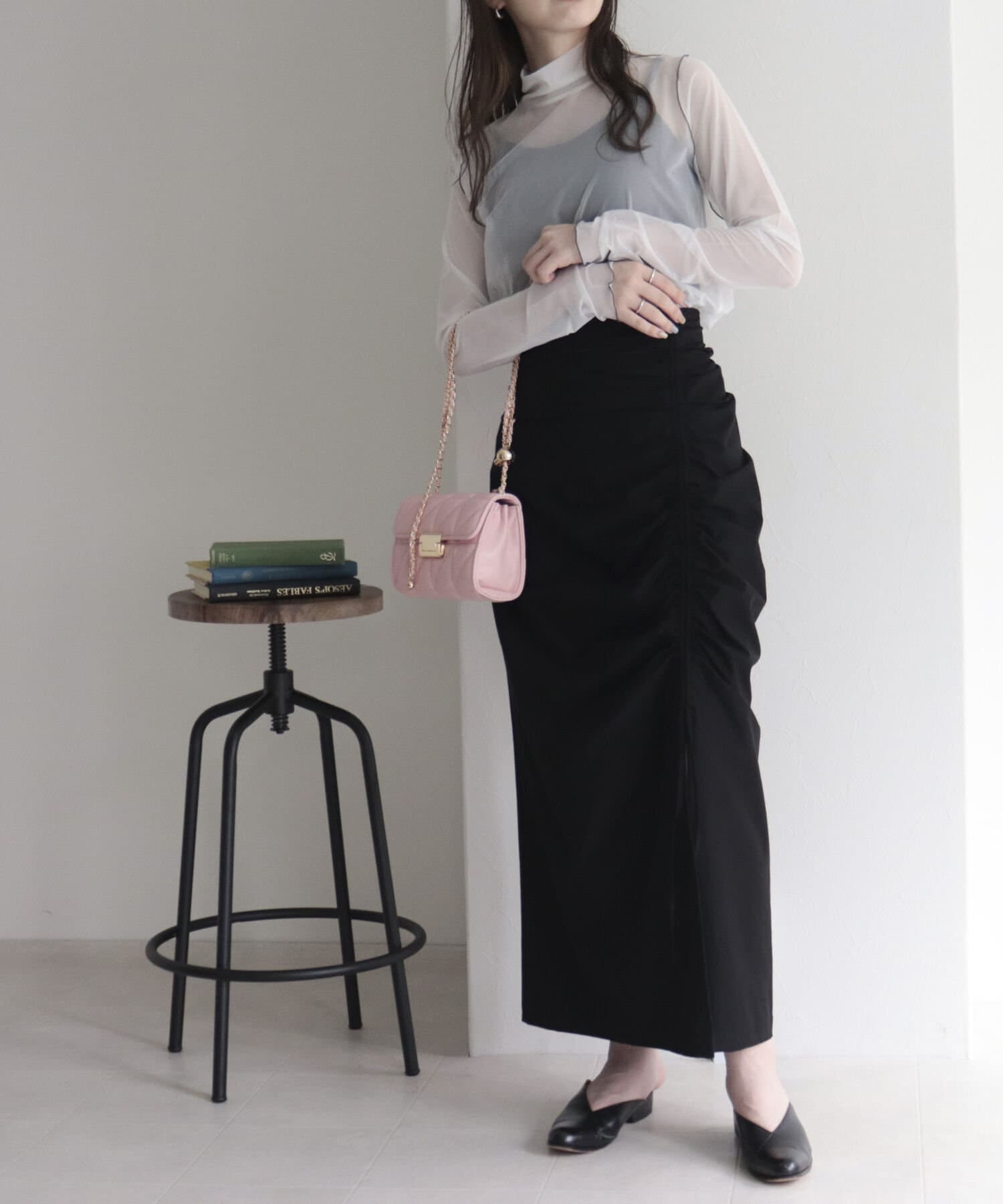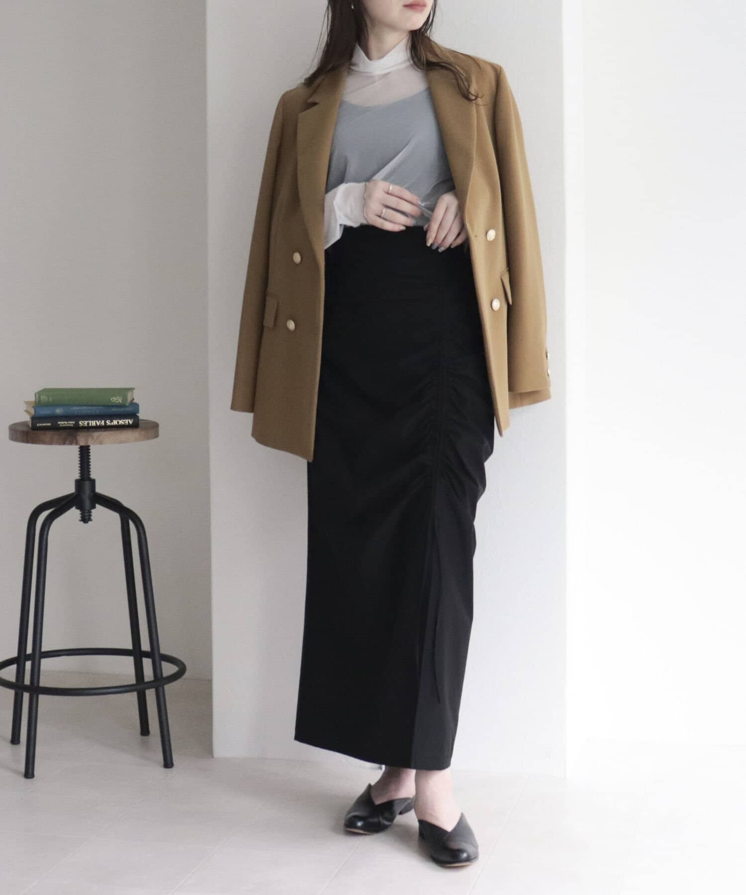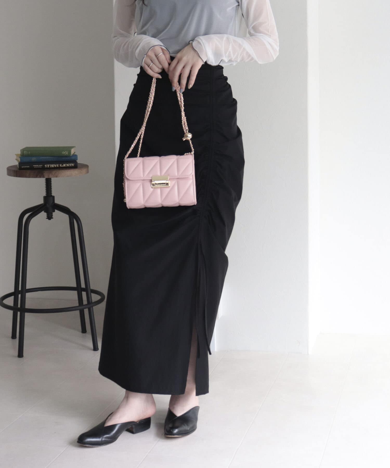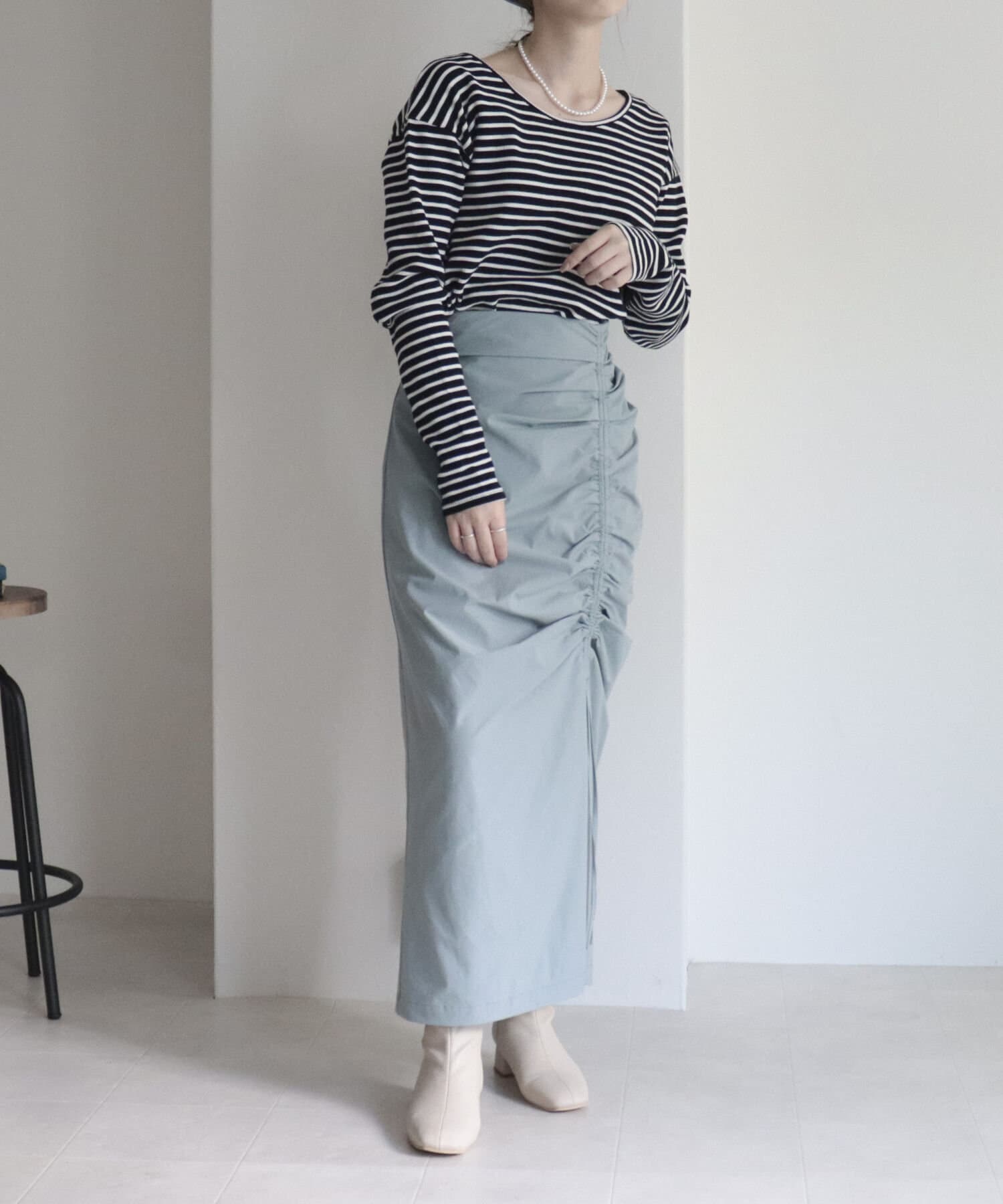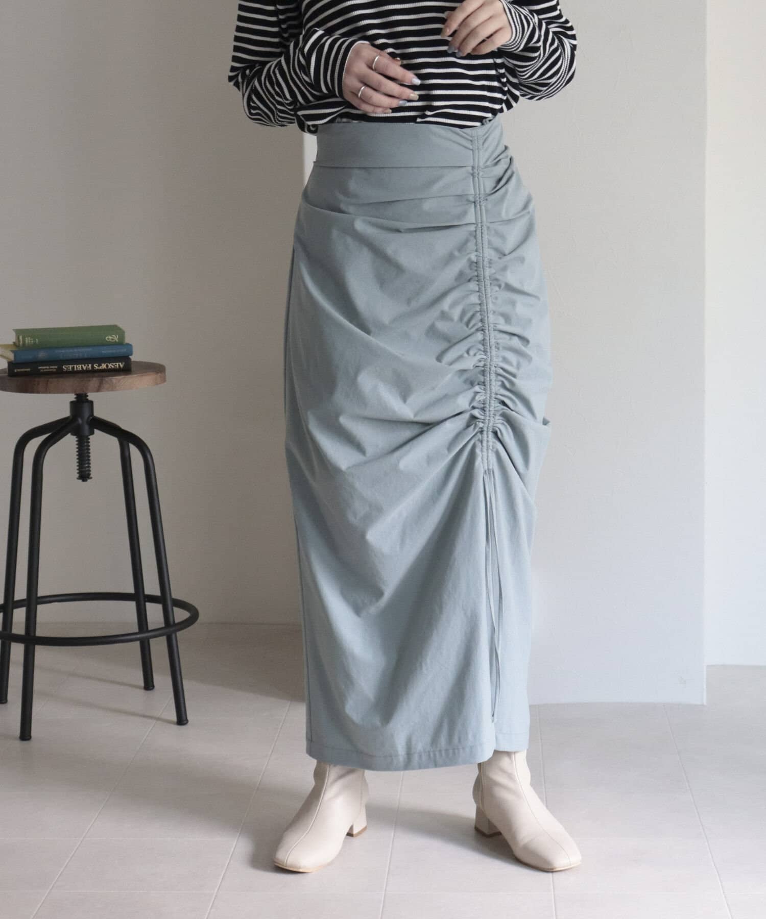 トレンドのドロストデザインを取り入れたナロースカート。