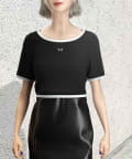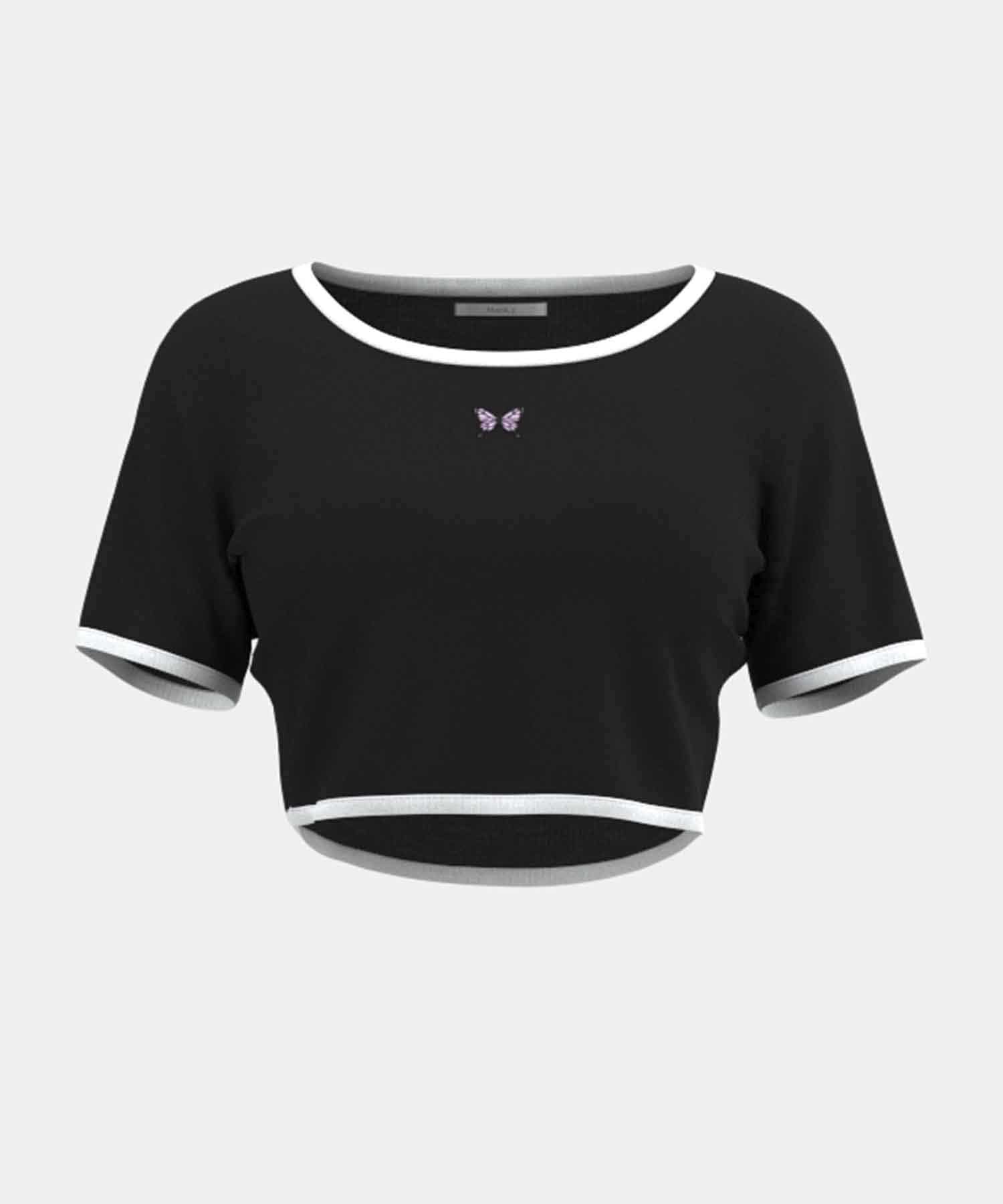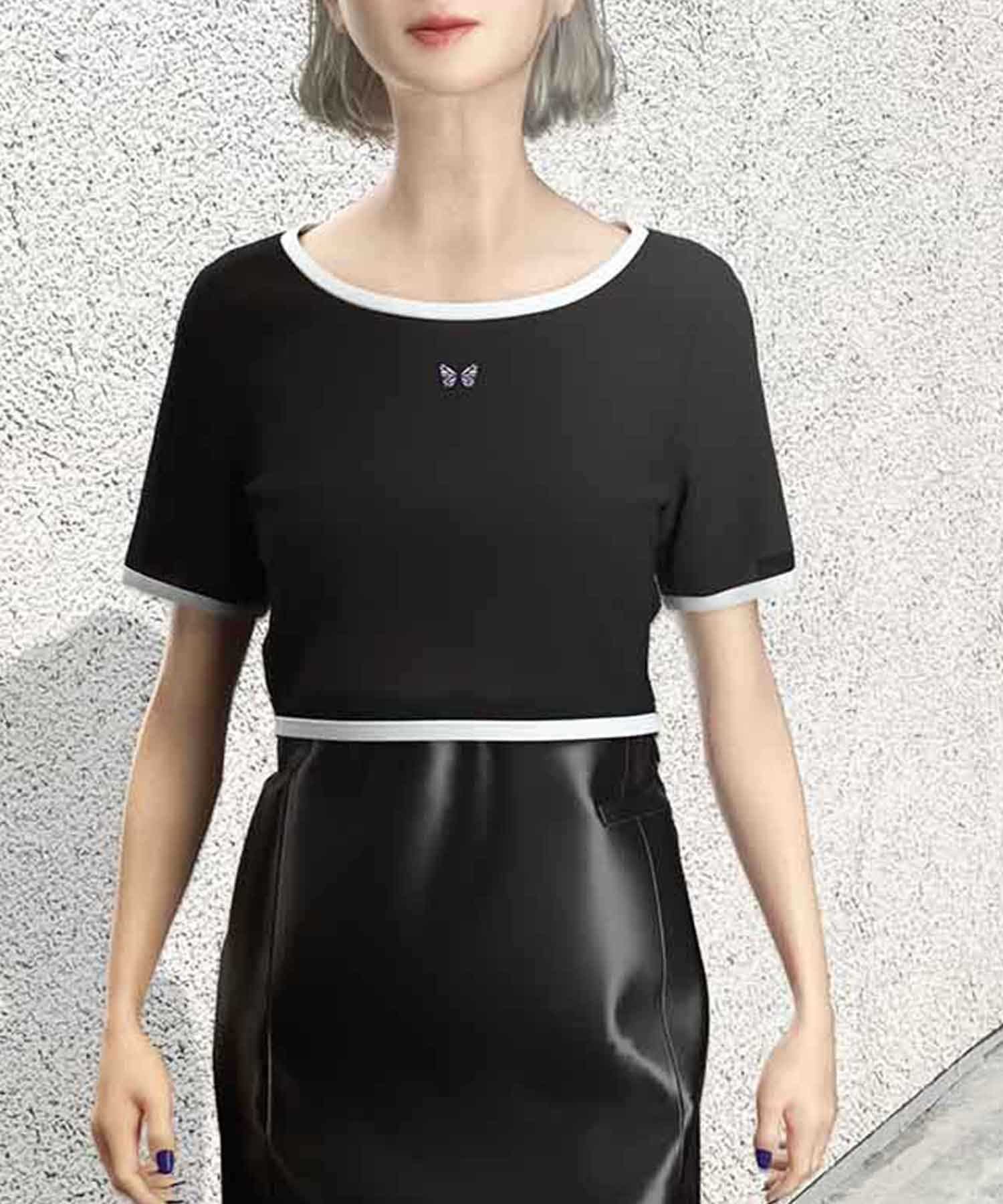 胸元のチョウチョ刺繍と、首・袖口・裾に入った配色パイピングでレトロなピタT