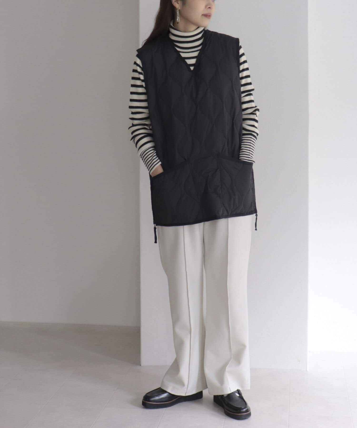・両脇スリットファスナーは、可動域が増えることで動きやすくなり、ボトムのポケットに手を入れやすく、重ね着も楽しんでいただける仕様です。