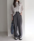 ・センターラインが体のラインを拾わず脚長効果大のスラックスパンツ