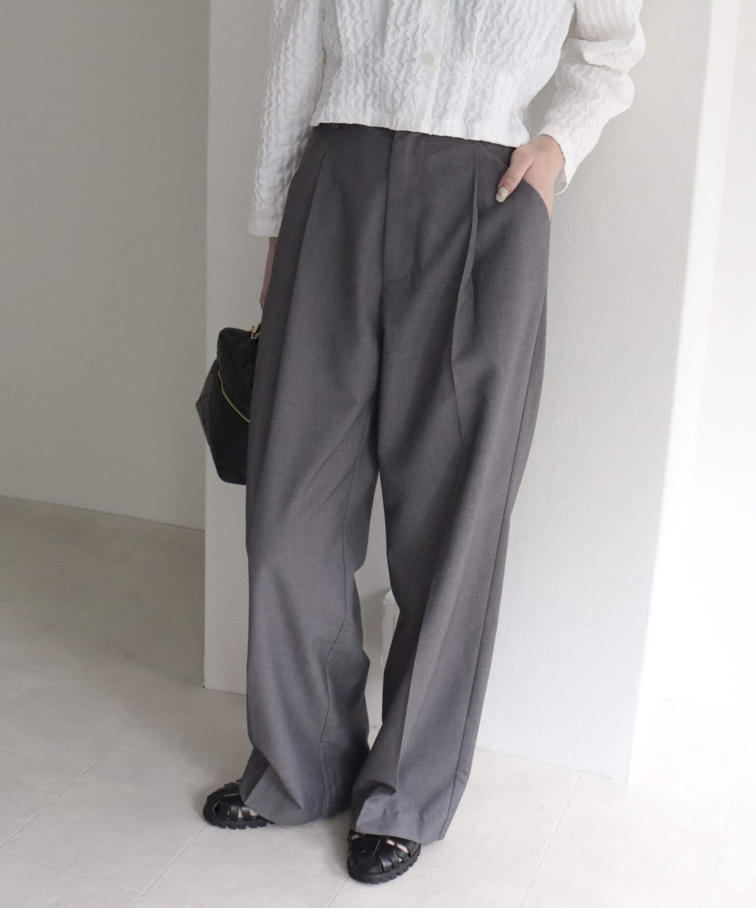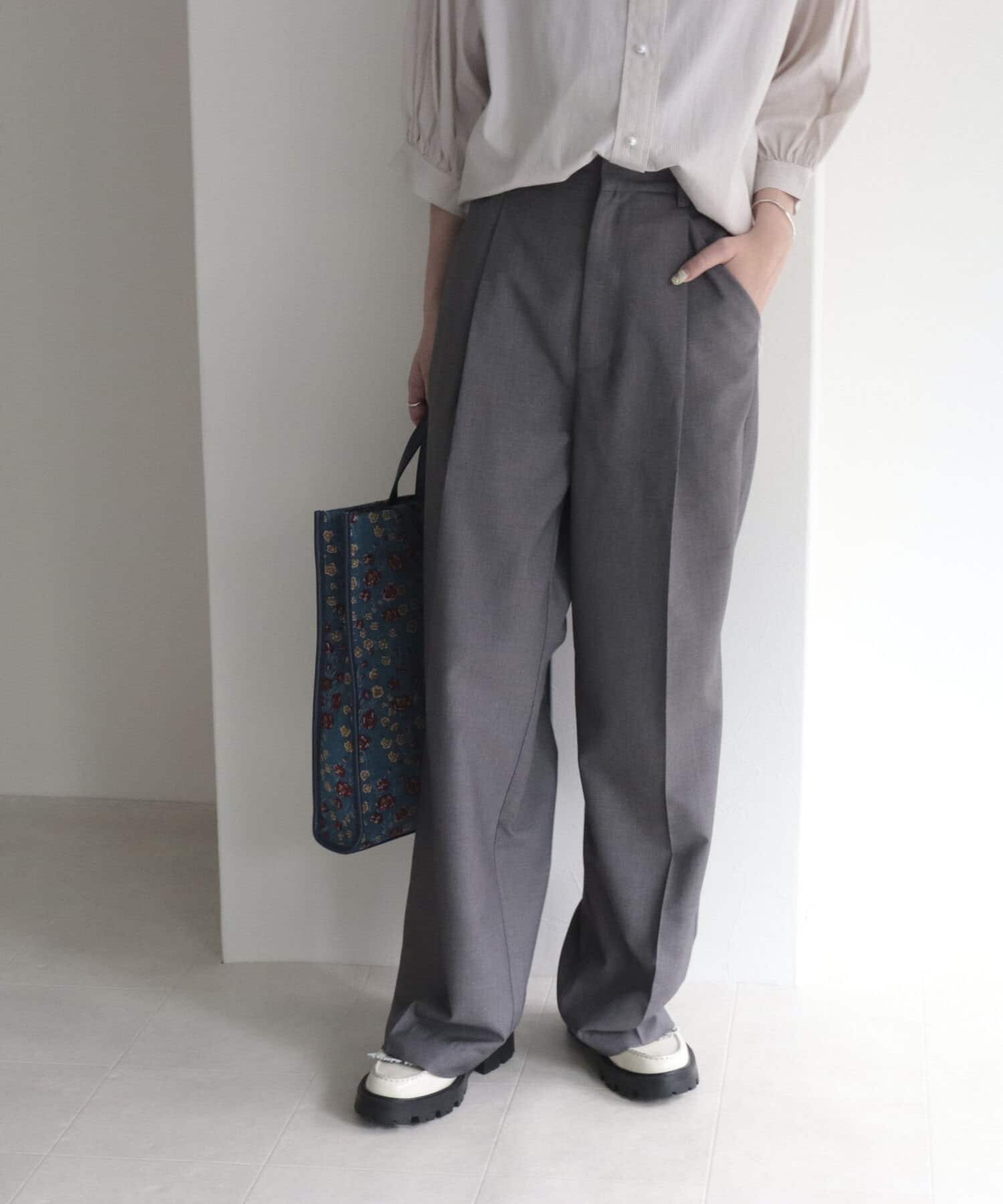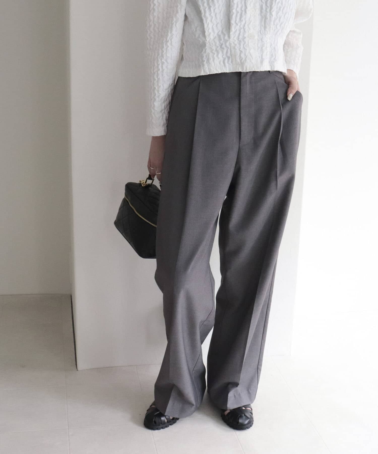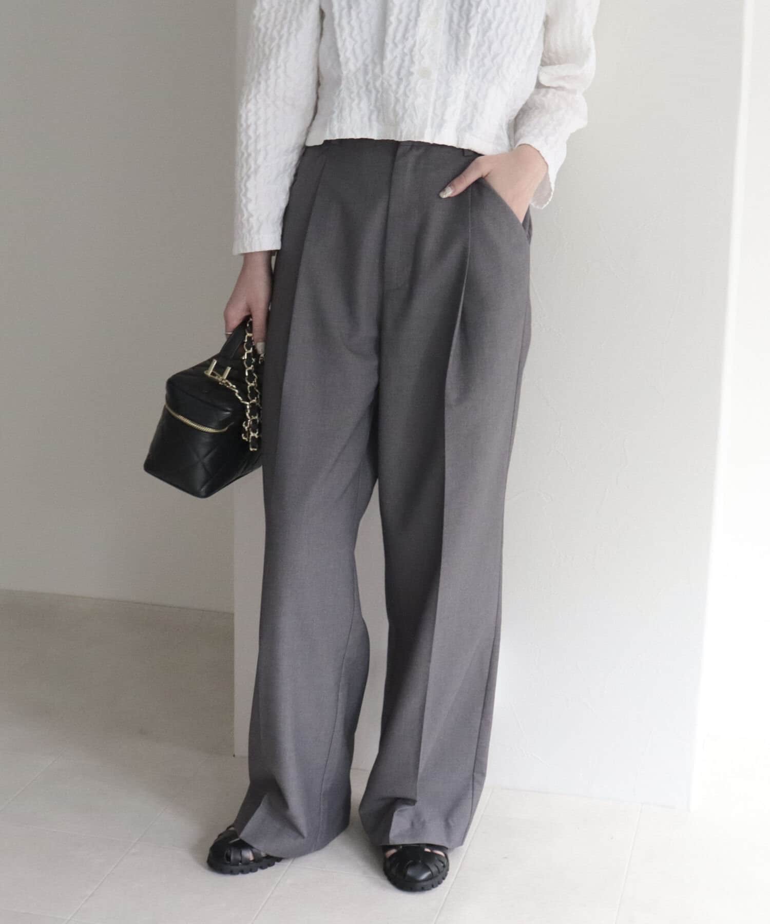 トレンド感のあるシンプルコーデに!タック入りプレスパンツ